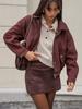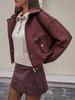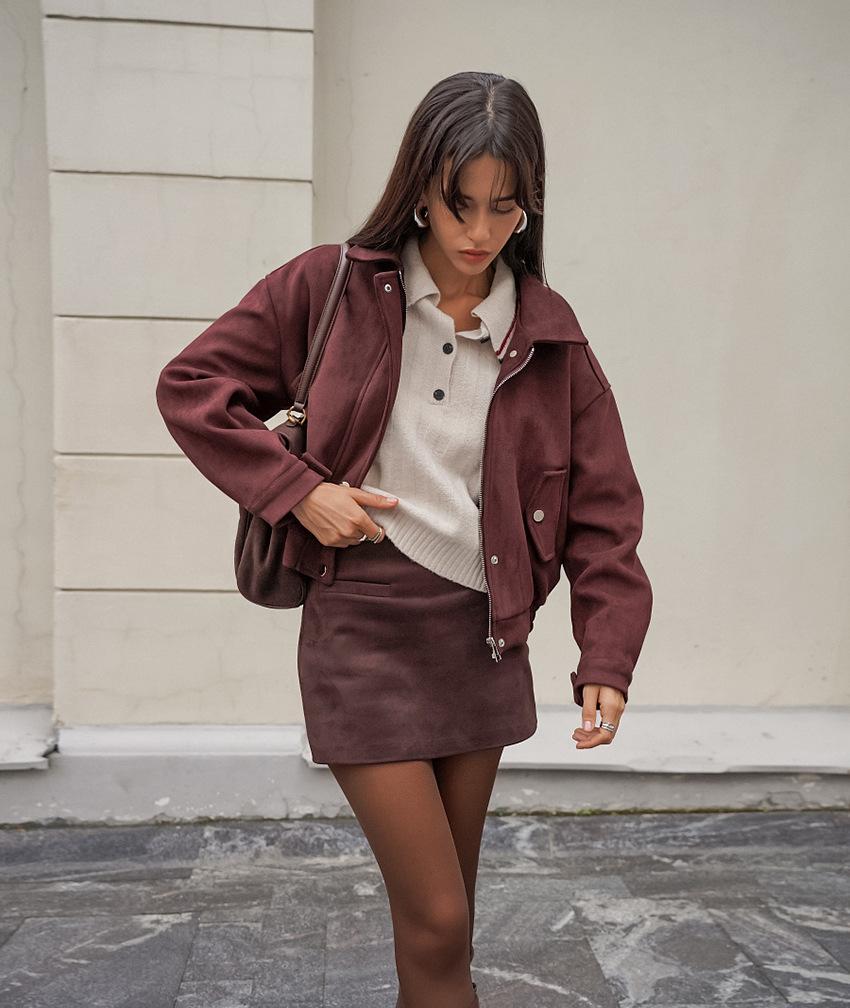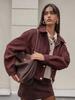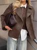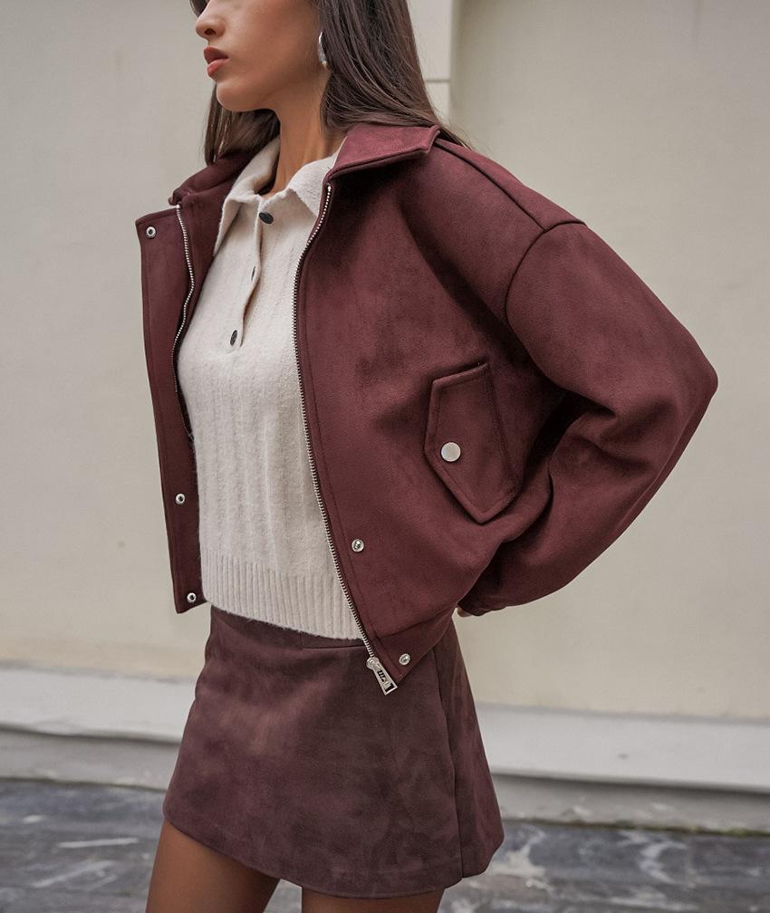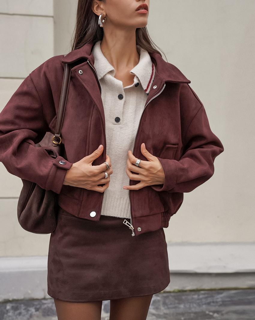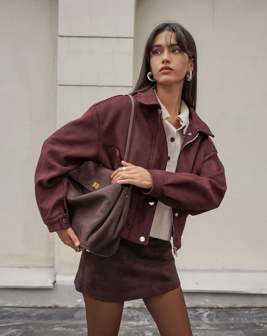 Chaqueta Maillard Retro Gamuza Rojo-Marrón Mujer 2025 Otoño/Invierno Casual Suelta Solapa Chaqueta Top Ropa de Mujer