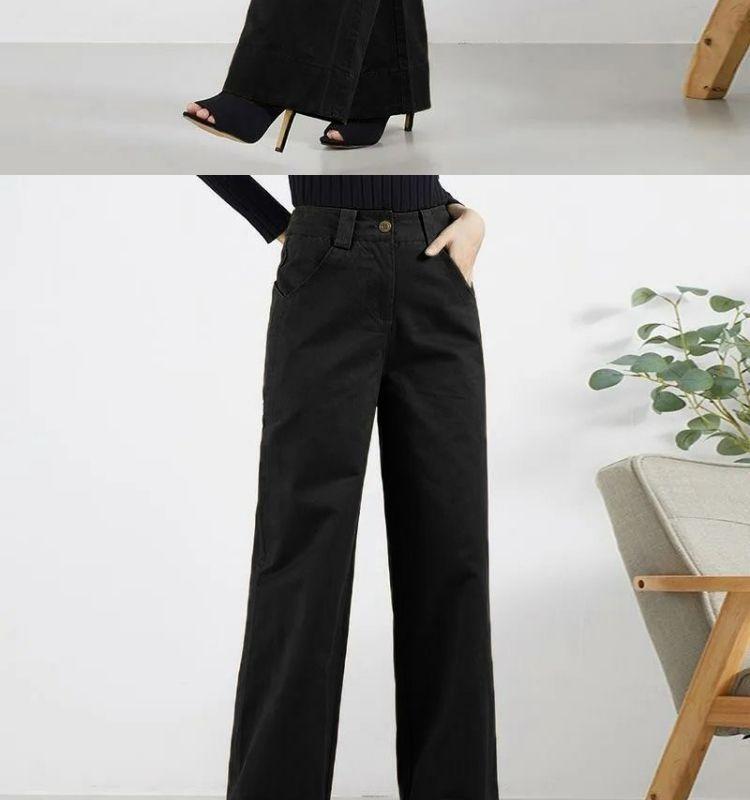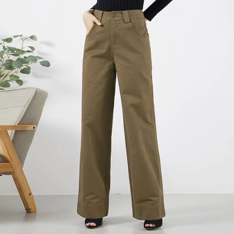 Pantalones Nuevos de Primavera y Otoño para Mujer Pantalones de Pierna Recta de Cintura Alta Holgados Adelgazantes Cómodos Versátiles Casuales Literarios Pantalones de Pierna Ancha Pantalones Largos