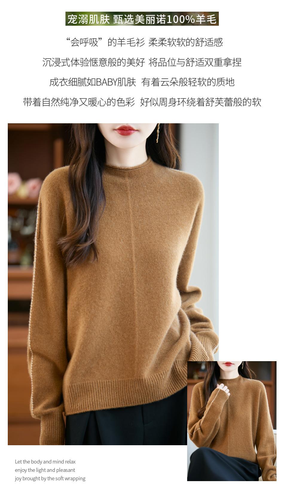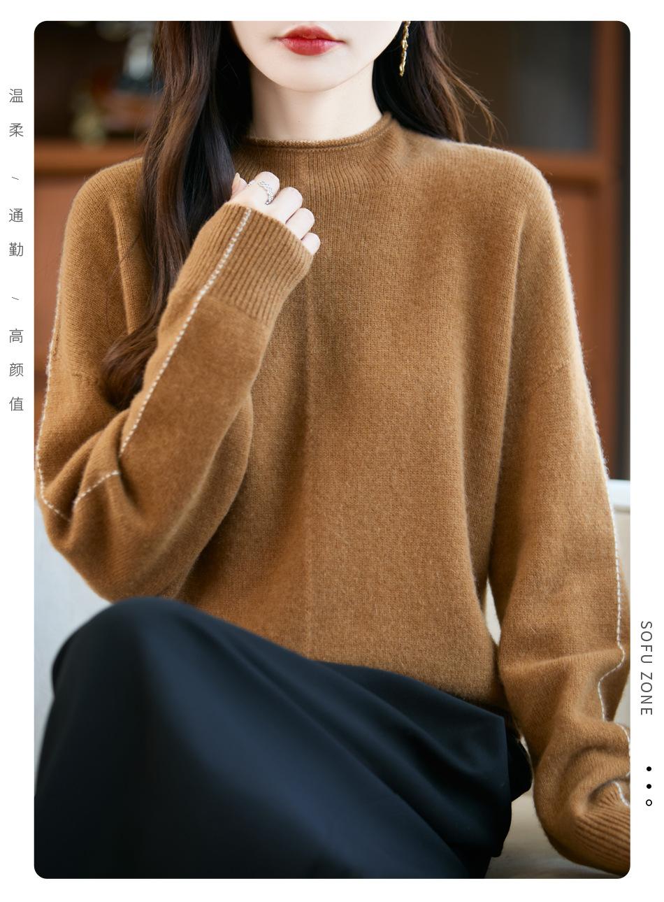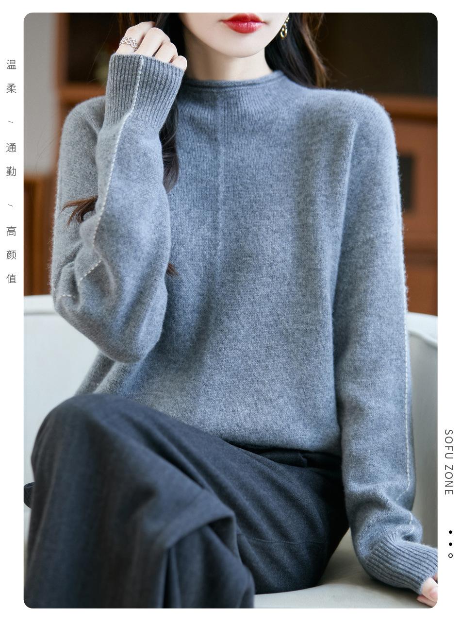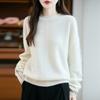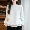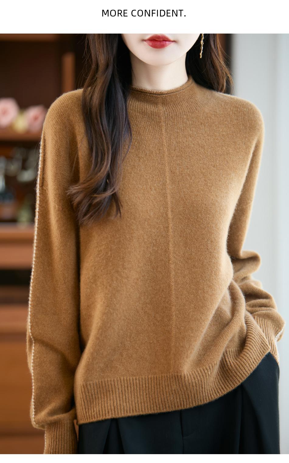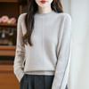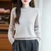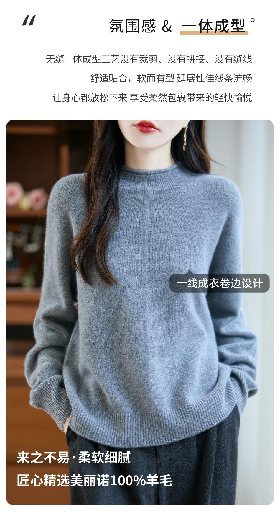 Suéter sin costuras de una pieza 100% lana pura para mujer, cuello semi alto con borde enrollado, jersey nuevo de punto de manga larga para otoño/invierno