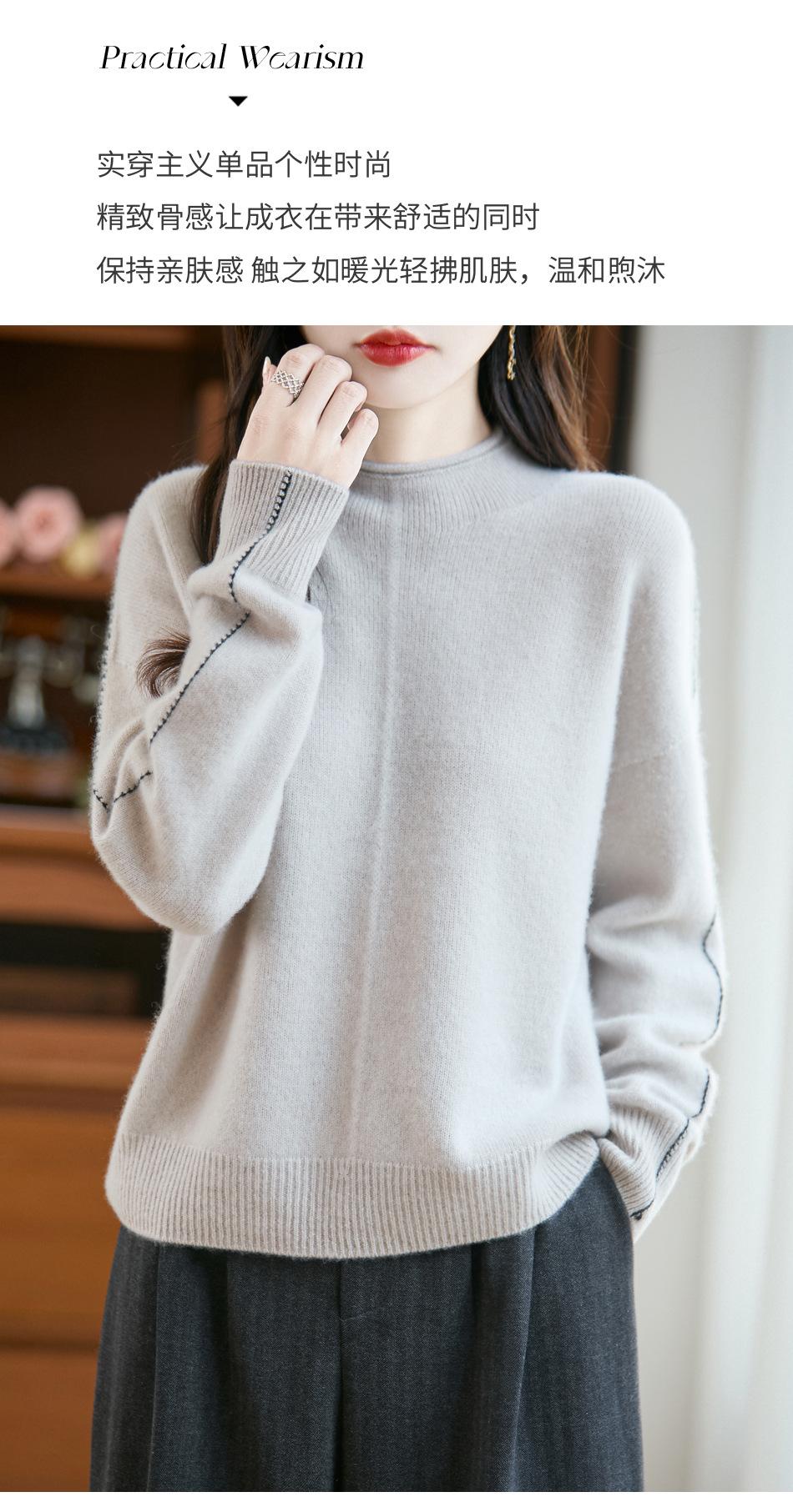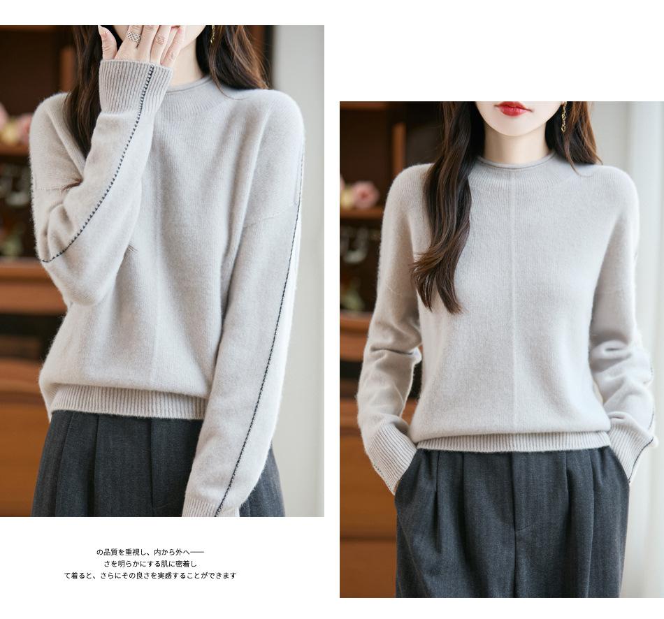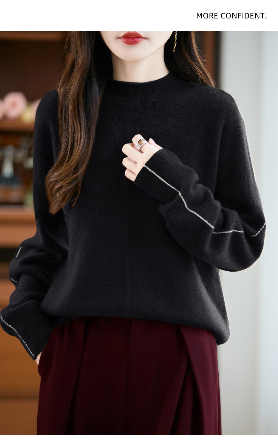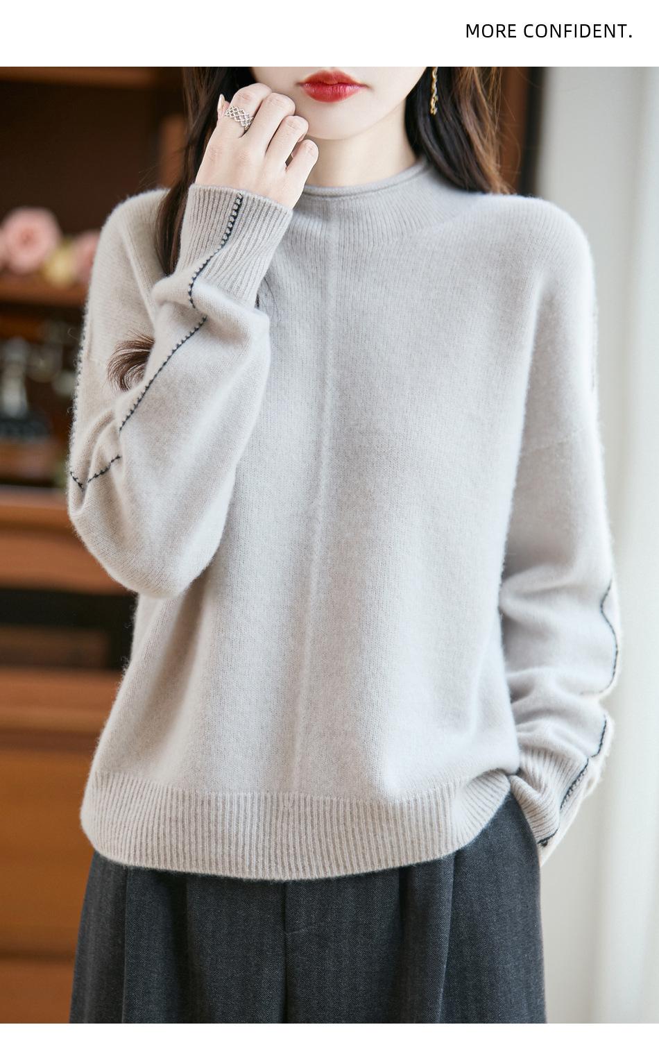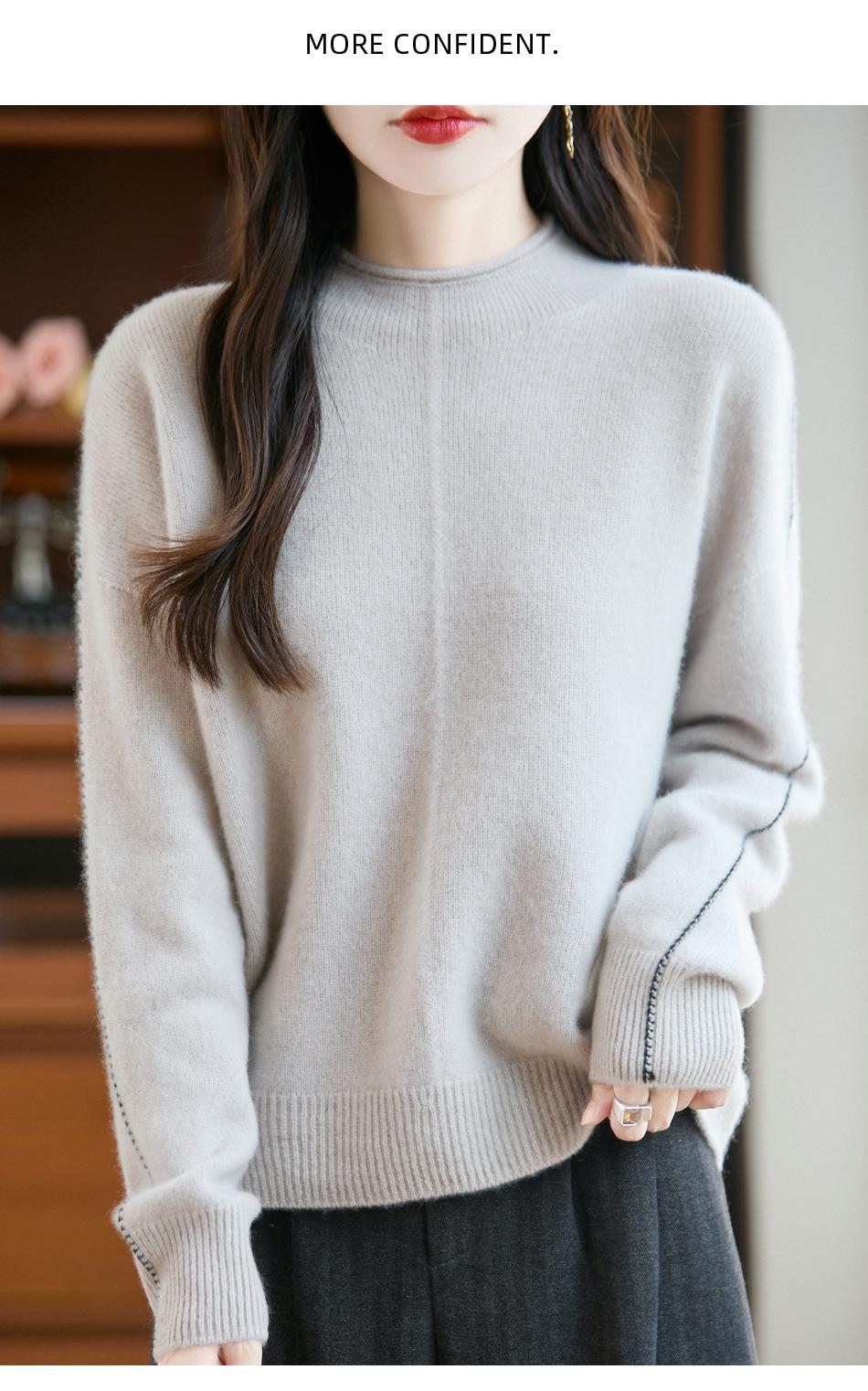 Suéter sin costuras de una pieza 100% lana pura para mujer, cuello semi alto con borde enrollado, jersey nuevo de punto de manga larga para otoño/invierno