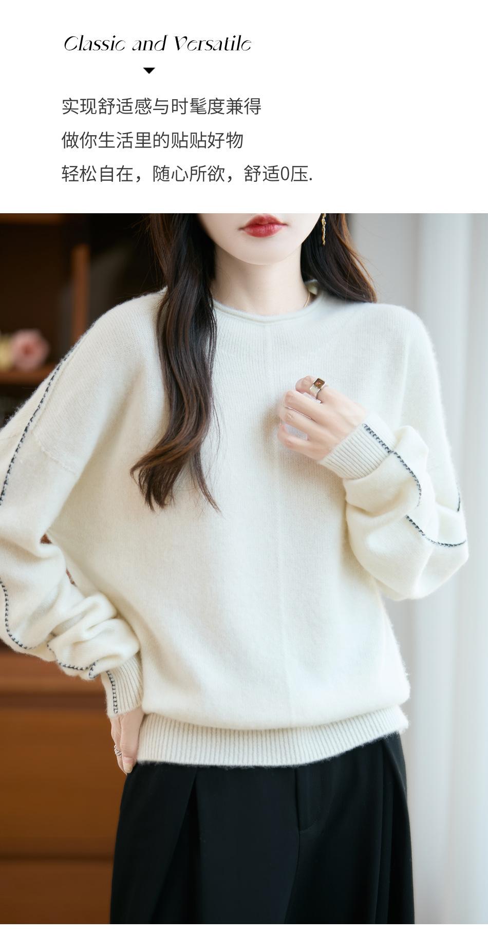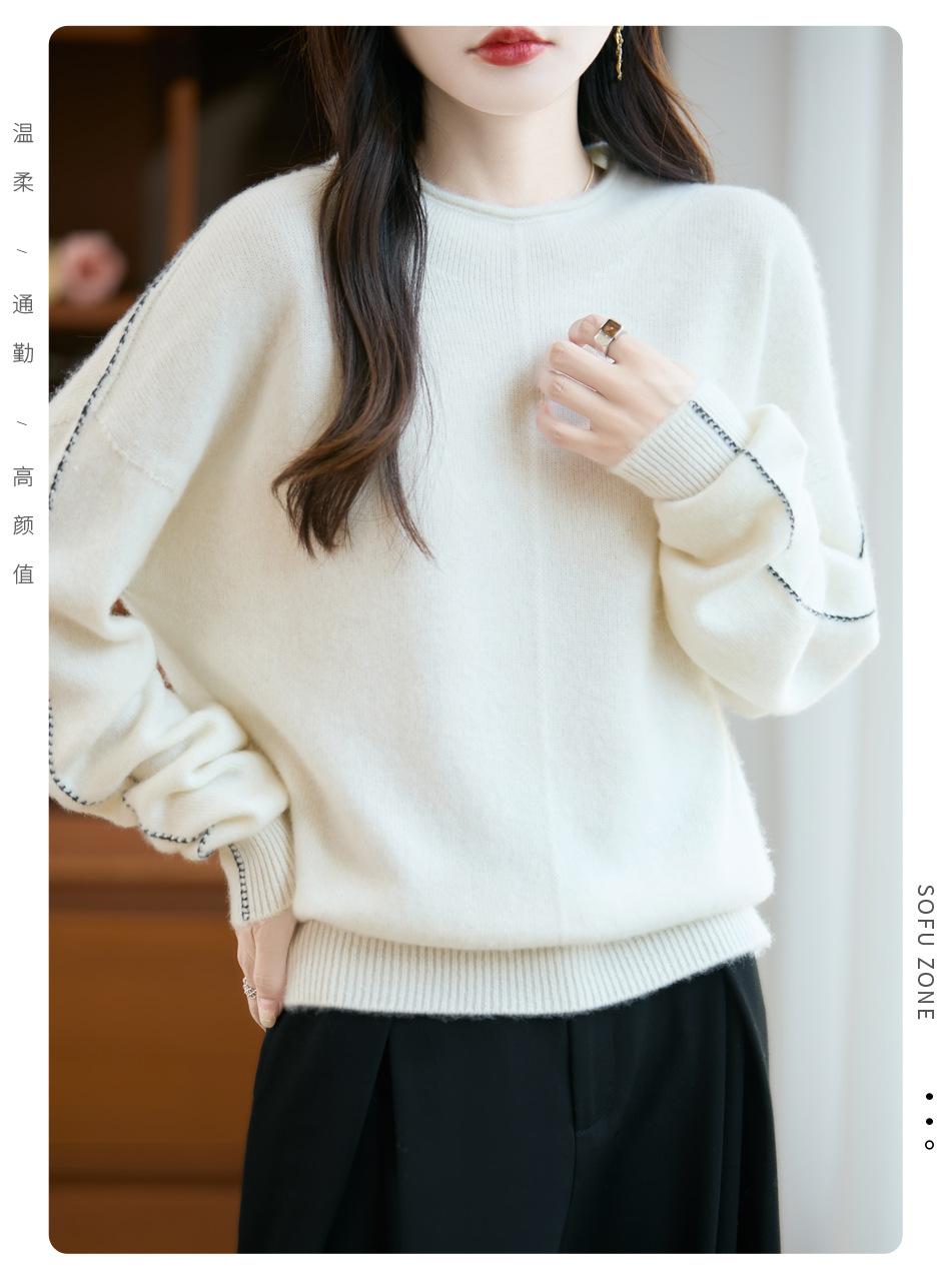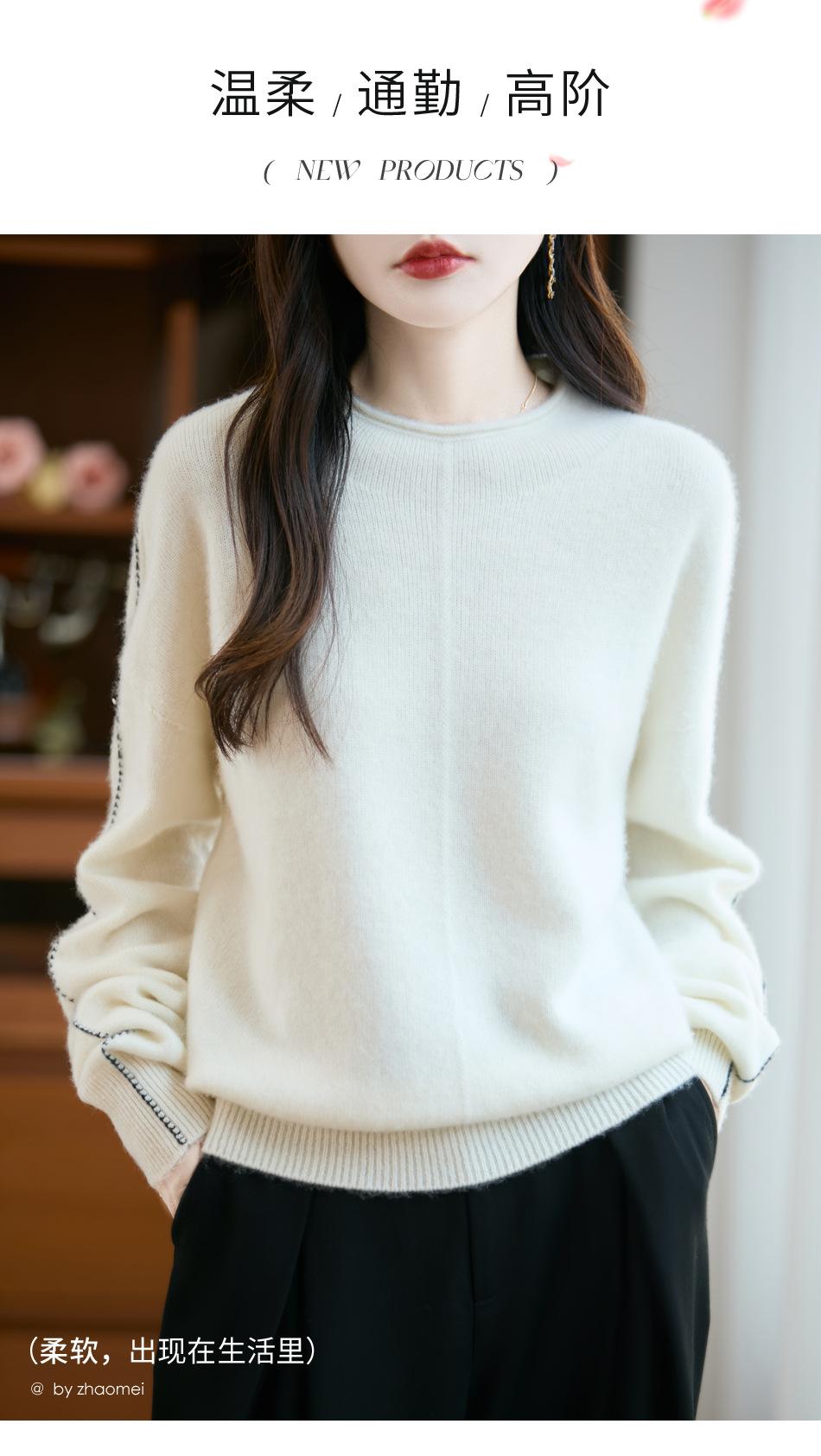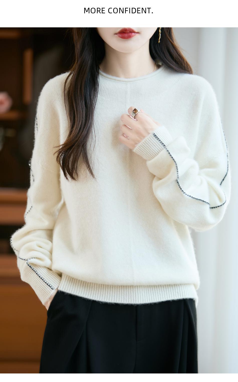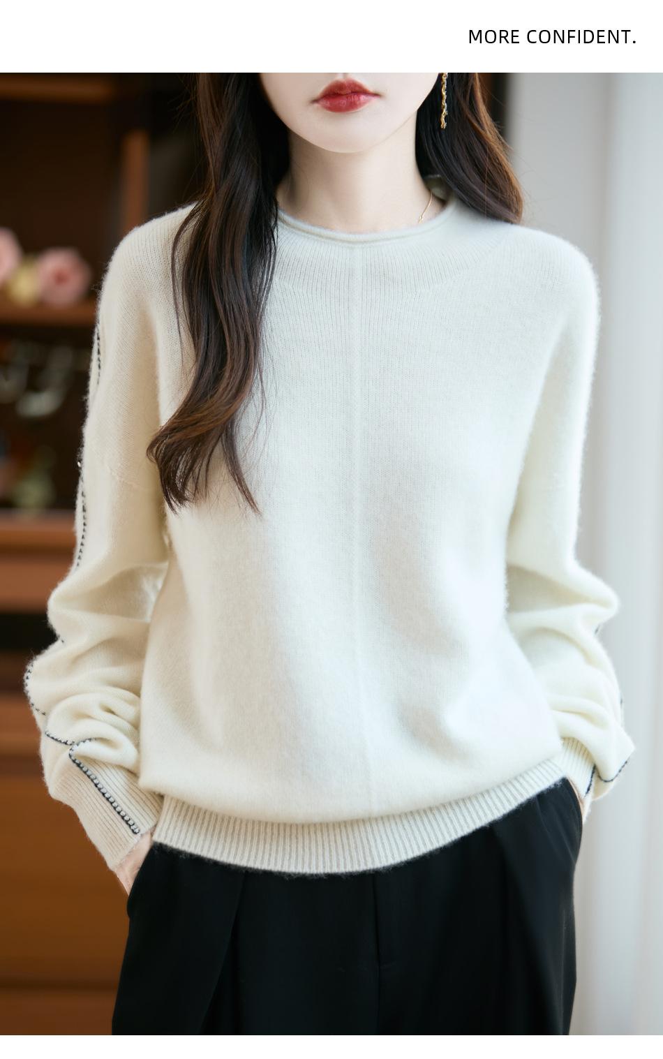 Suéter sin costuras de una pieza 100% lana pura para mujer, cuello semi alto con borde enrollado, jersey nuevo de punto de manga larga para otoño/invierno