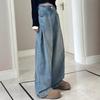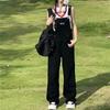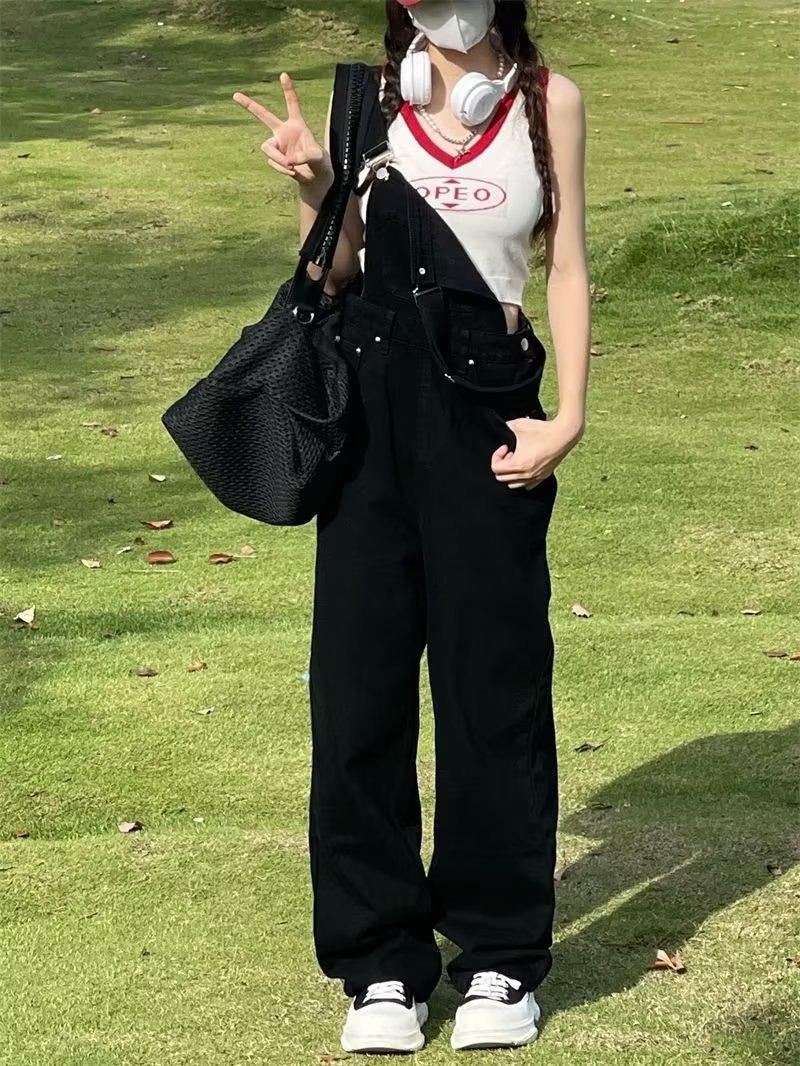 Pantalones vaqueros negros con cinturón para mujer, primavera y otoño, nuevos, holgados, antiedad, de cintura alta, adelgazantes, rectos, de pierna ancha y con cola.