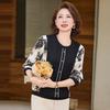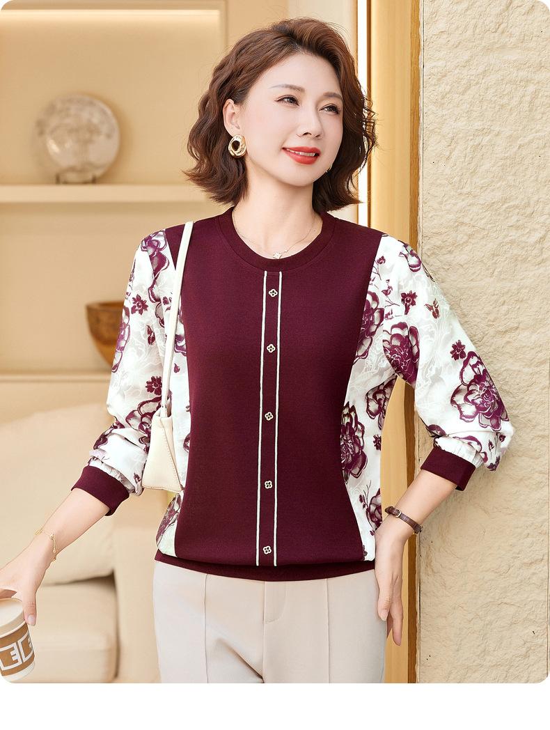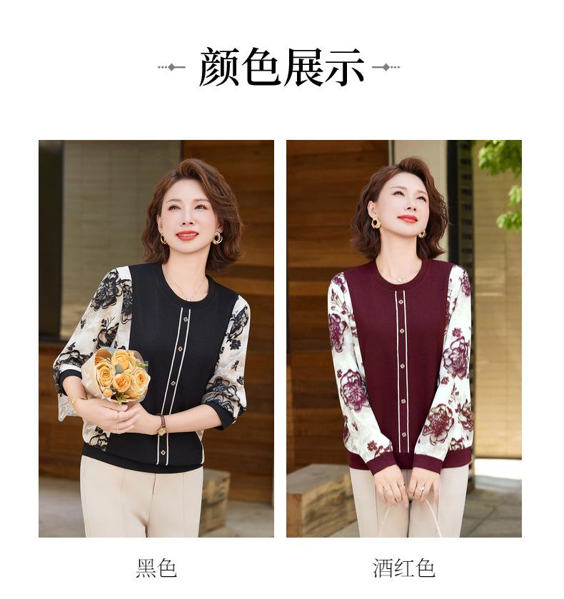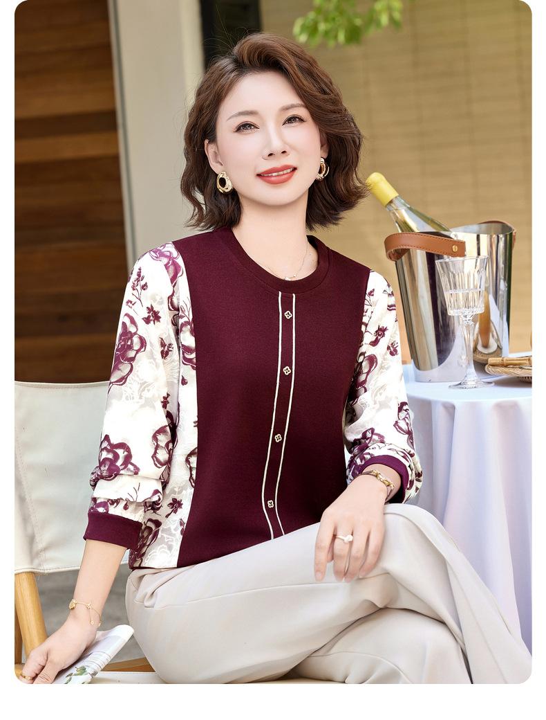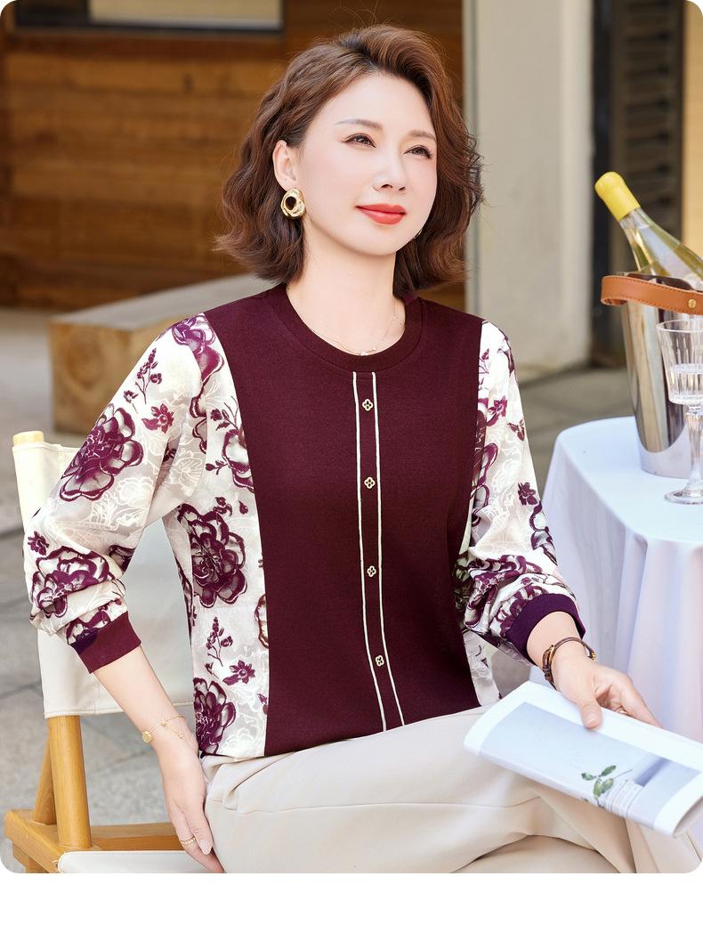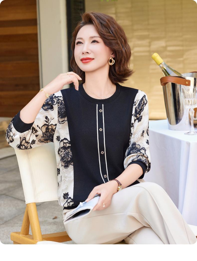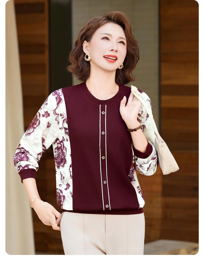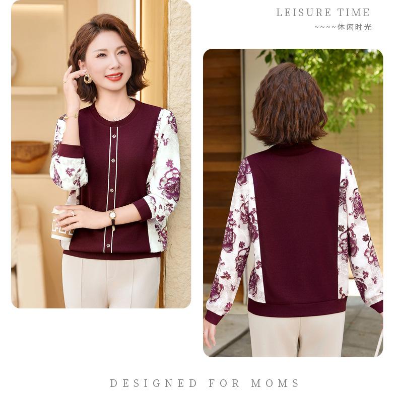 Playera de Manga Larga Patchwork Otoñal para Mamá 2025 Nueva Moda Top Rejuvenecedor Elegante Cuello Redondo Pulóver Camiseta Básica