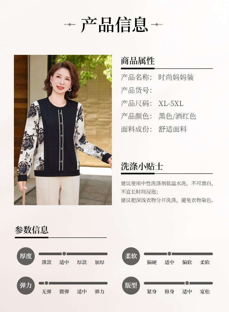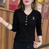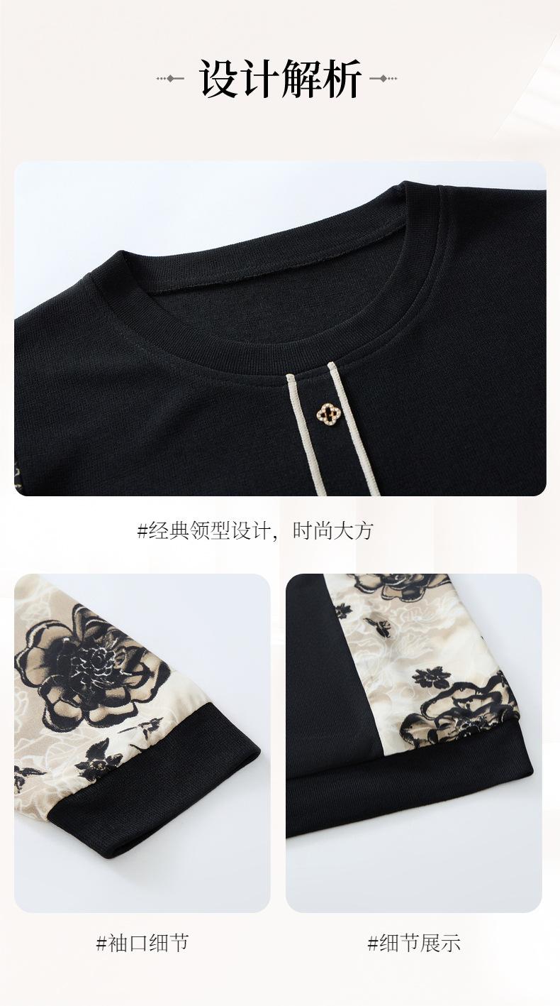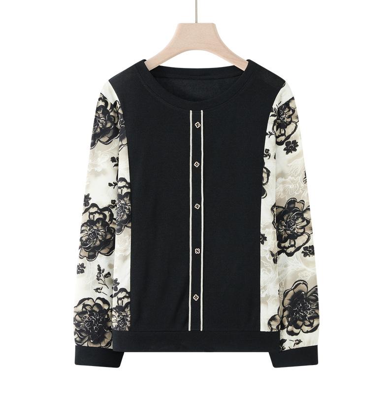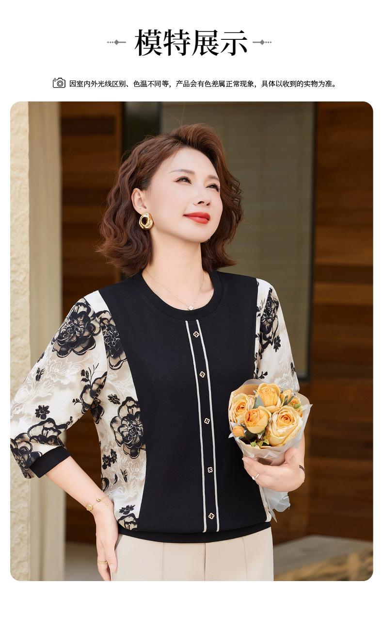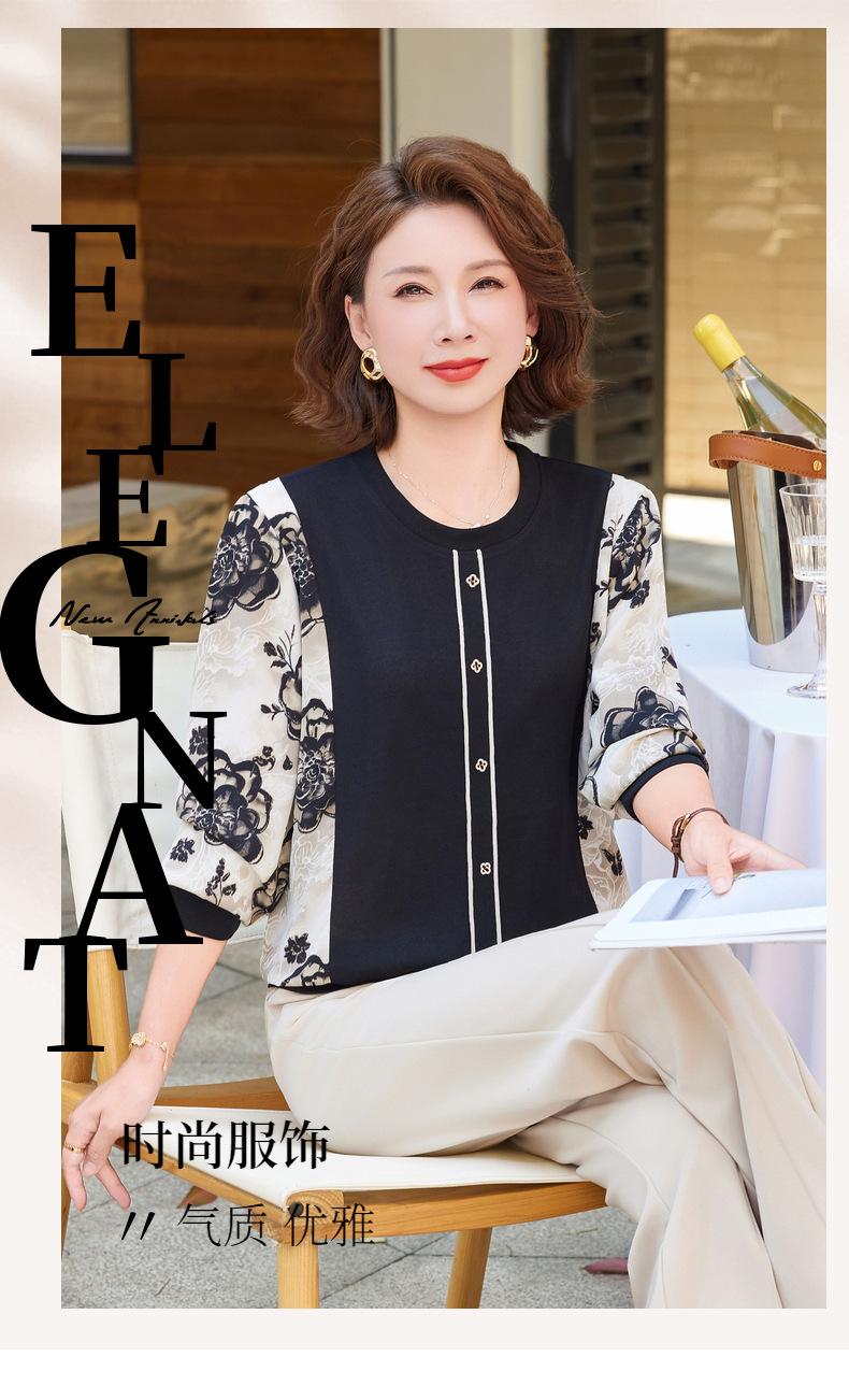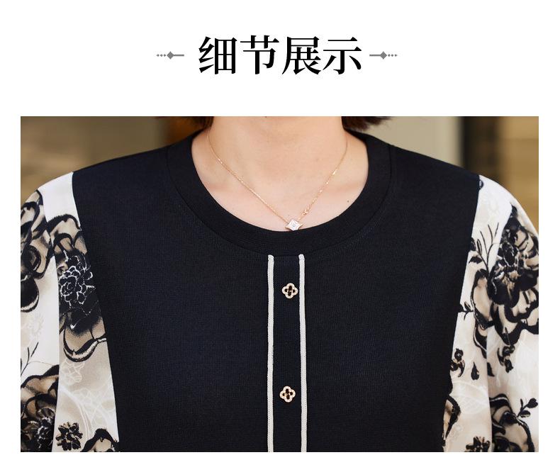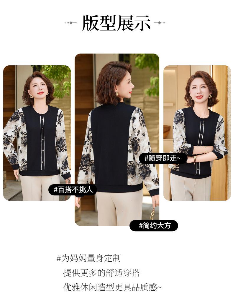 Playera de Manga Larga Patchwork Otoñal para Mamá 2025 Nueva Moda Top Rejuvenecedor Elegante Cuello Redondo Pulóver Camiseta Básica