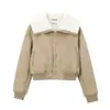 Otoño 2025 Ropa Nueva para Mujer Estilo Europeo y Americano Moda Cuello Redondo Cremallera Suave Chaqueta Corta