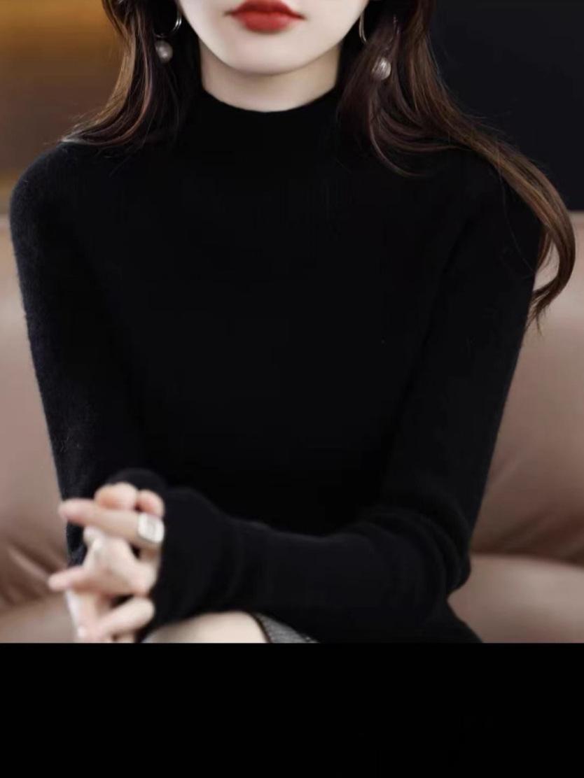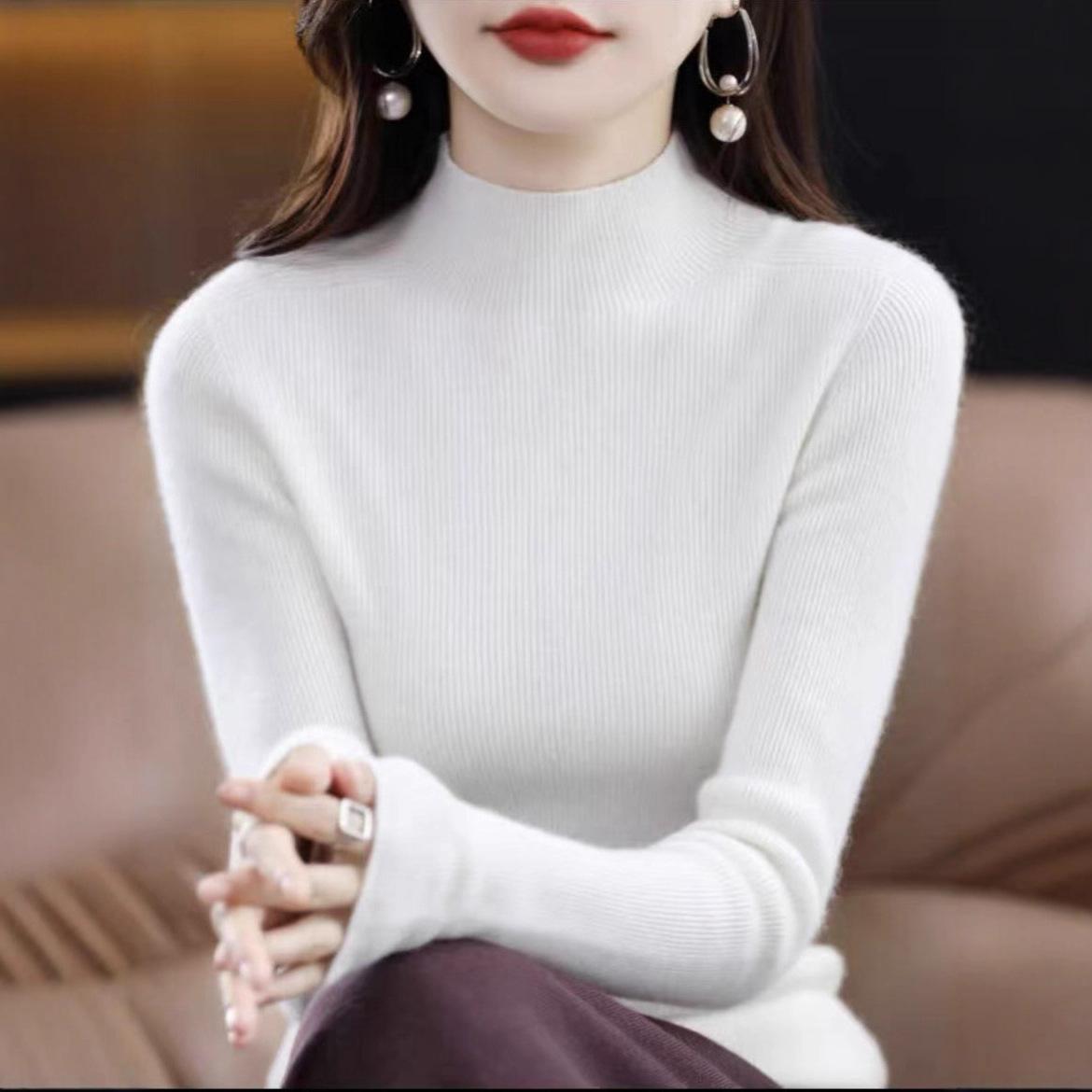 Suéter nuevo de otoño e invierno 2025 de cuello semi alto y corte ajustado para mujer, ajustado, moderno, de punto interior básico, top de ropa de mujer