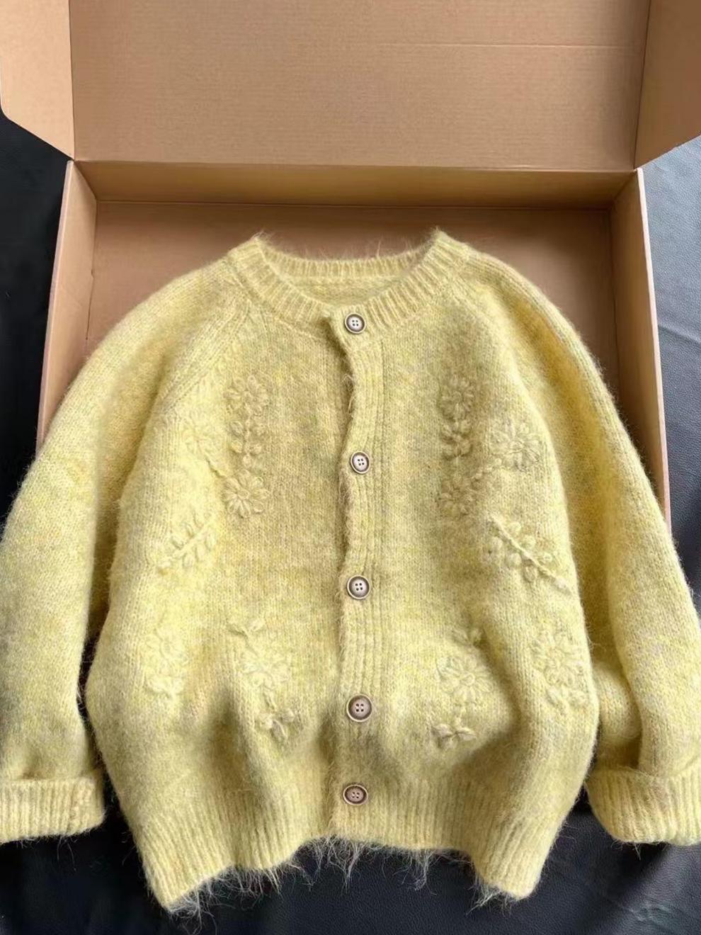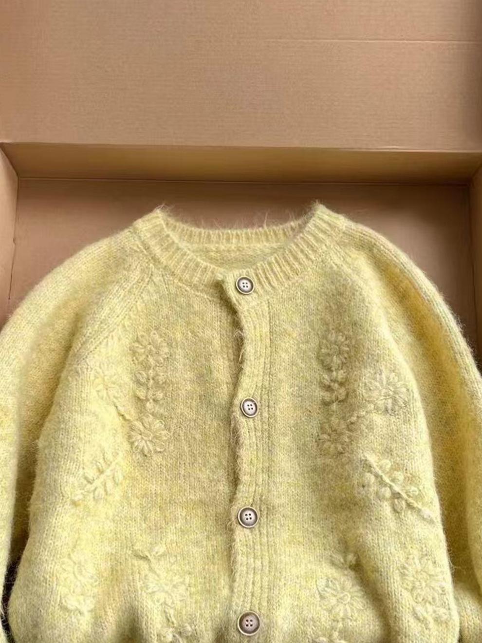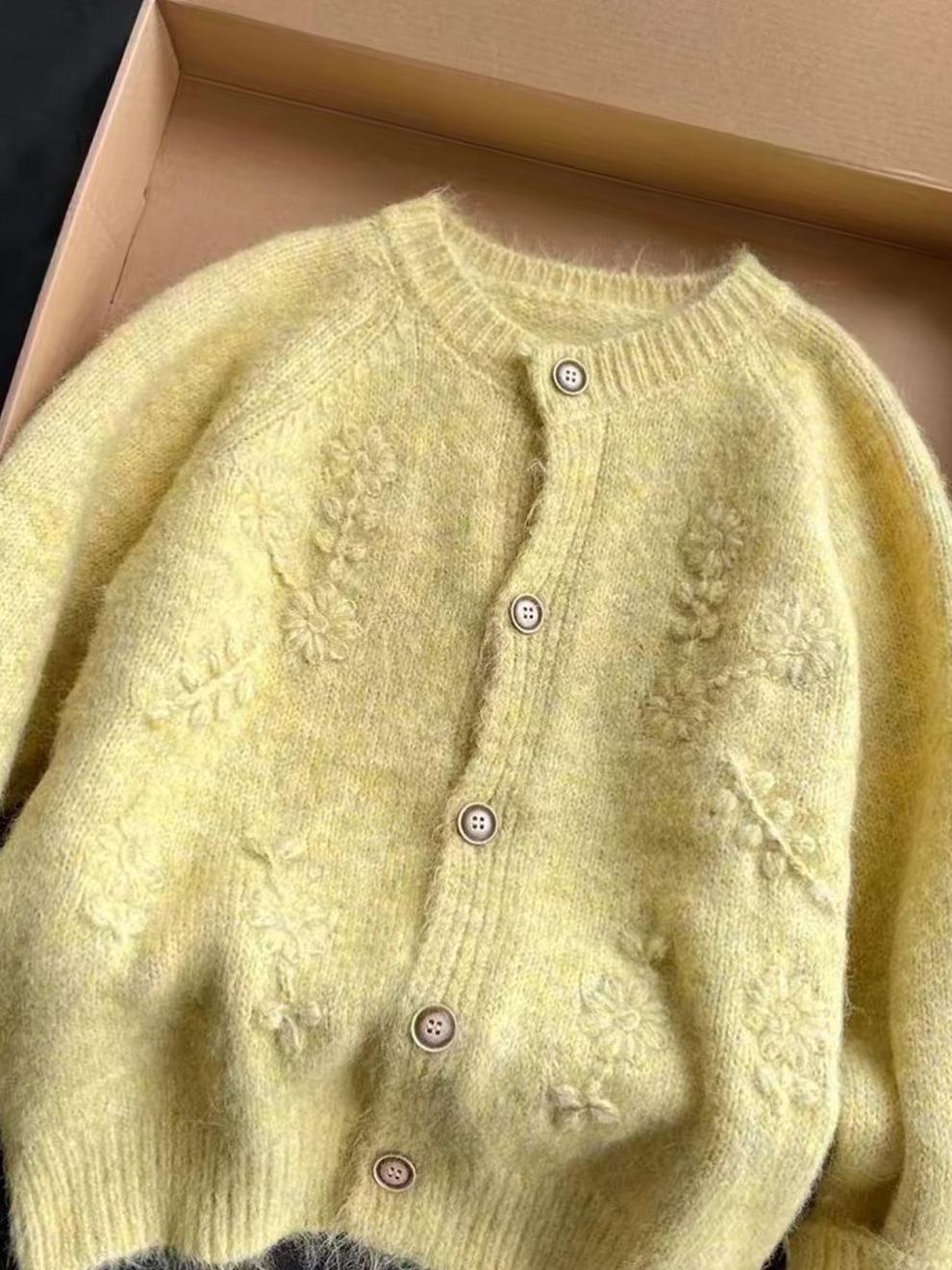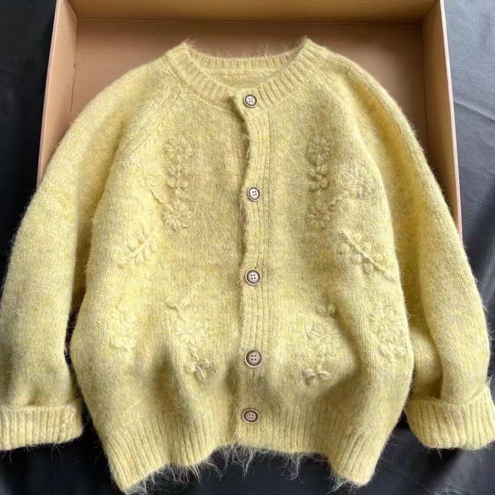 Cárdigan de Punto Bordado 3D Chic de Cuello Redondo Estilo Coreano para Mujer Otoño/Invierno 2025 Nuevo Abrigo Suéter Dulce Holgado Tendencia