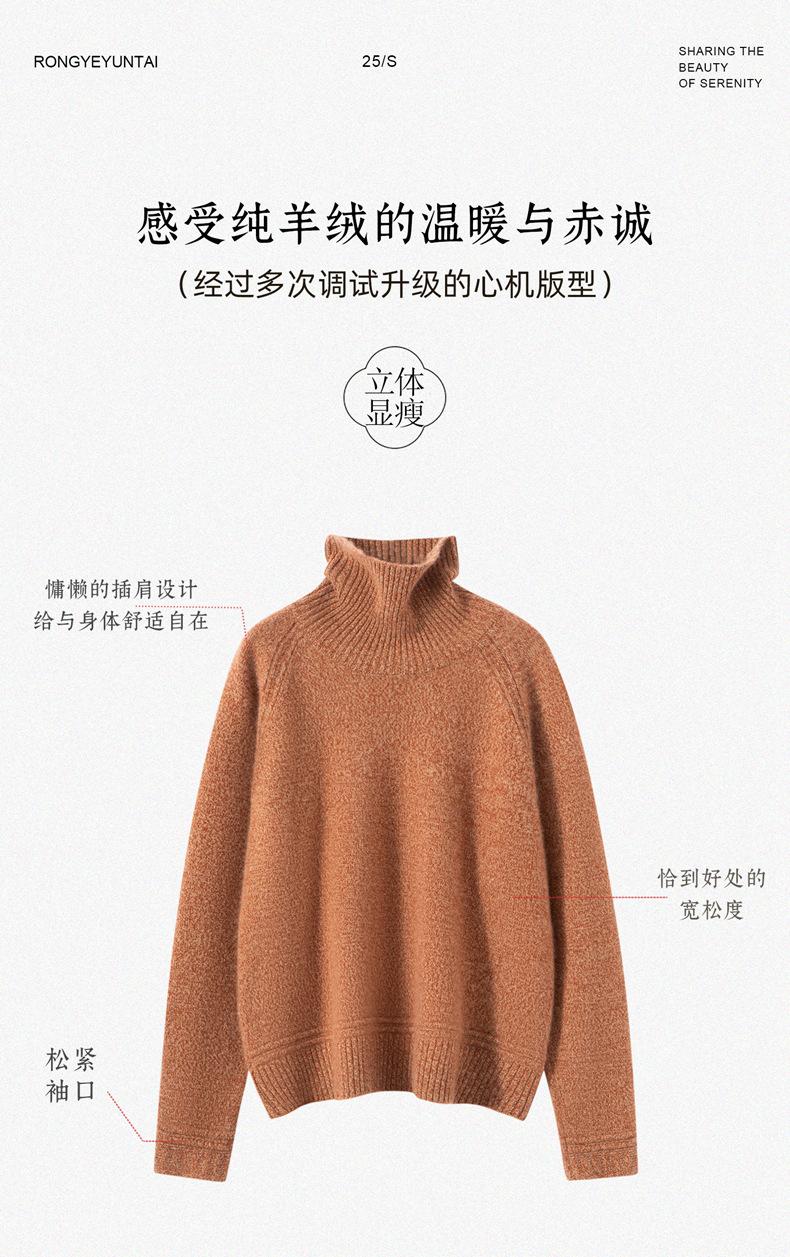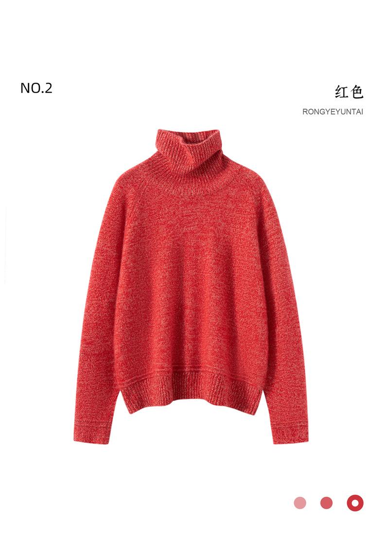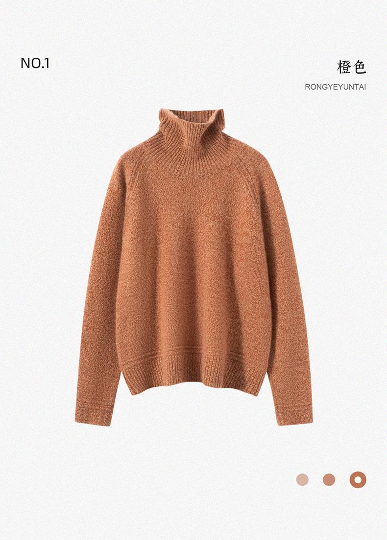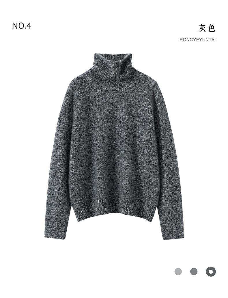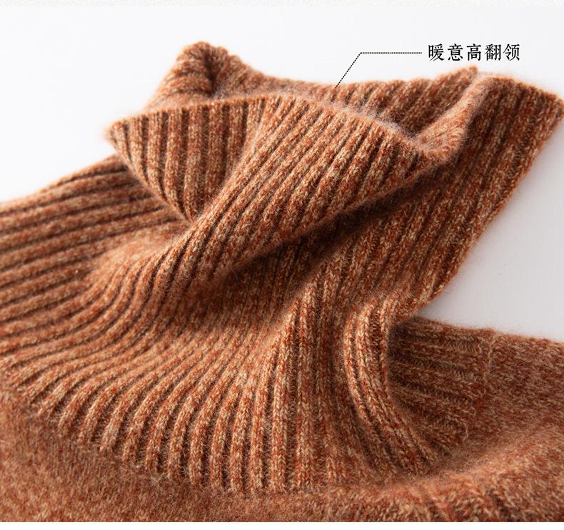 Suéter de Cachemira Mujer 100% Cachemira Pura Otoño Invierno Versátil Simple Color Sólido Cuello Alto Suéter Tejido Holgado
