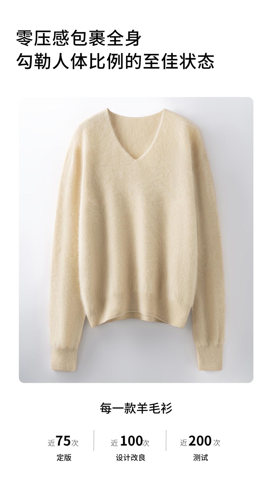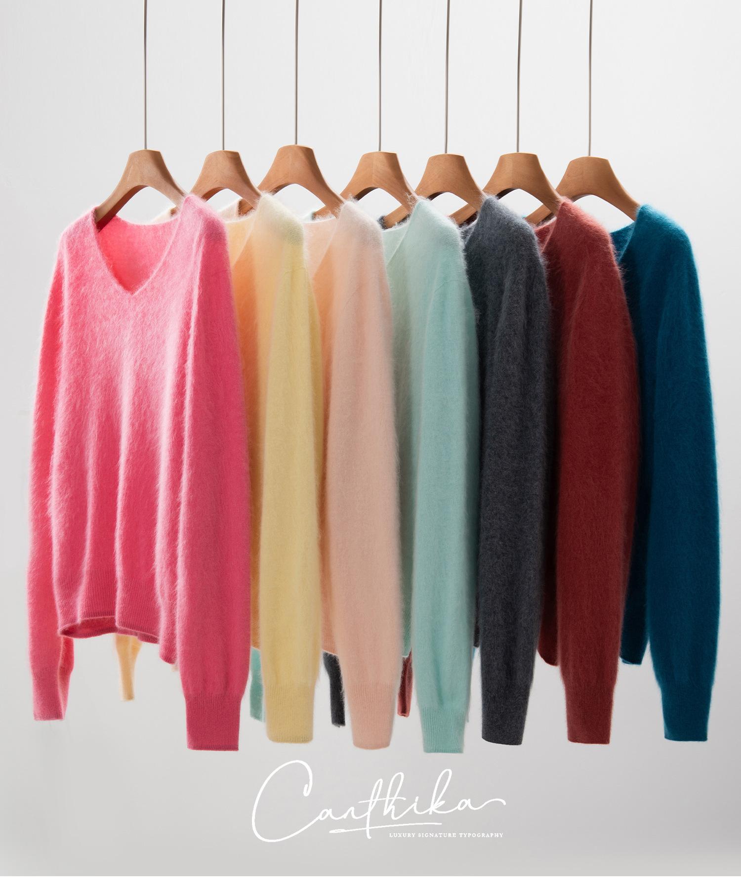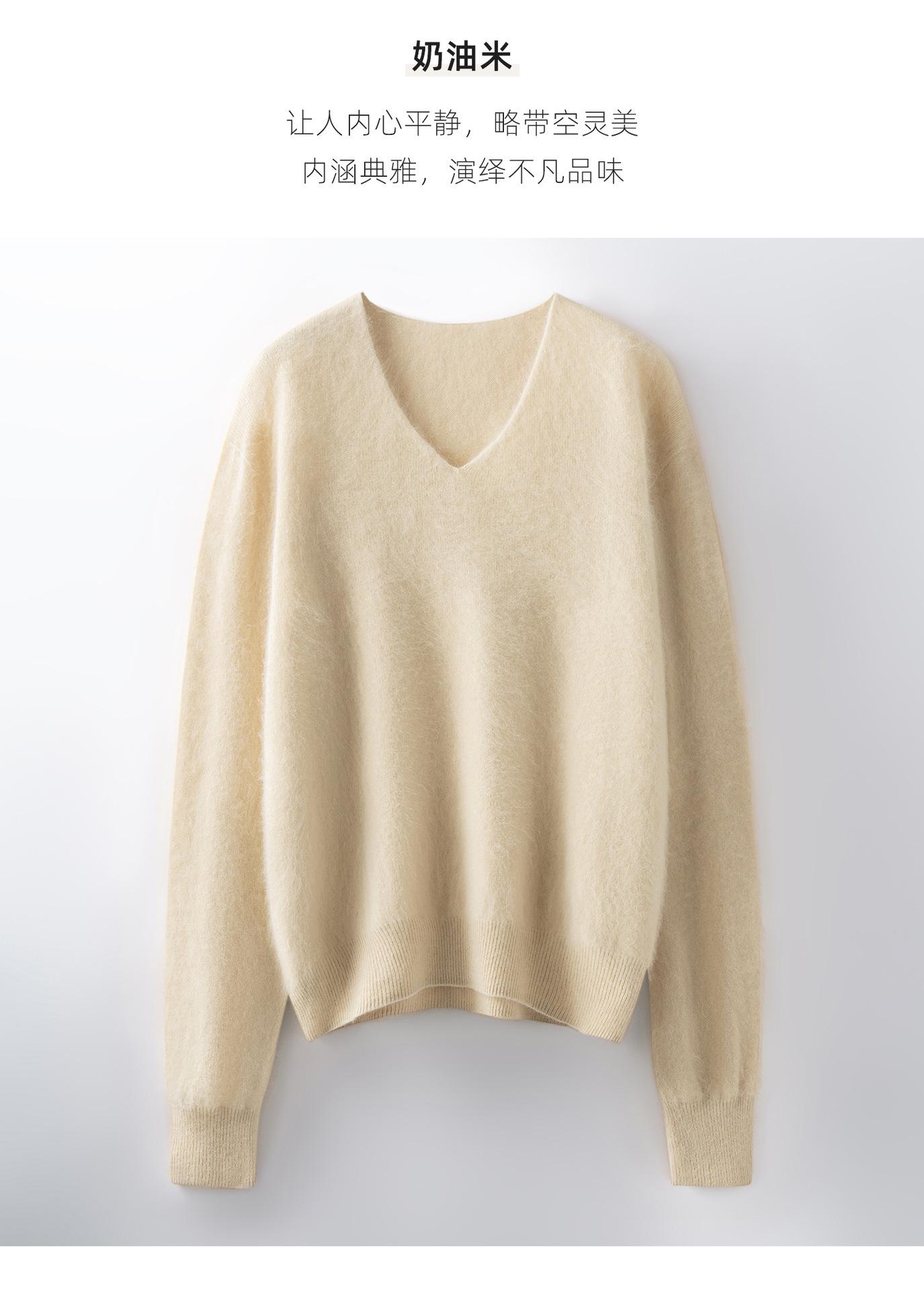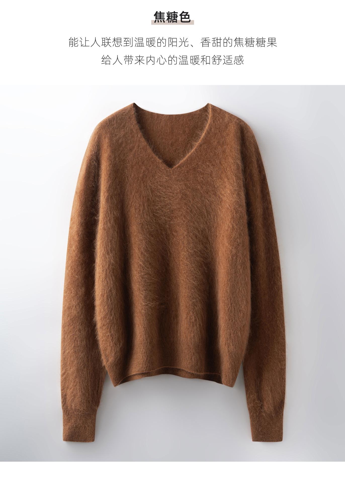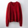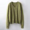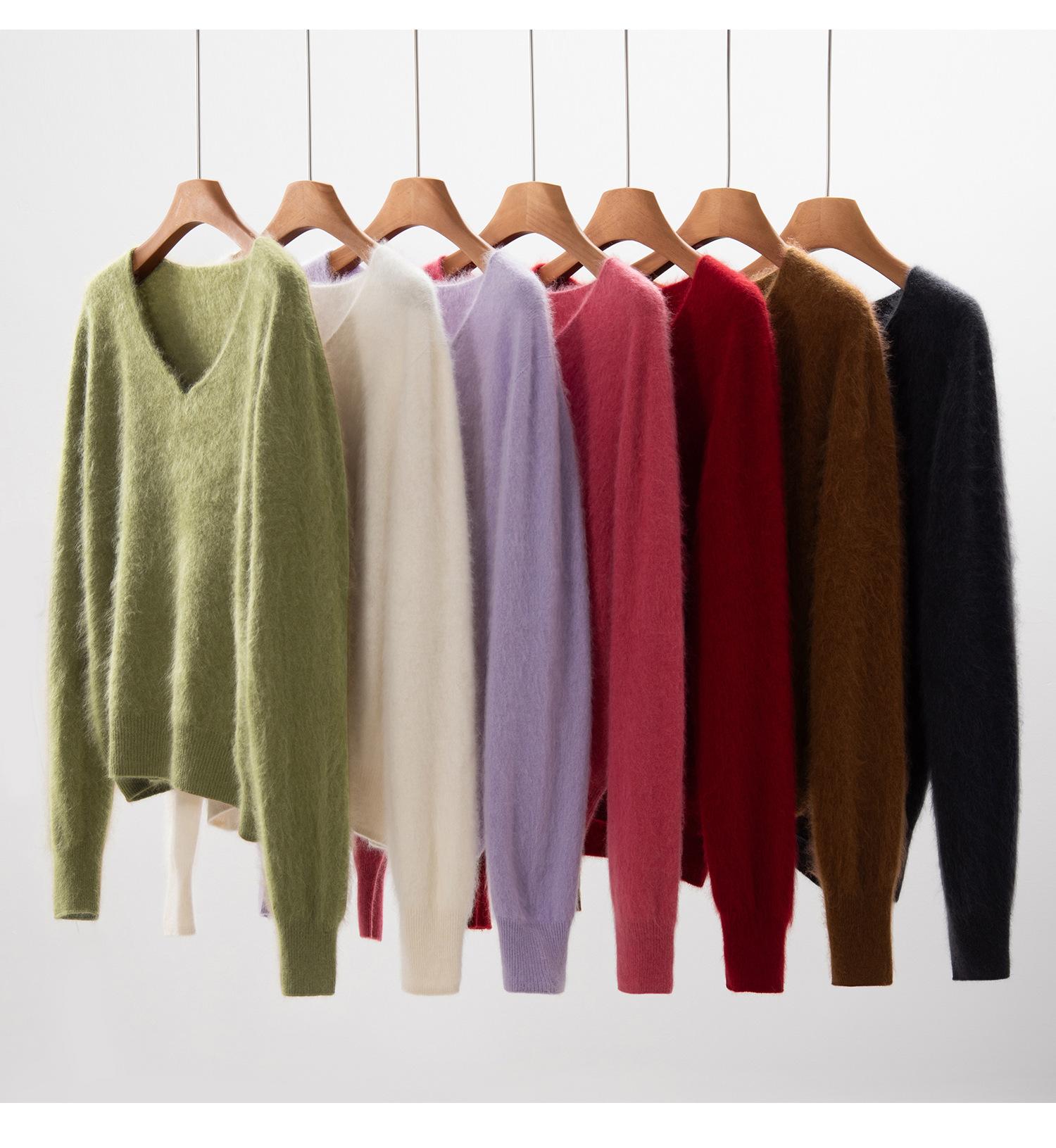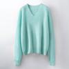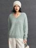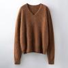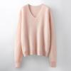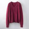 Fabricante al por mayor 2025 otoño e invierno nuevo suéter cepillado de lana de cachemira de una pieza sin costuras con cuello en V agradable para la piel para mujer