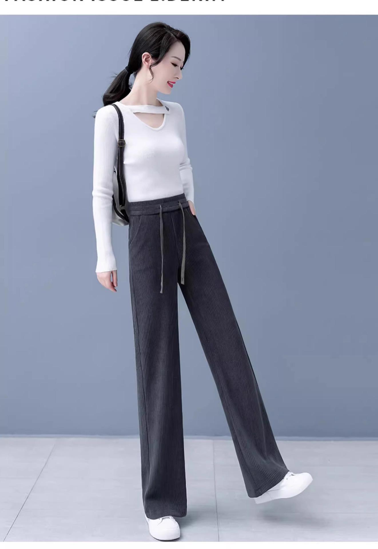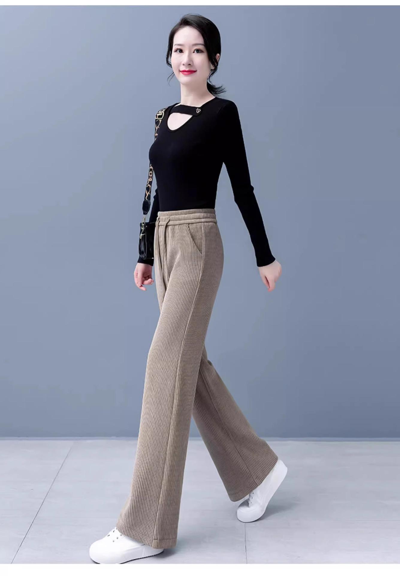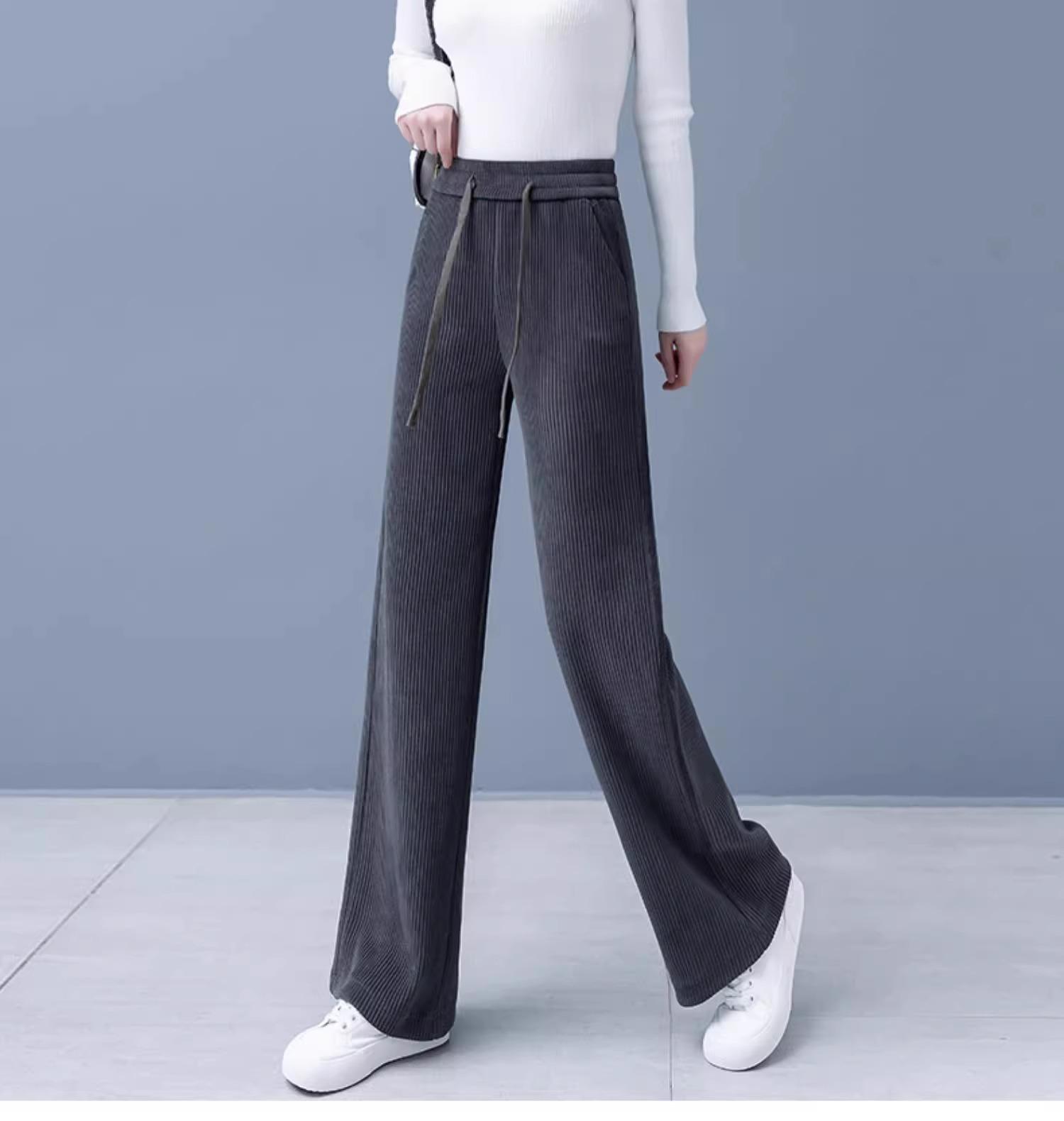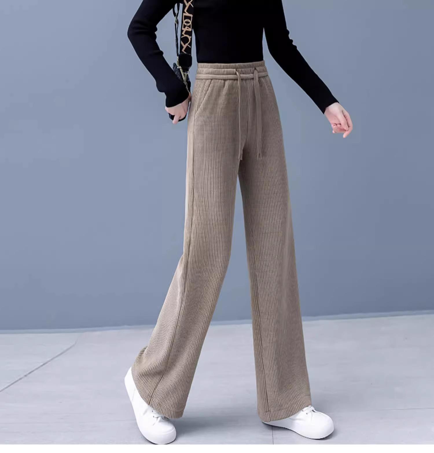 Talla grande mm 200 jin pantalones casuales mujer corte slim adelgazantes otoño e invierno engrosados pantalones de pierna ancha mujer casual rectos pantalones deportivos