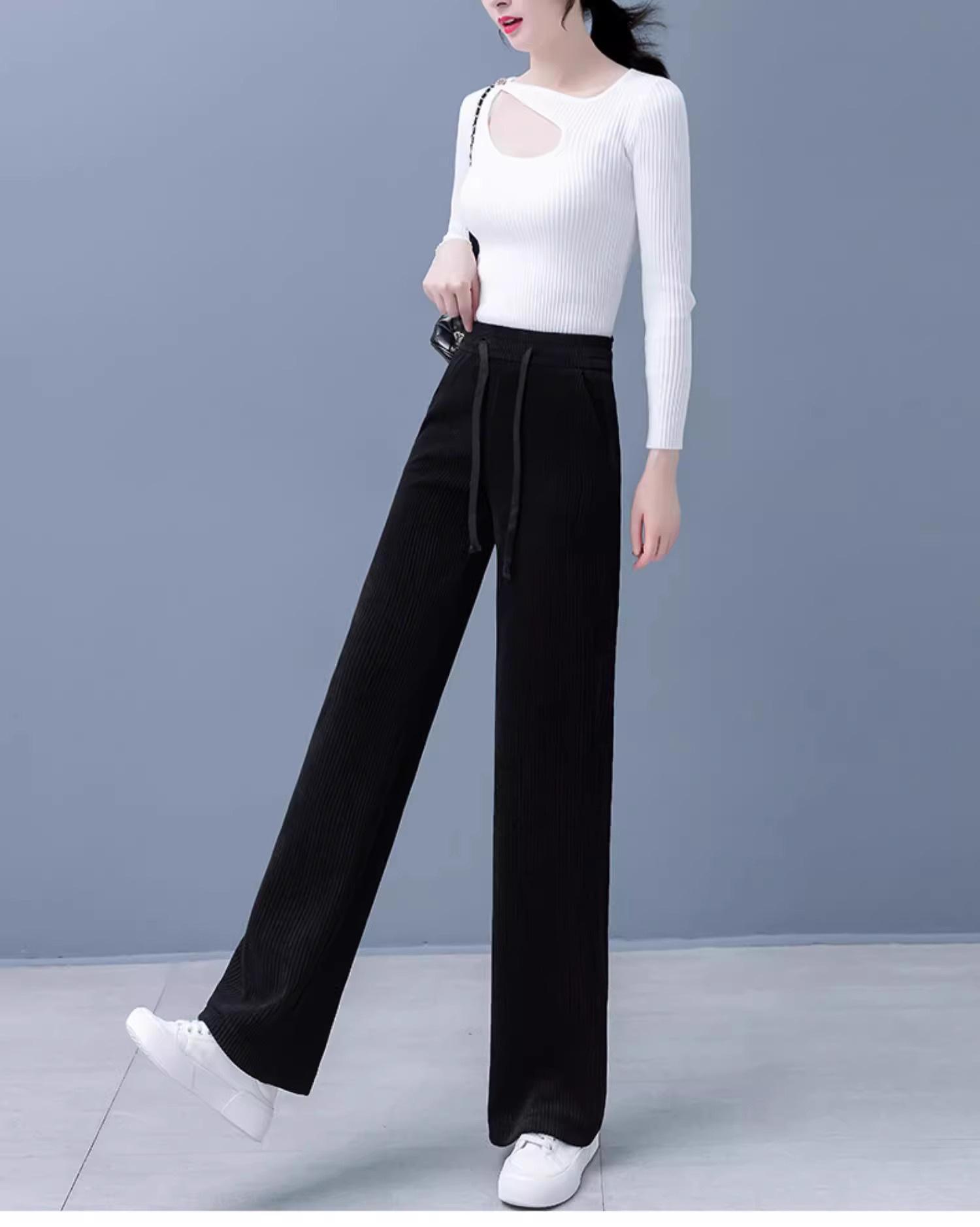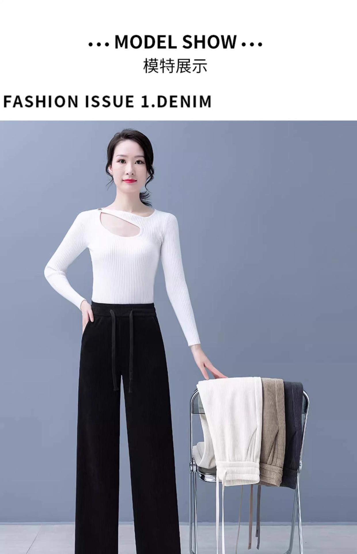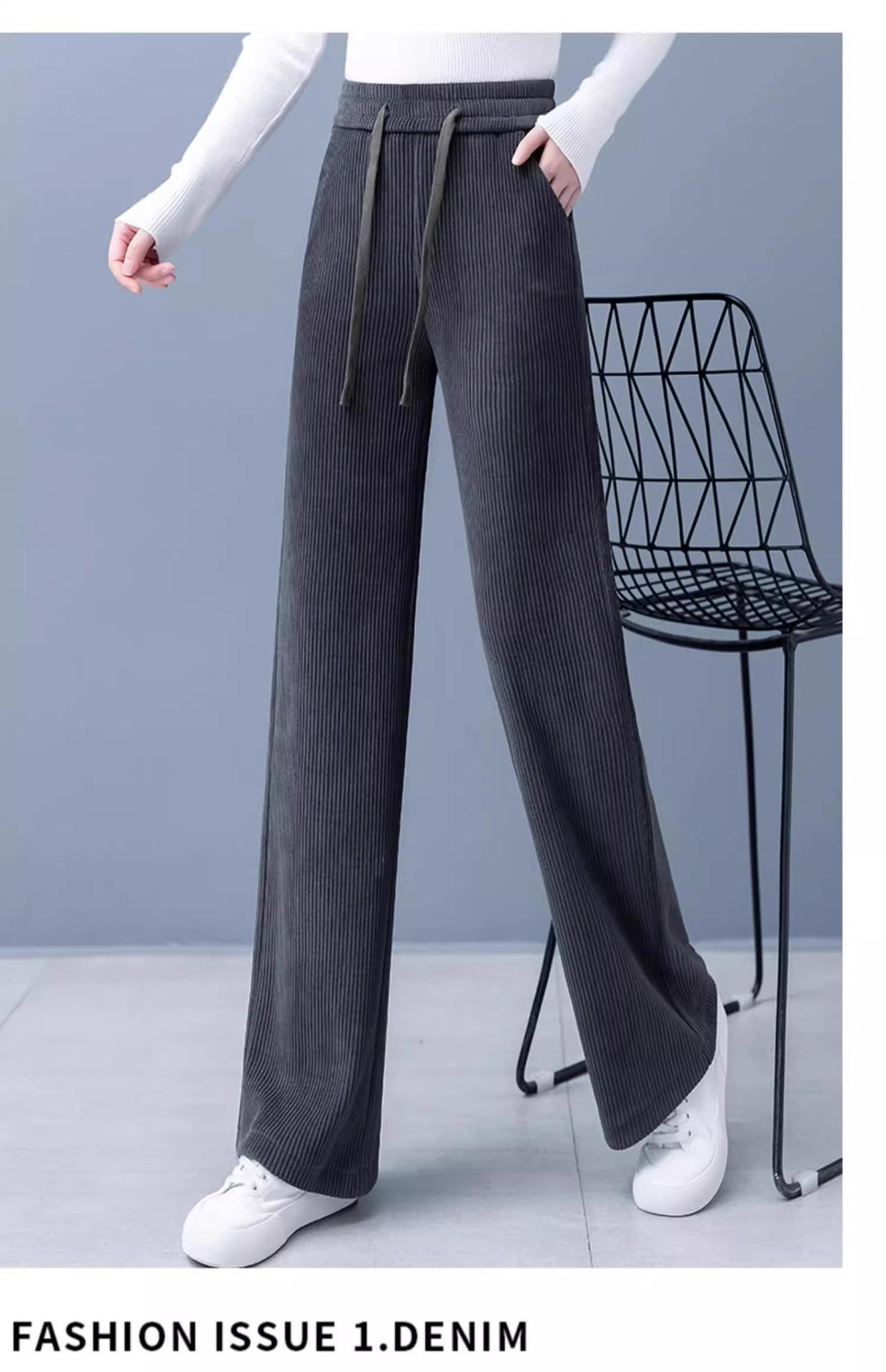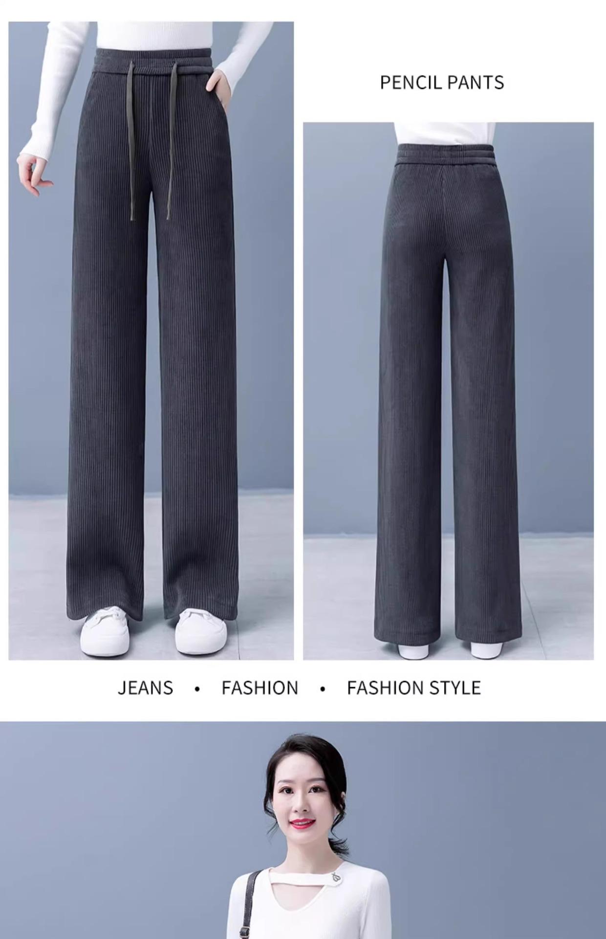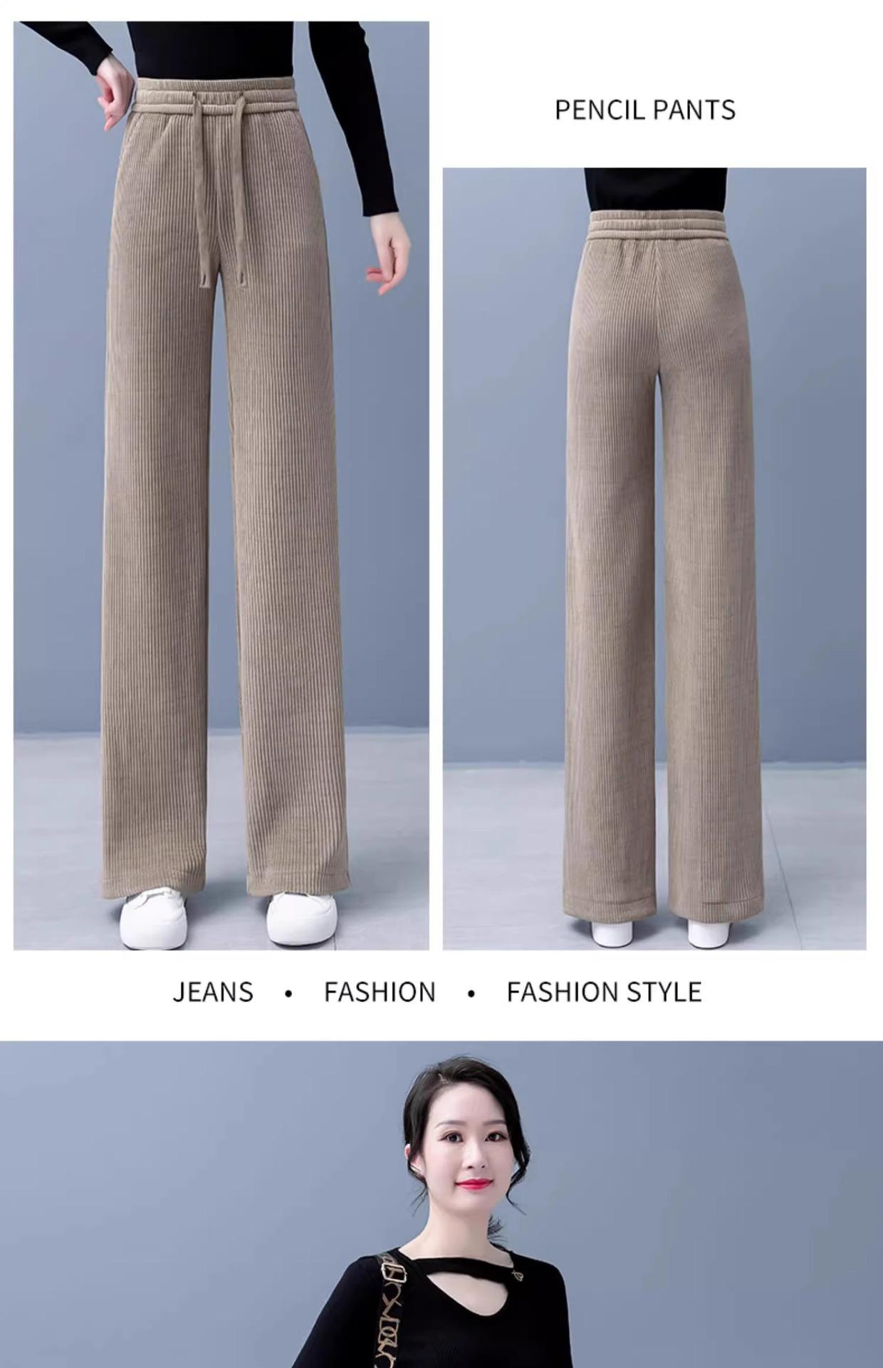 Talla grande mm 200 jin pantalones casuales mujer corte slim adelgazantes otoño e invierno engrosados pantalones de pierna ancha mujer casual rectos pantalones deportivos