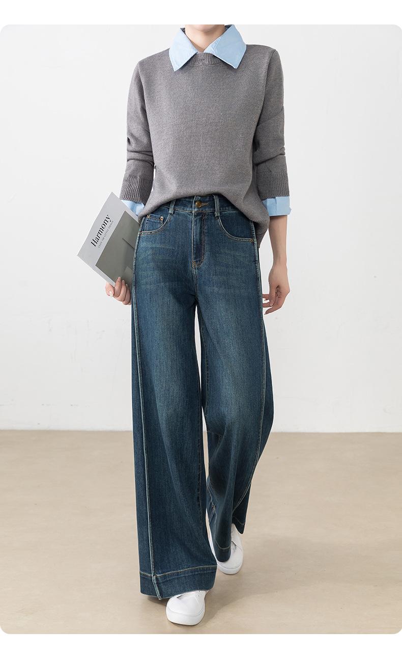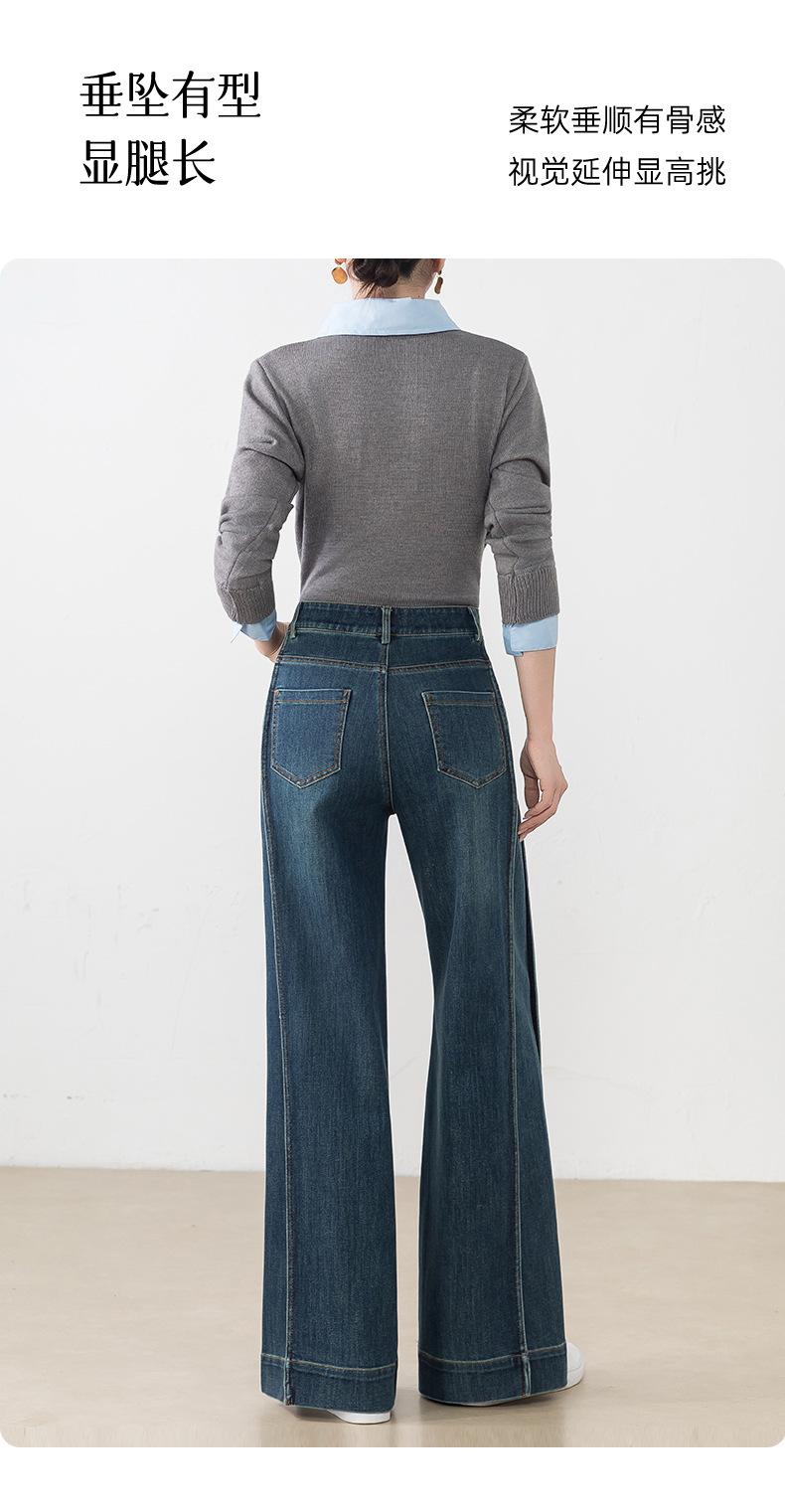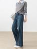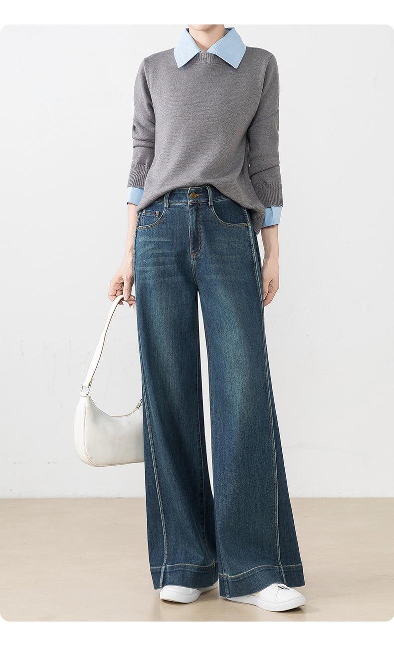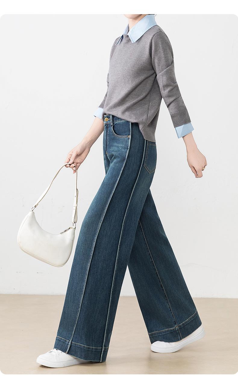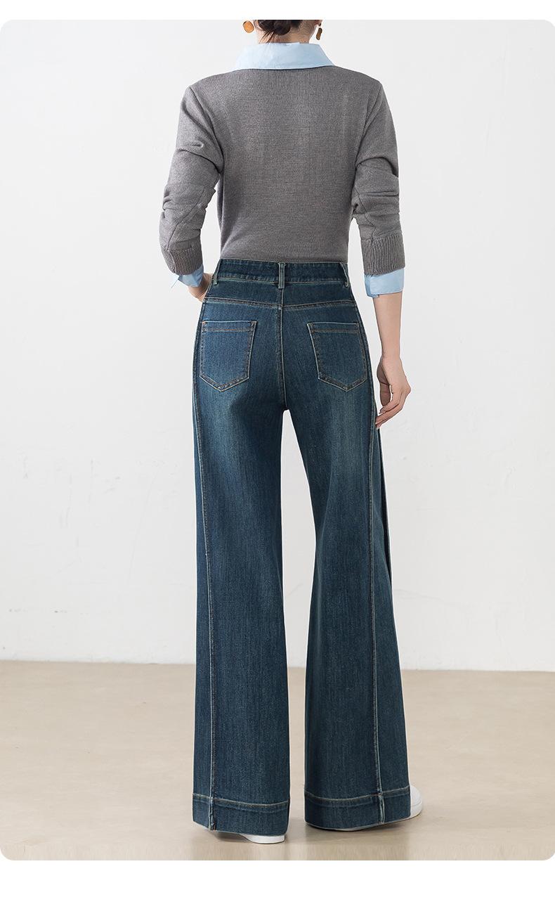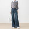Jeans retro azul oscuro de cintura alta y pierna ancha para mujer otoño 2025 holgados adelgazantes elásticos casuales acampanados de barril hasta el suelo