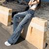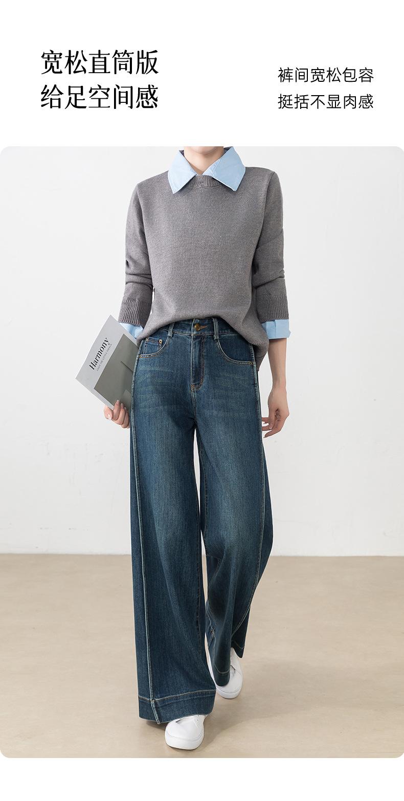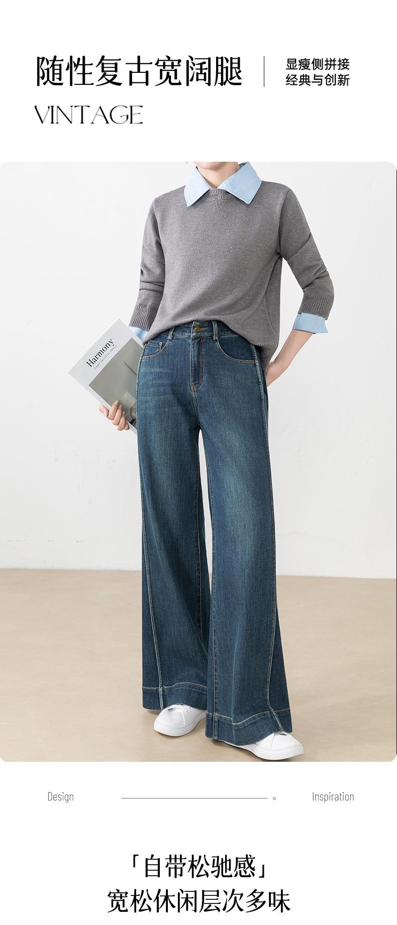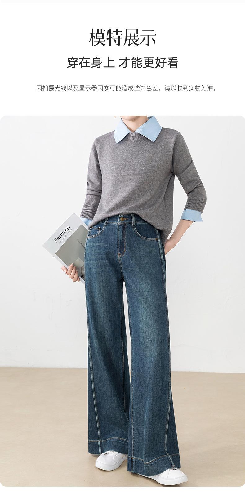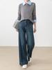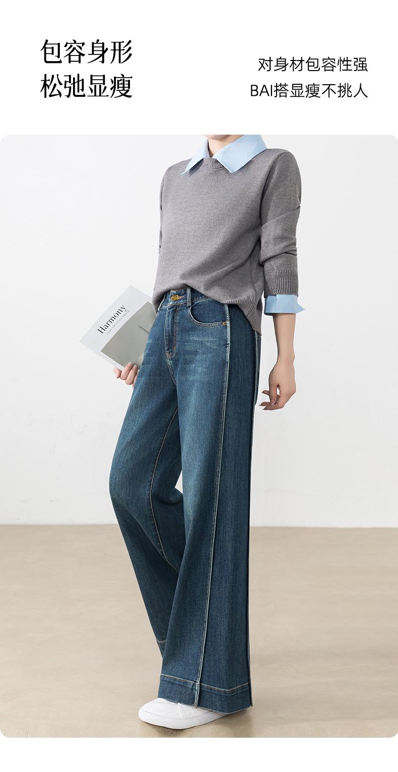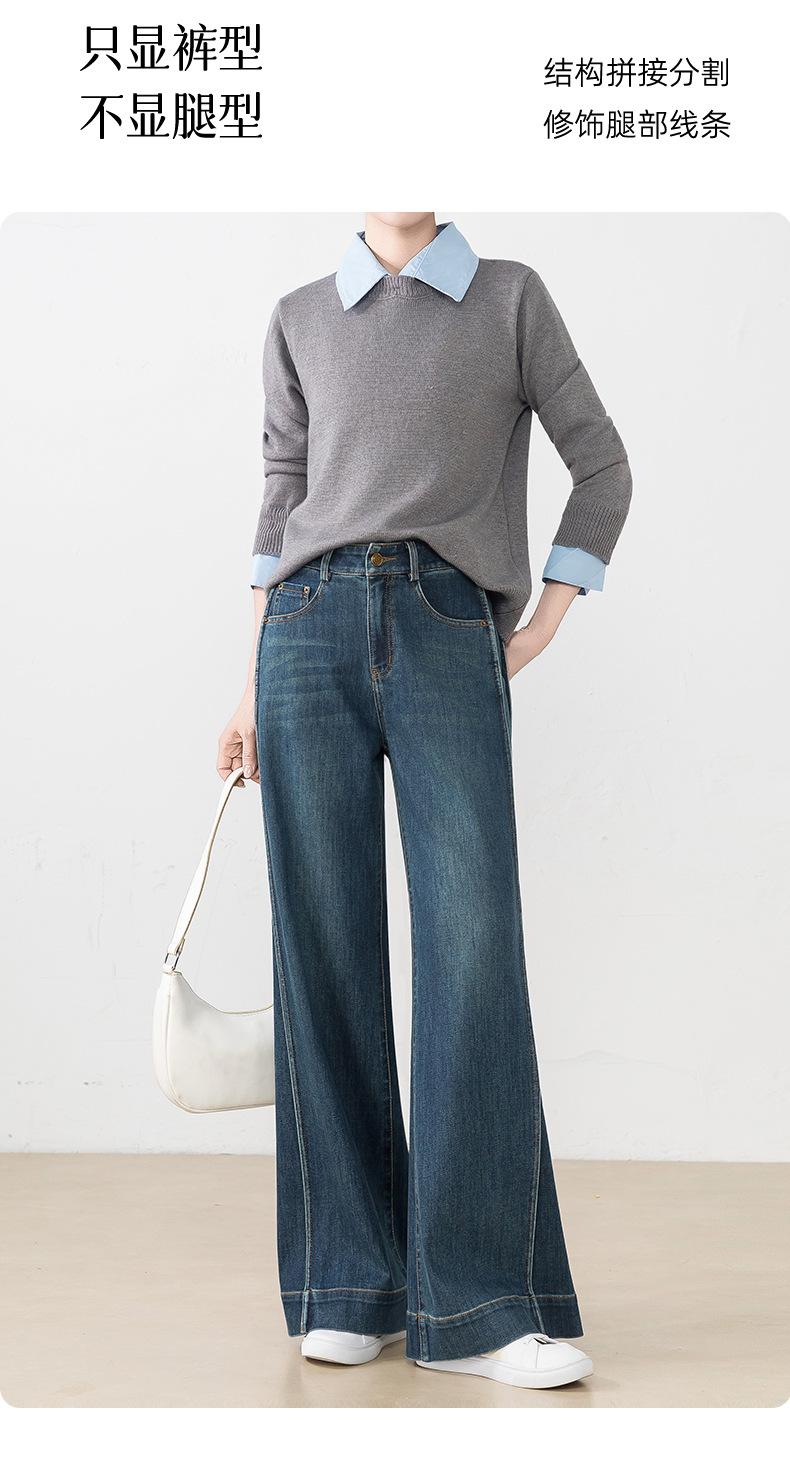 Jeans retro azul oscuro de cintura alta y pierna ancha para mujer otoño 2025 holgados adelgazantes elásticos casuales acampanados de barril hasta el suelo