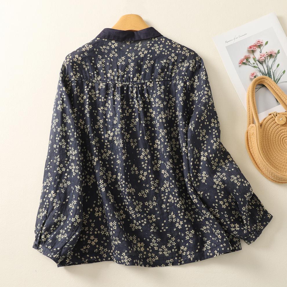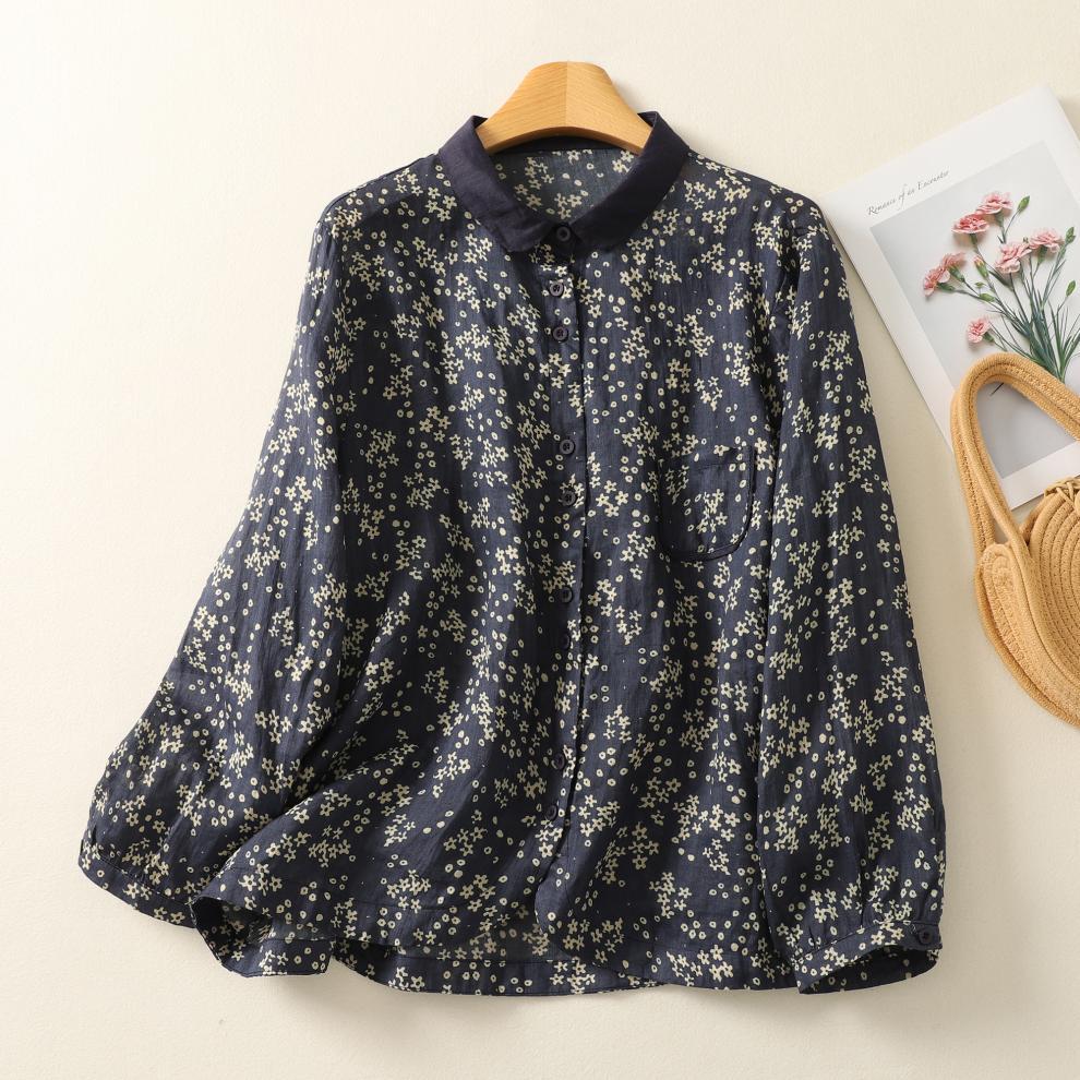 Foto real primavera y otoño 2025 camisa floral manga larga retro francesa de alta gama estilo Hong Kong floral pequeño suelta camisa de moda