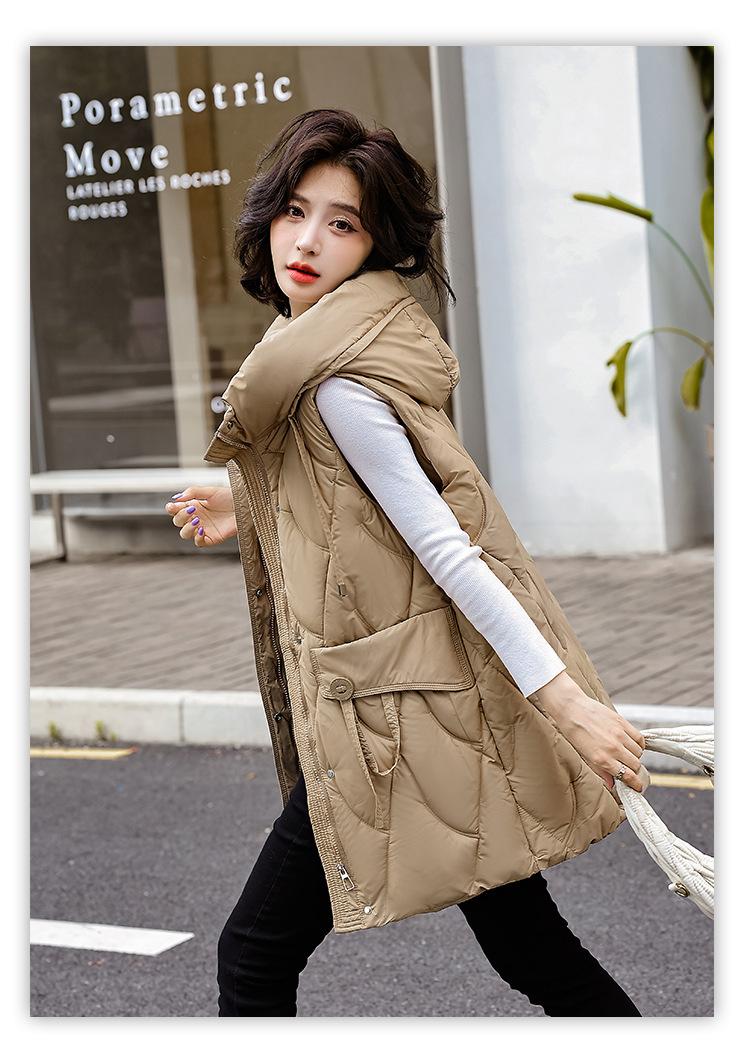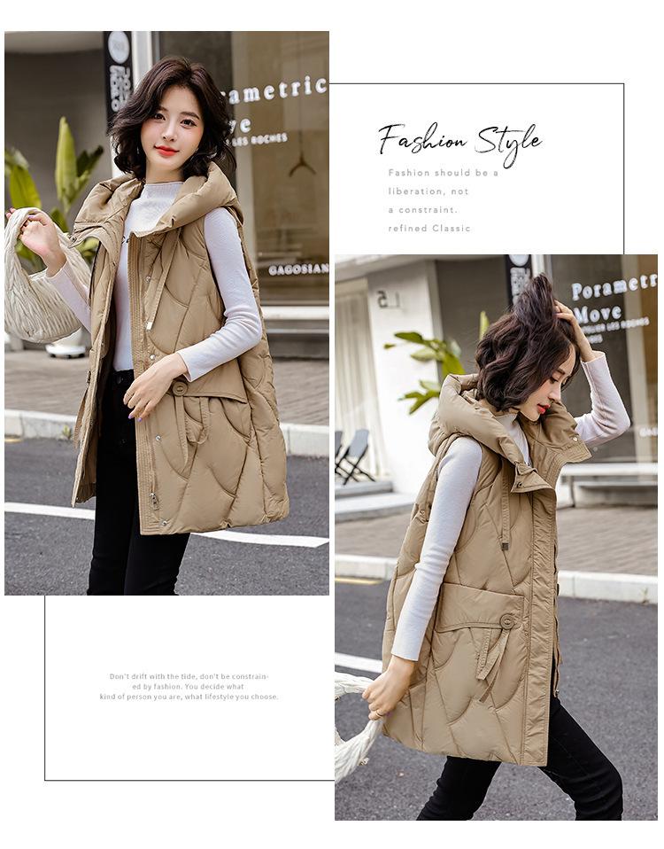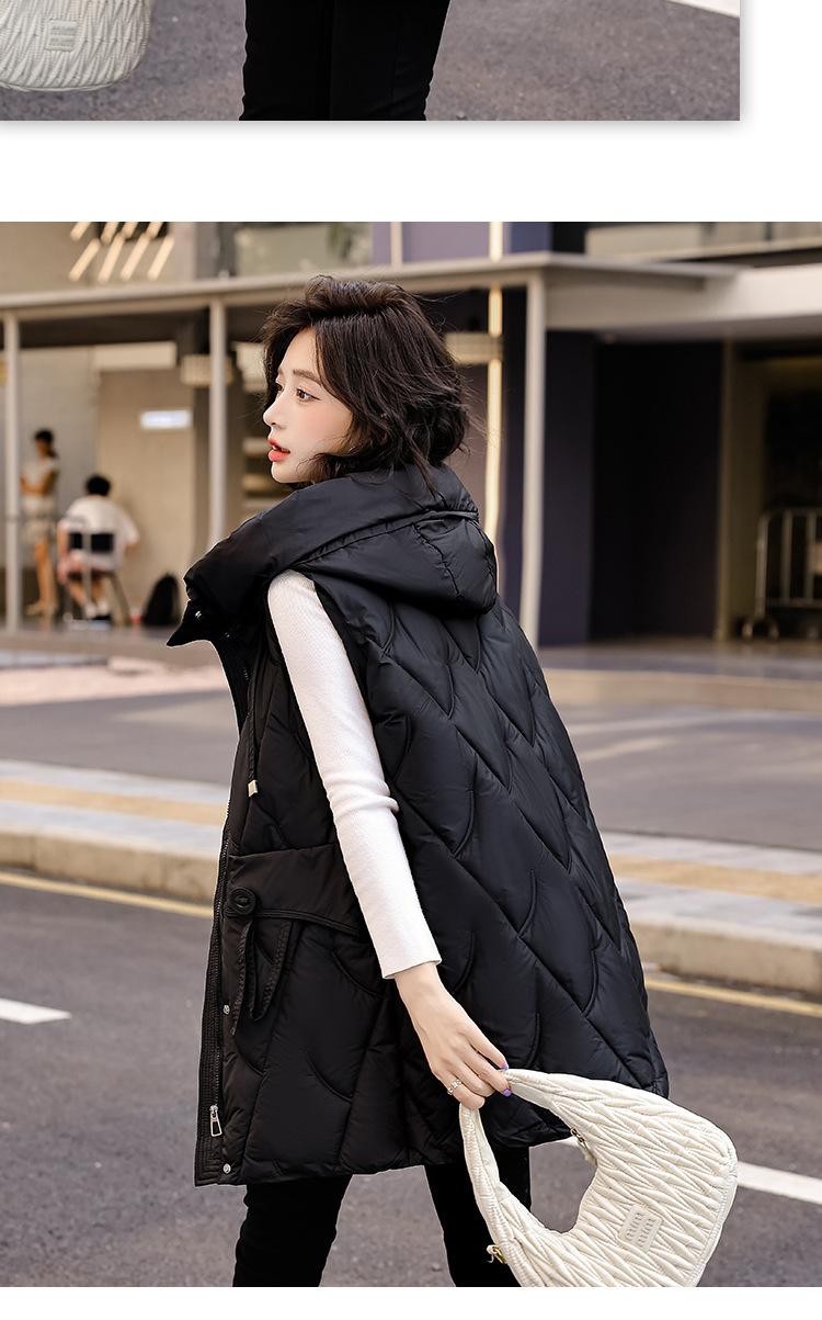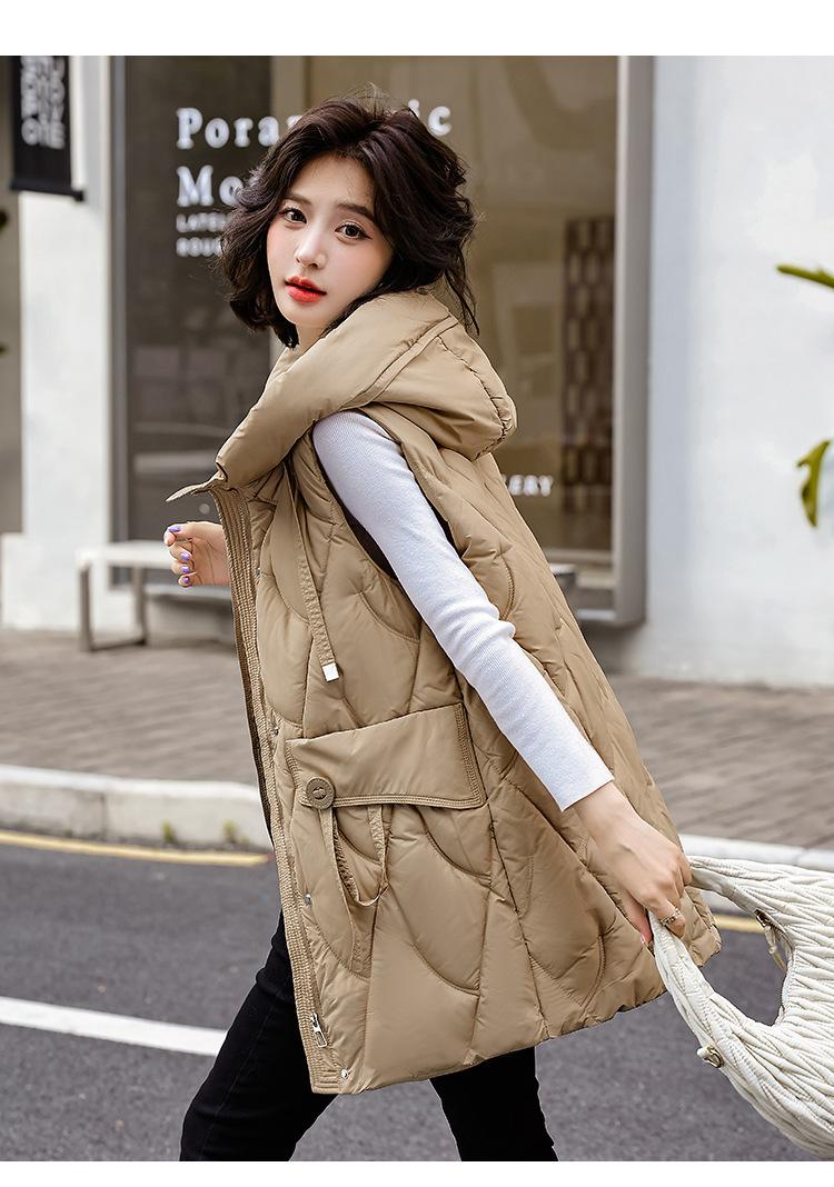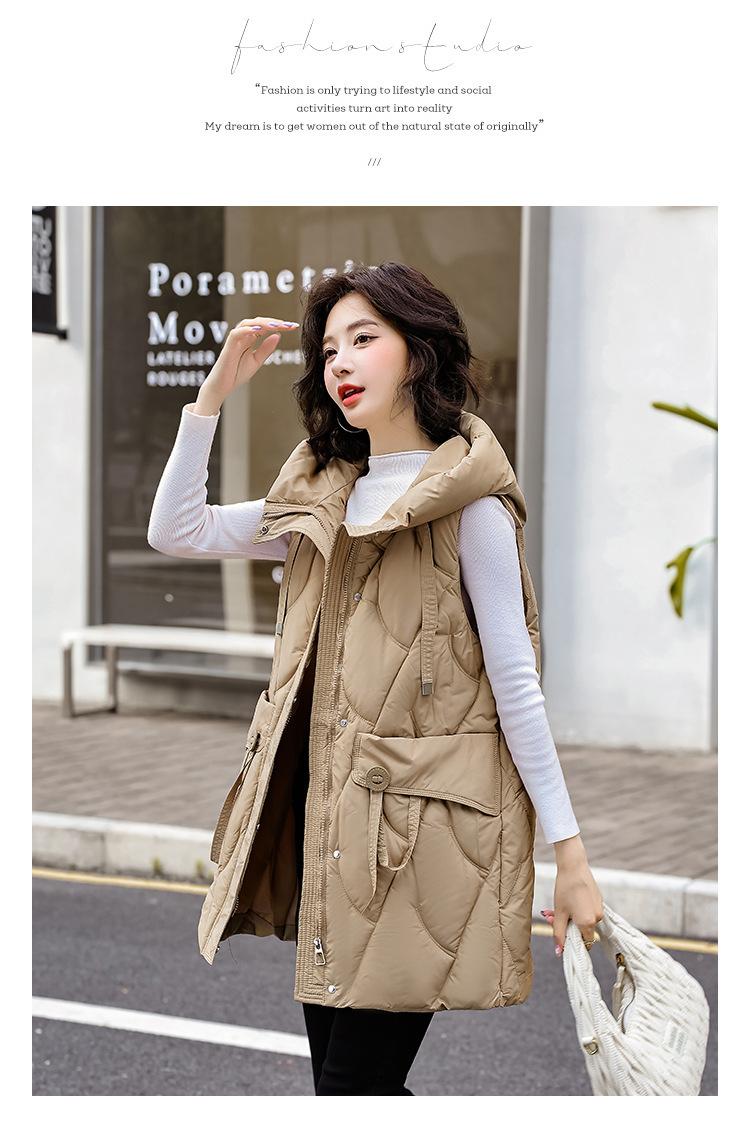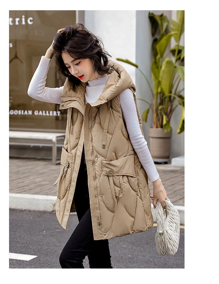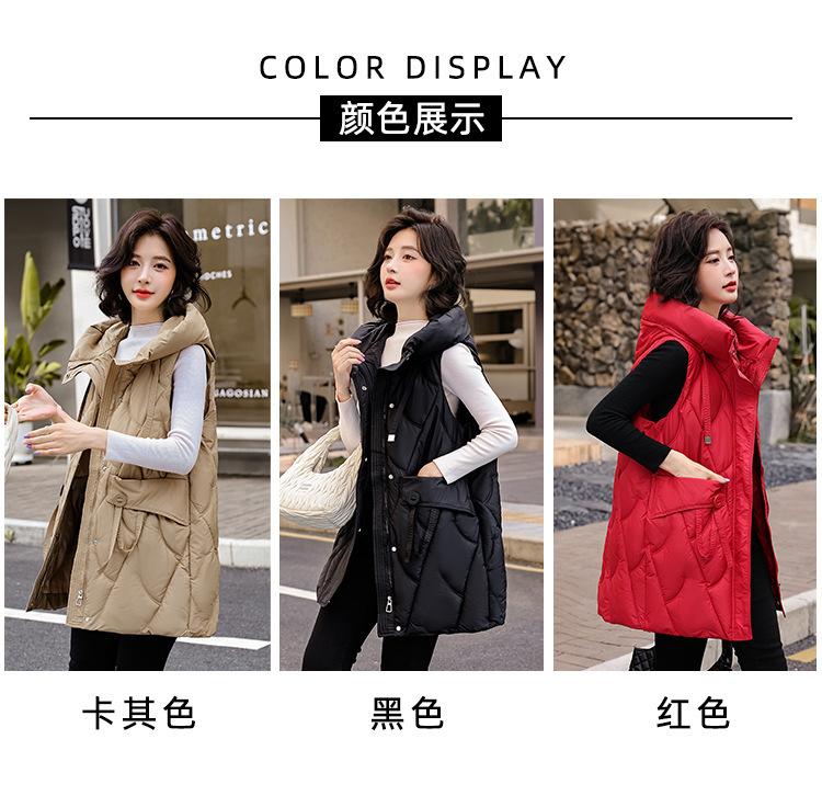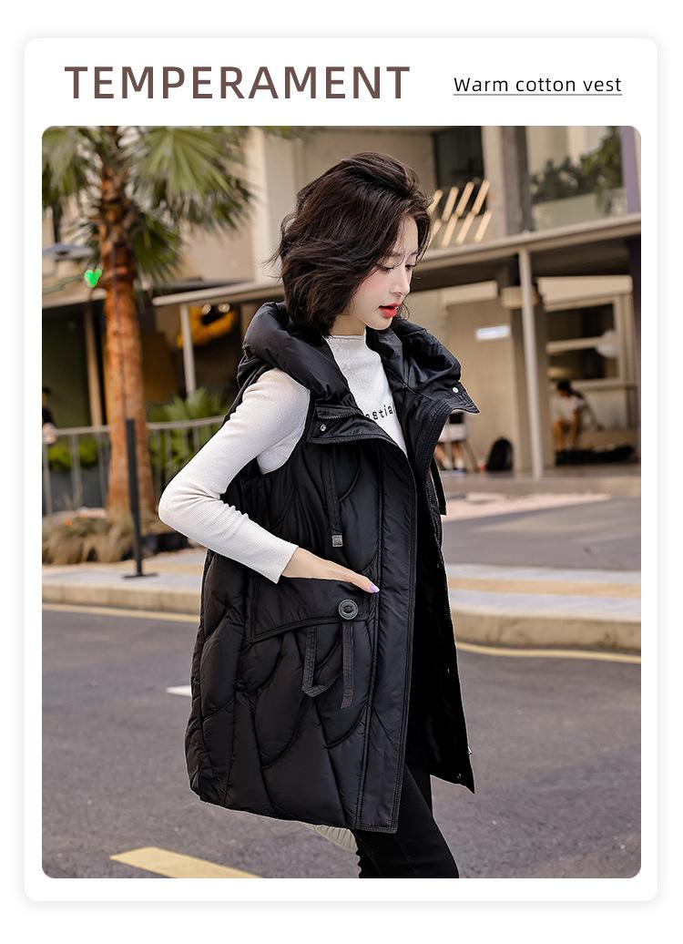 Chaleco de algodón plumífero de longitud media para mujer, otoño e invierno, nuevo estilo coreano suelto con capucha, grueso, color sólido, chaleco de moda