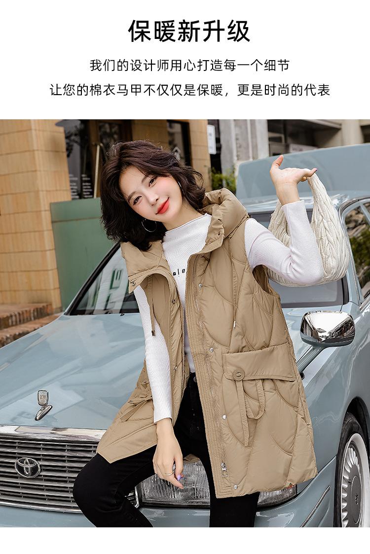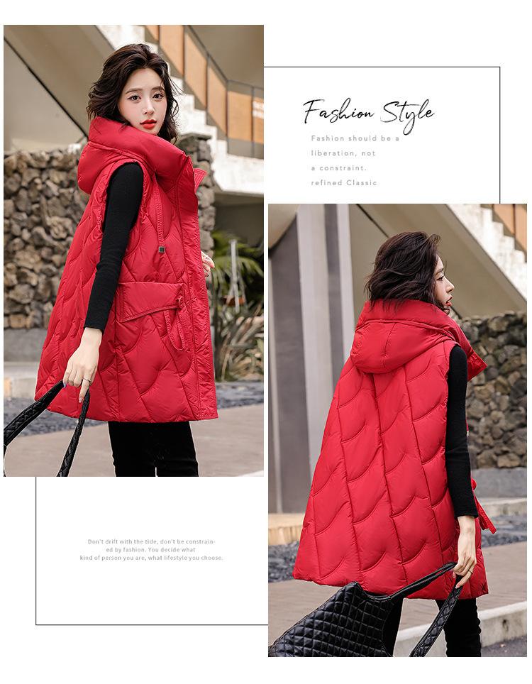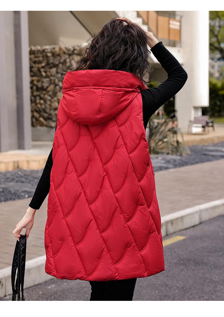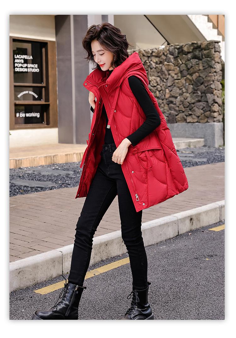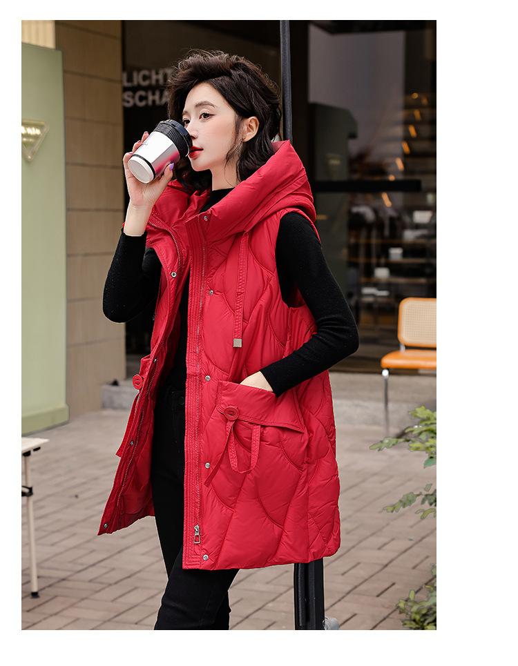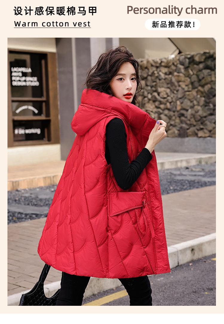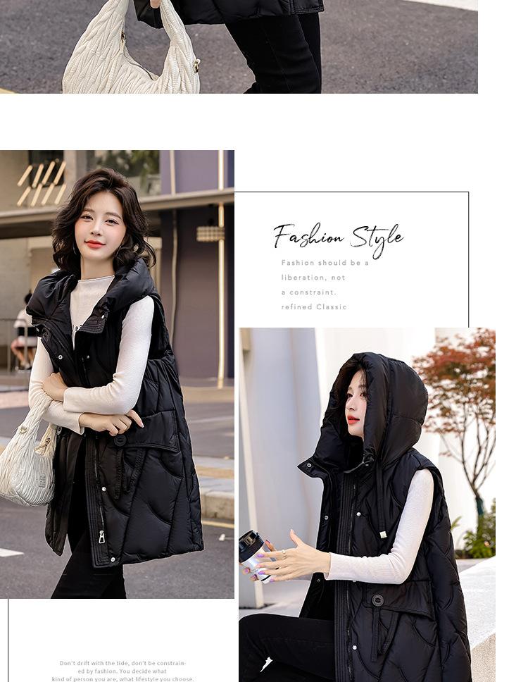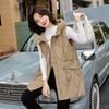 Chaleco de algodón plumífero de longitud media para mujer, otoño e invierno, nuevo estilo coreano suelto con capucha, grueso, color sólido, chaleco de moda