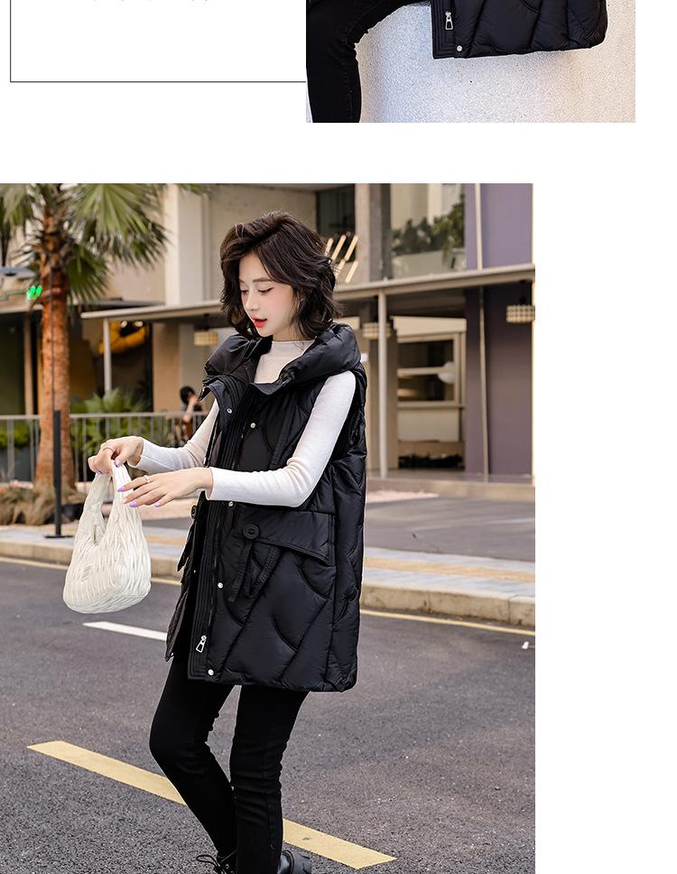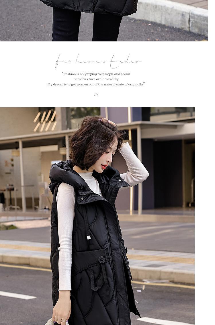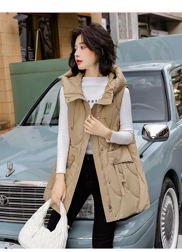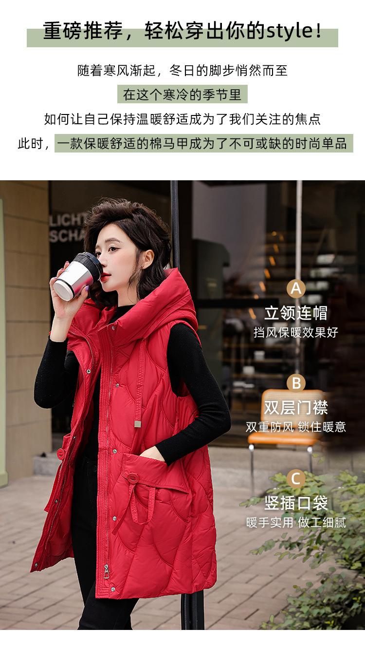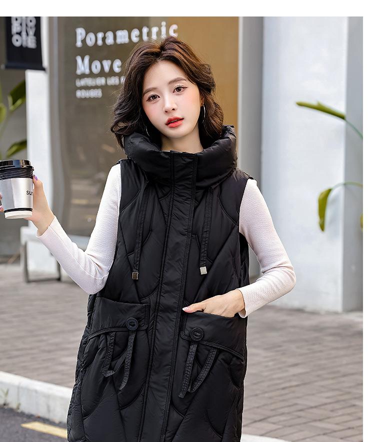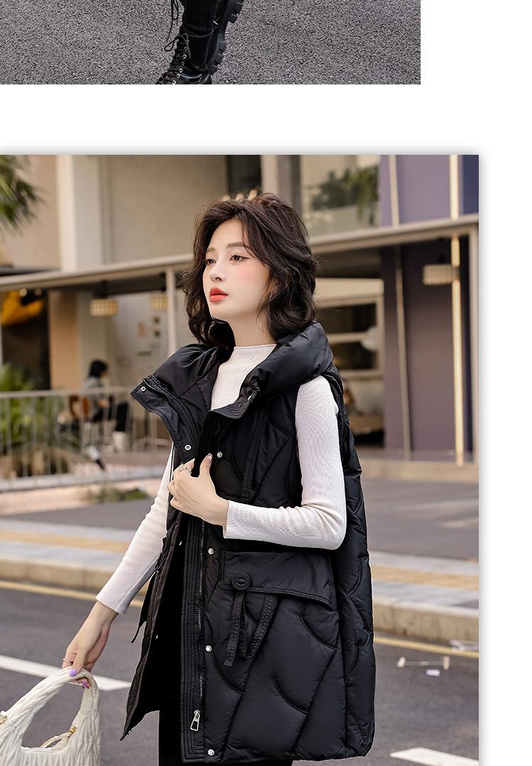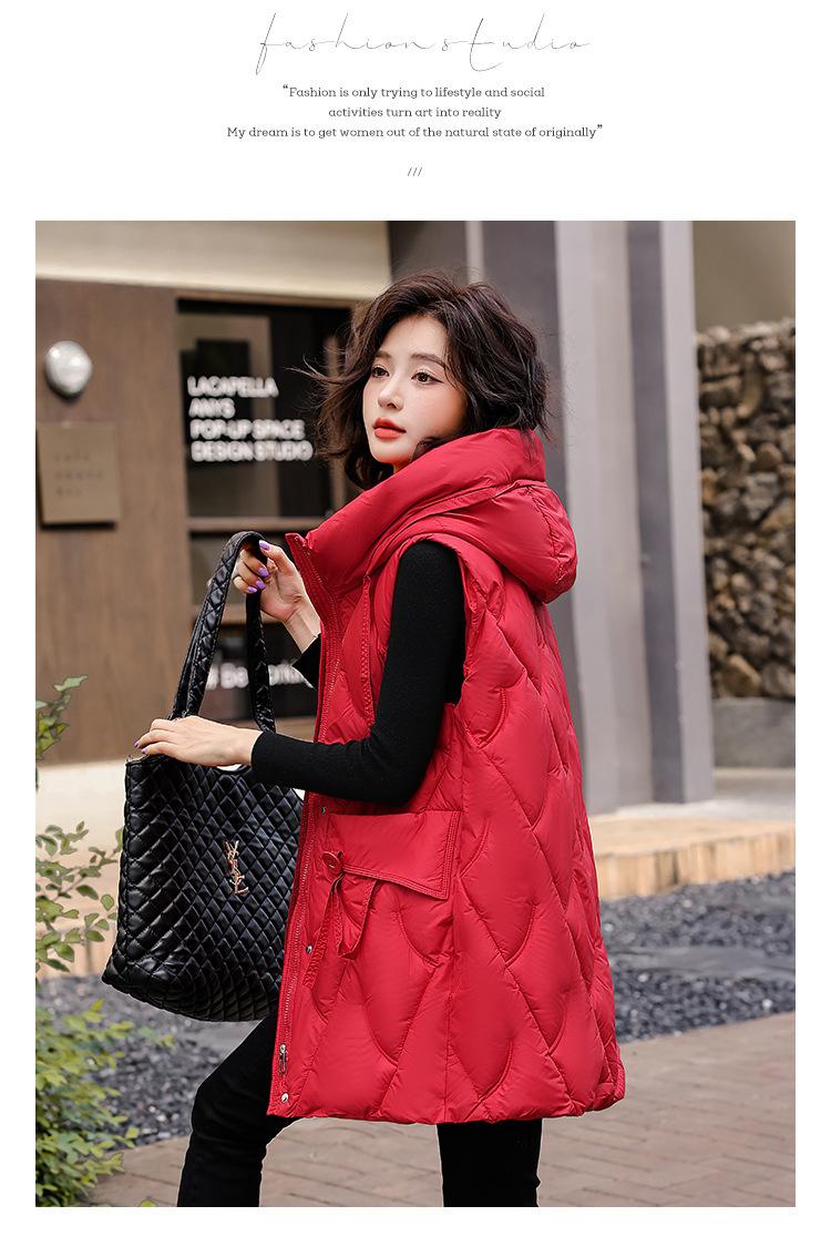 Chaleco de algodón plumífero de longitud media para mujer, otoño e invierno, nuevo estilo coreano suelto con capucha, grueso, color sólido, chaleco de moda