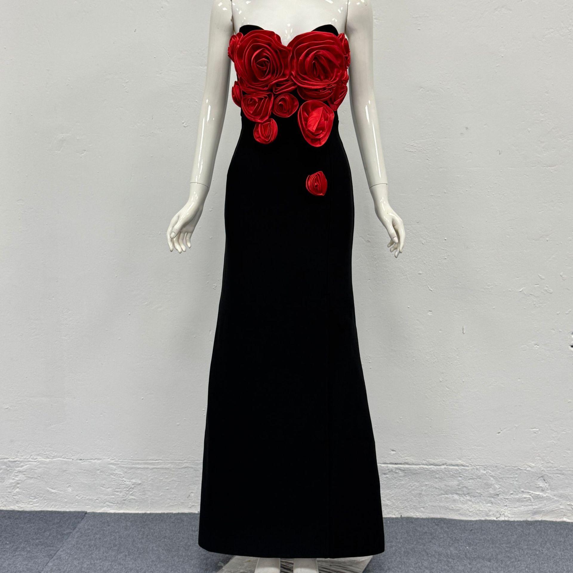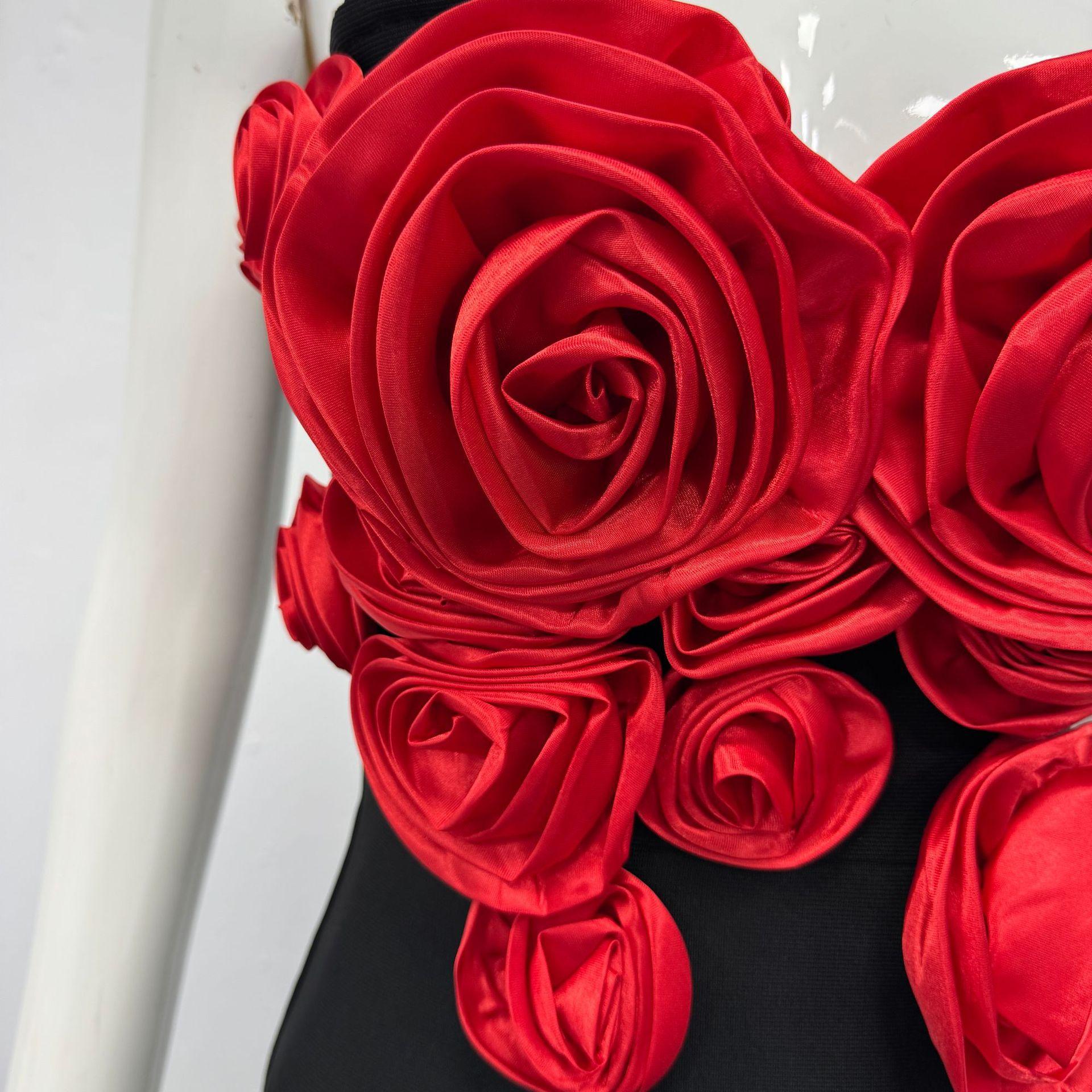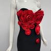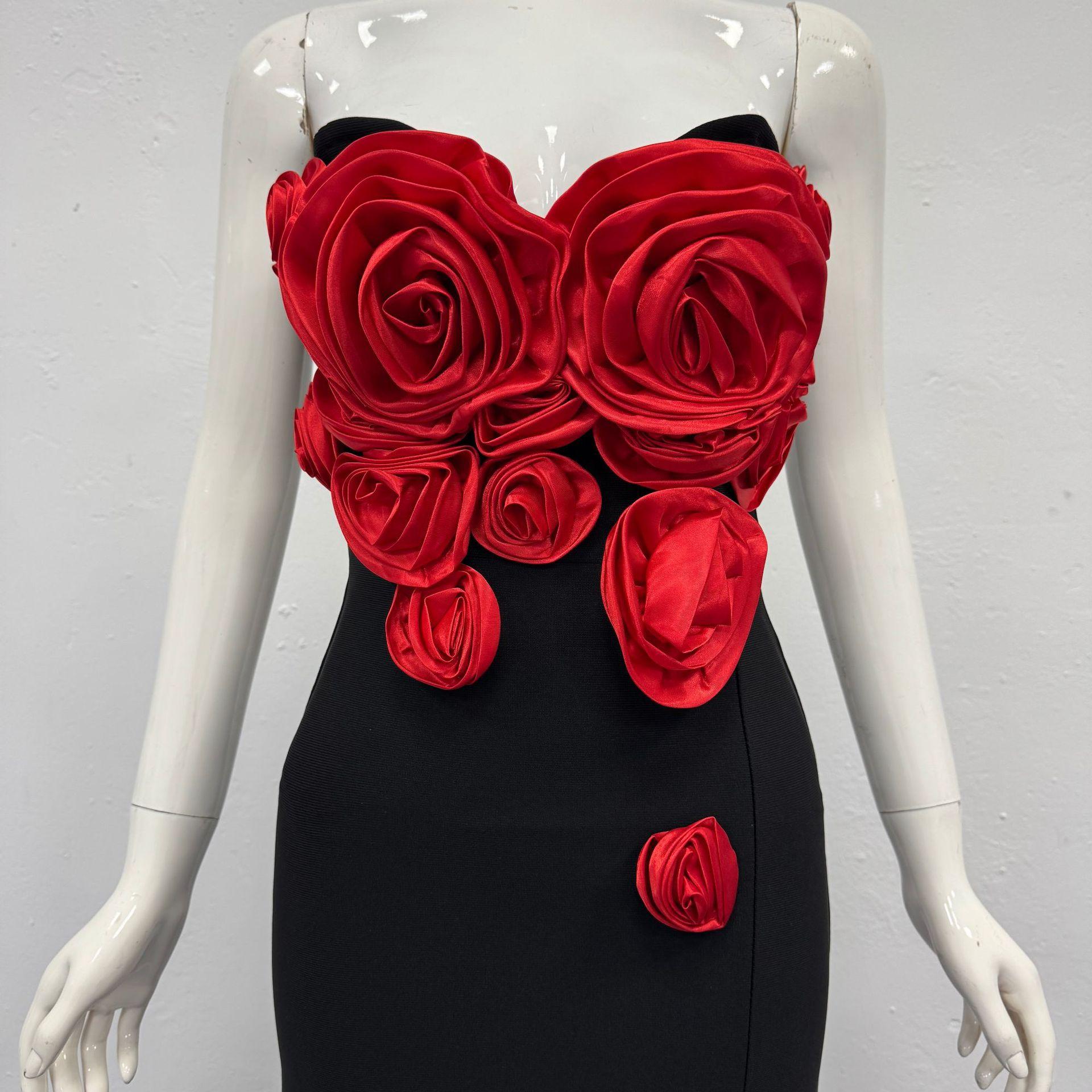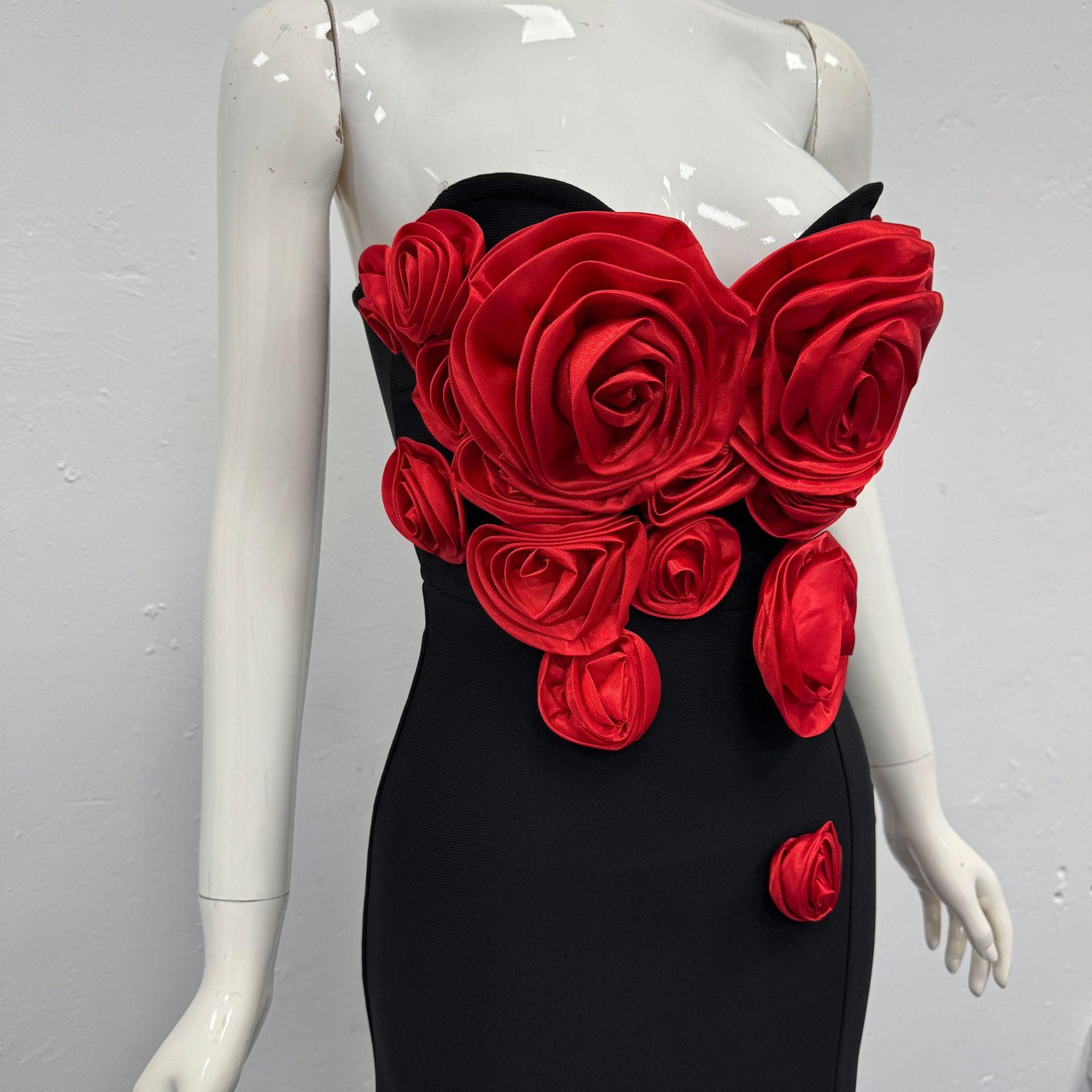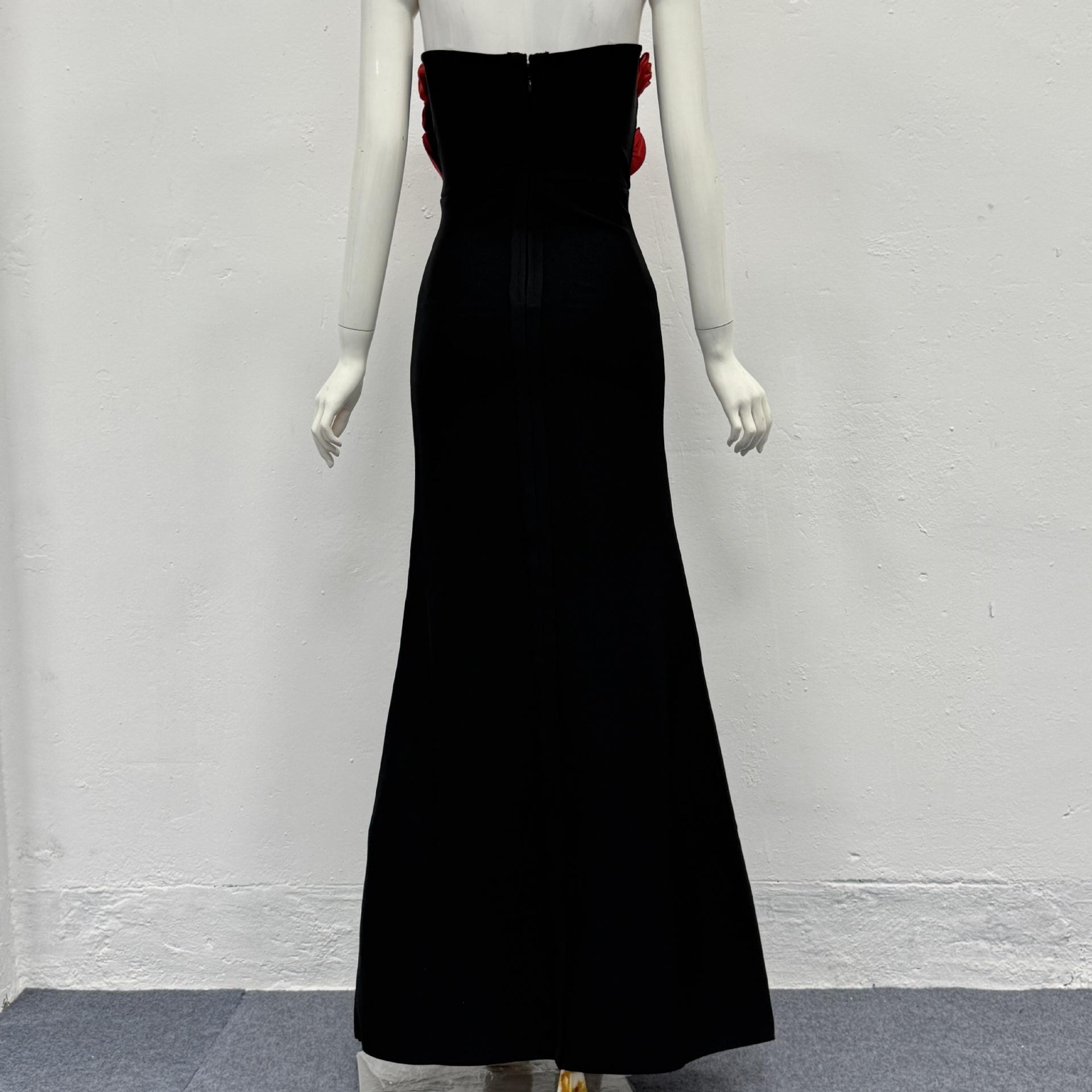 Moda Europea y Americana Nueva para Mujer Decoración de Flores Sexy Strapless Estilo Socialité de Alta Gama Vestido Vendaje Ajustado Vestido de Noche