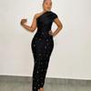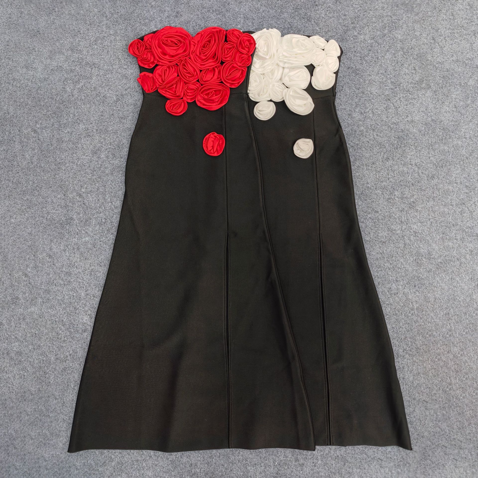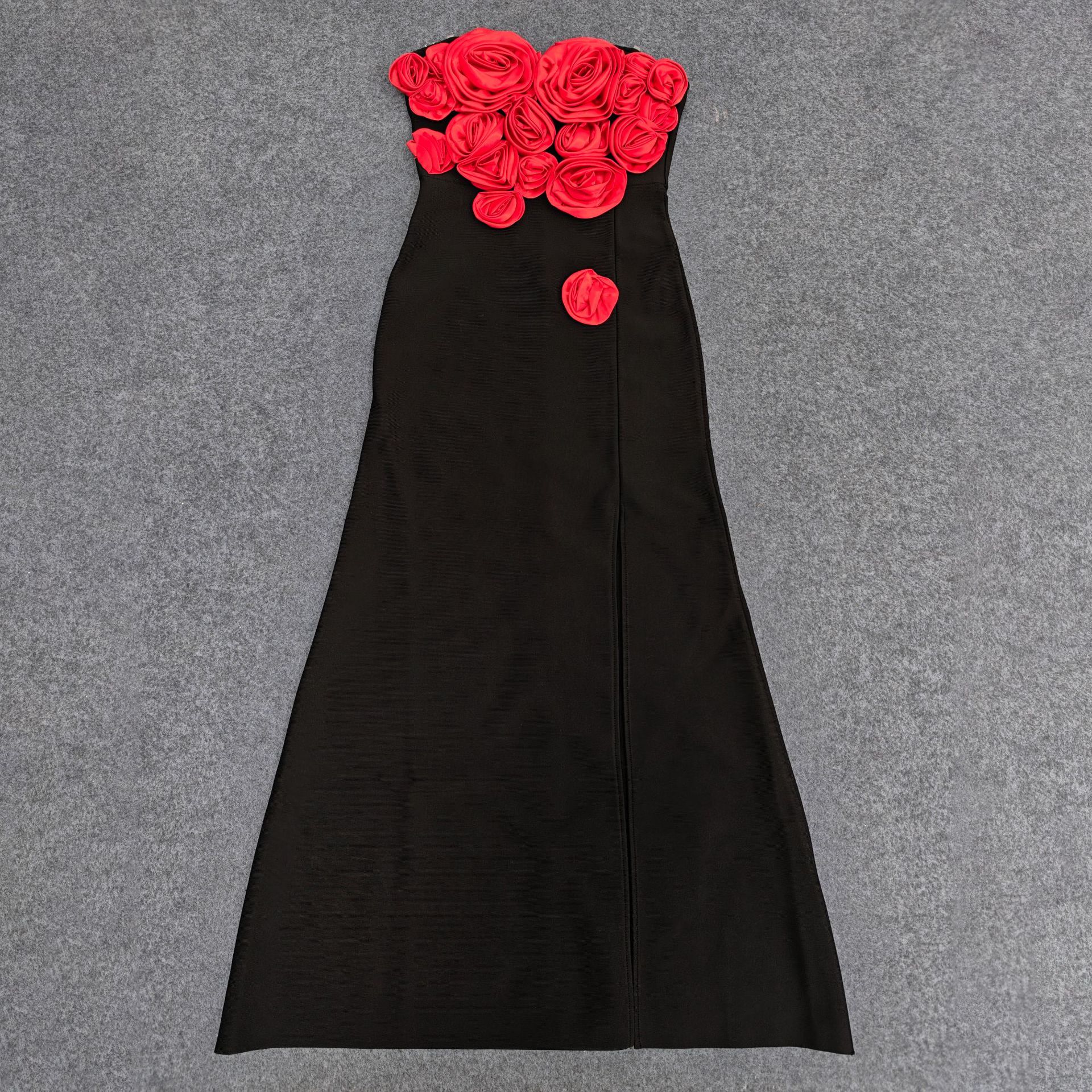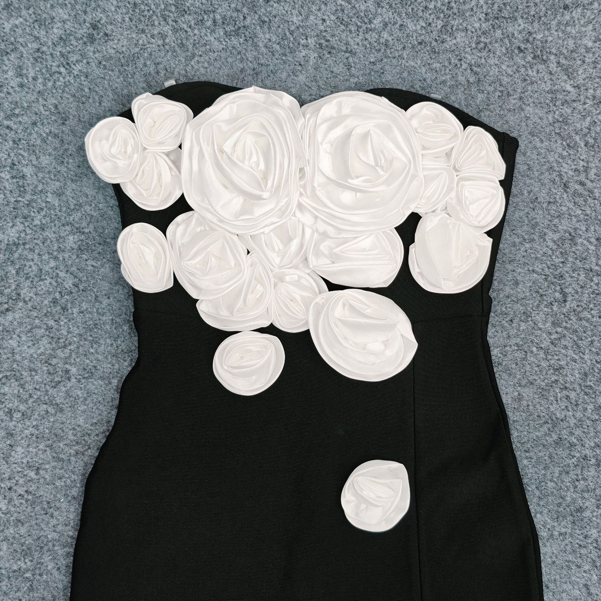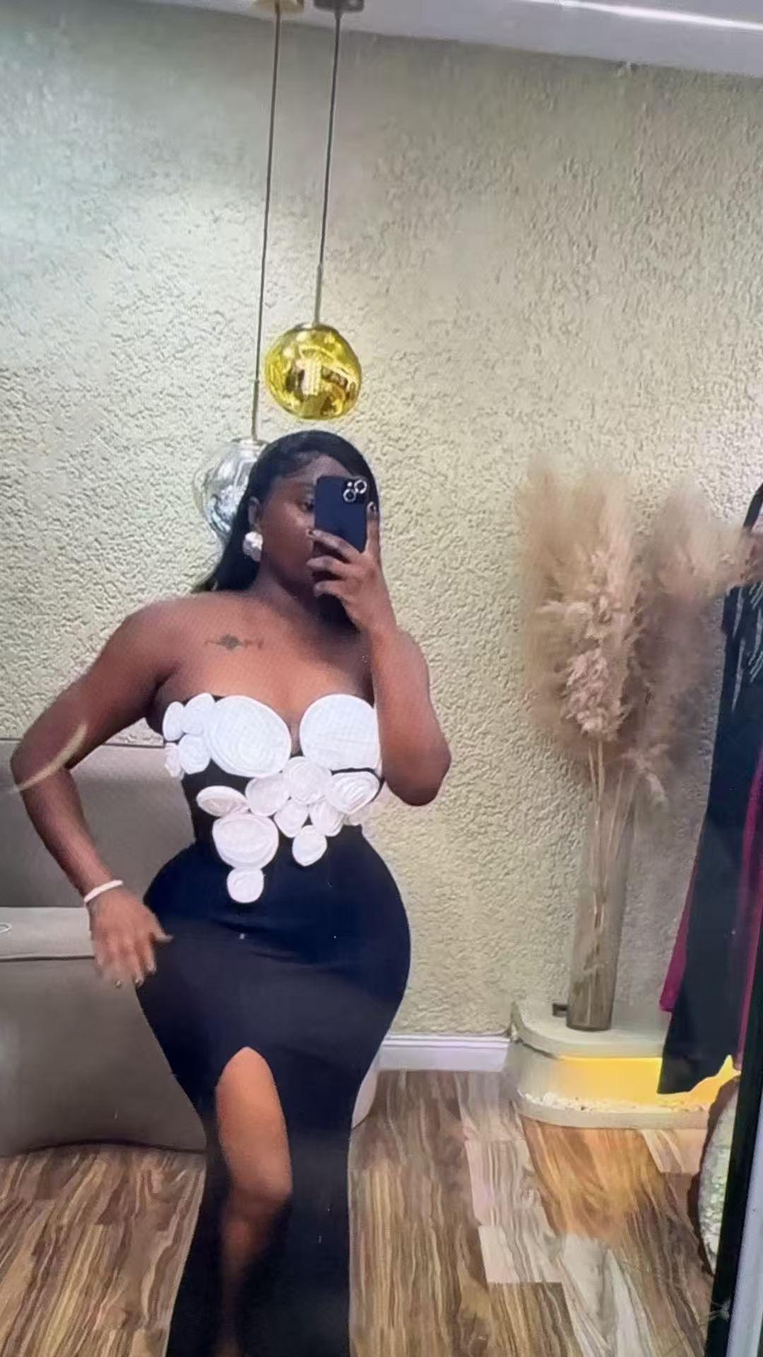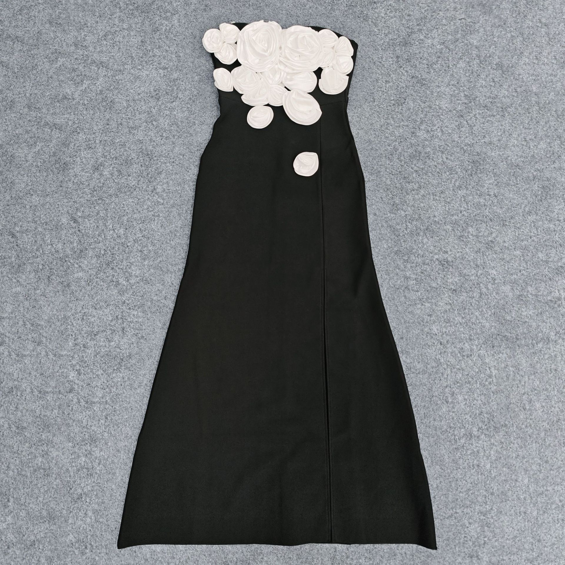 Moda Europea y Americana Nueva para Mujer Decoración de Flores Sexy Strapless Estilo Socialité de Alta Gama Vestido Vendaje Ajustado Vestido de Noche