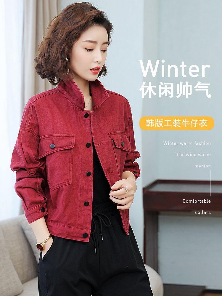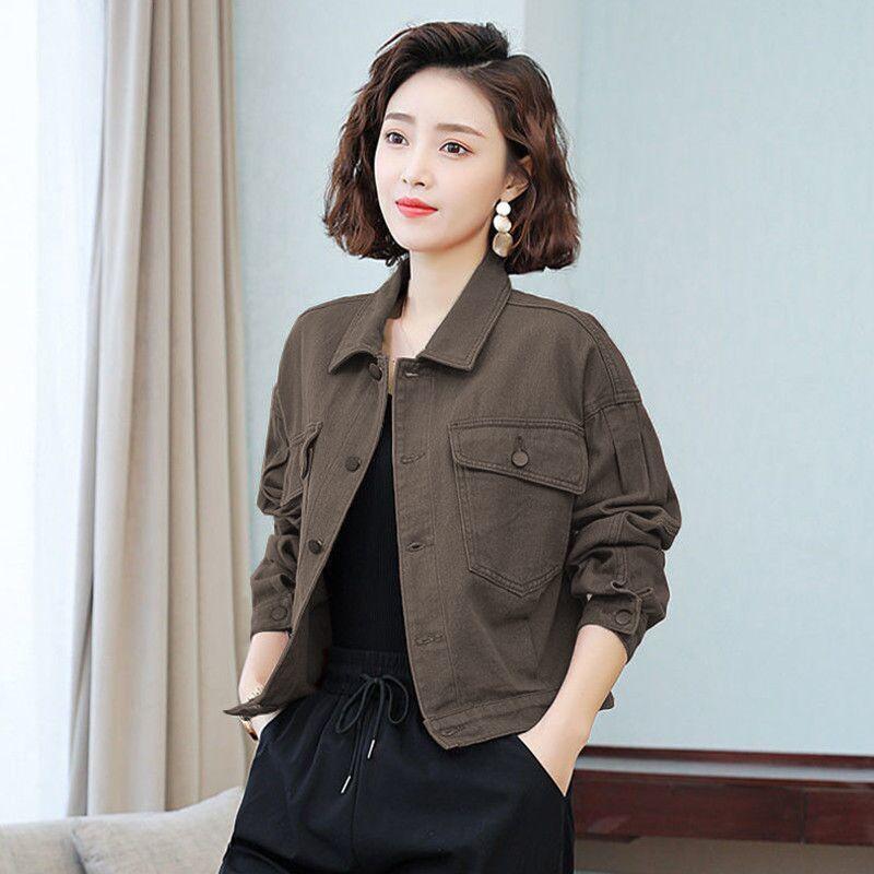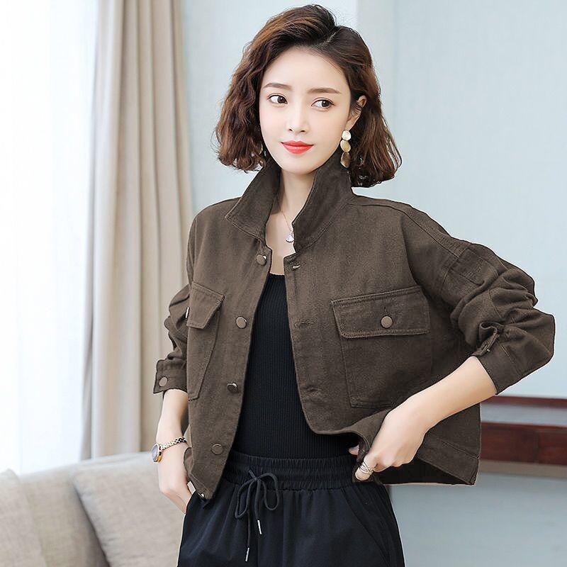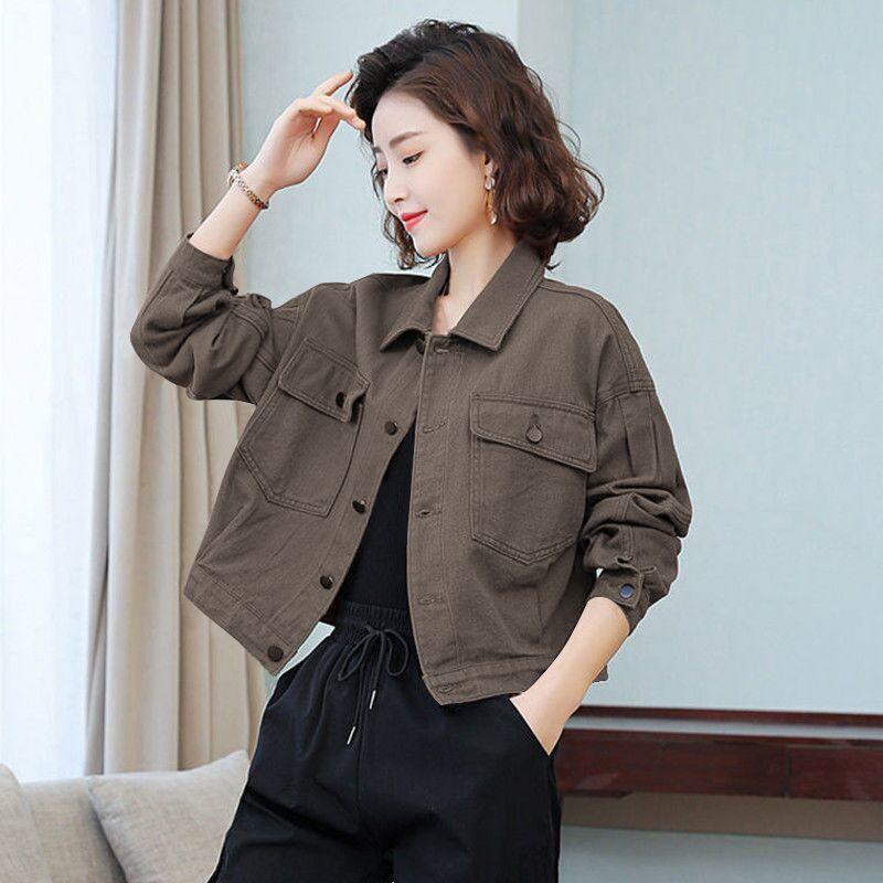 Chaqueta Corta de Mezclilla de Color Sólido Estilo Coreano para Mujer Otoño Primavera Nuevo 2025 Chaqueta de Trabajo Top Adelgazante Holgado Versátil
