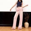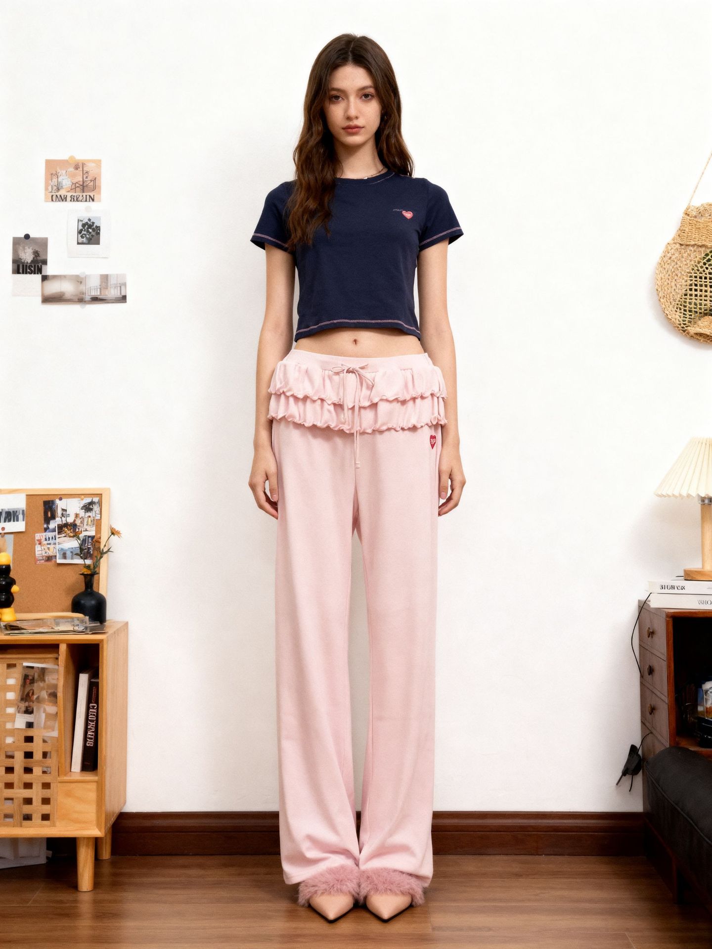 Pantalones deportivos casuales europeos y americanos para mujer estilo niña de pierna recta y ancha, con volantes laterales y parches, adelgazantes, para fitness, pantalones largos