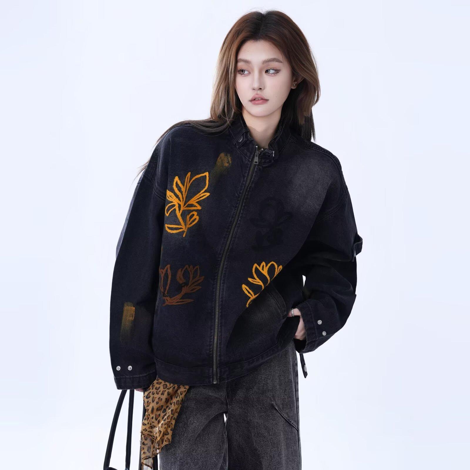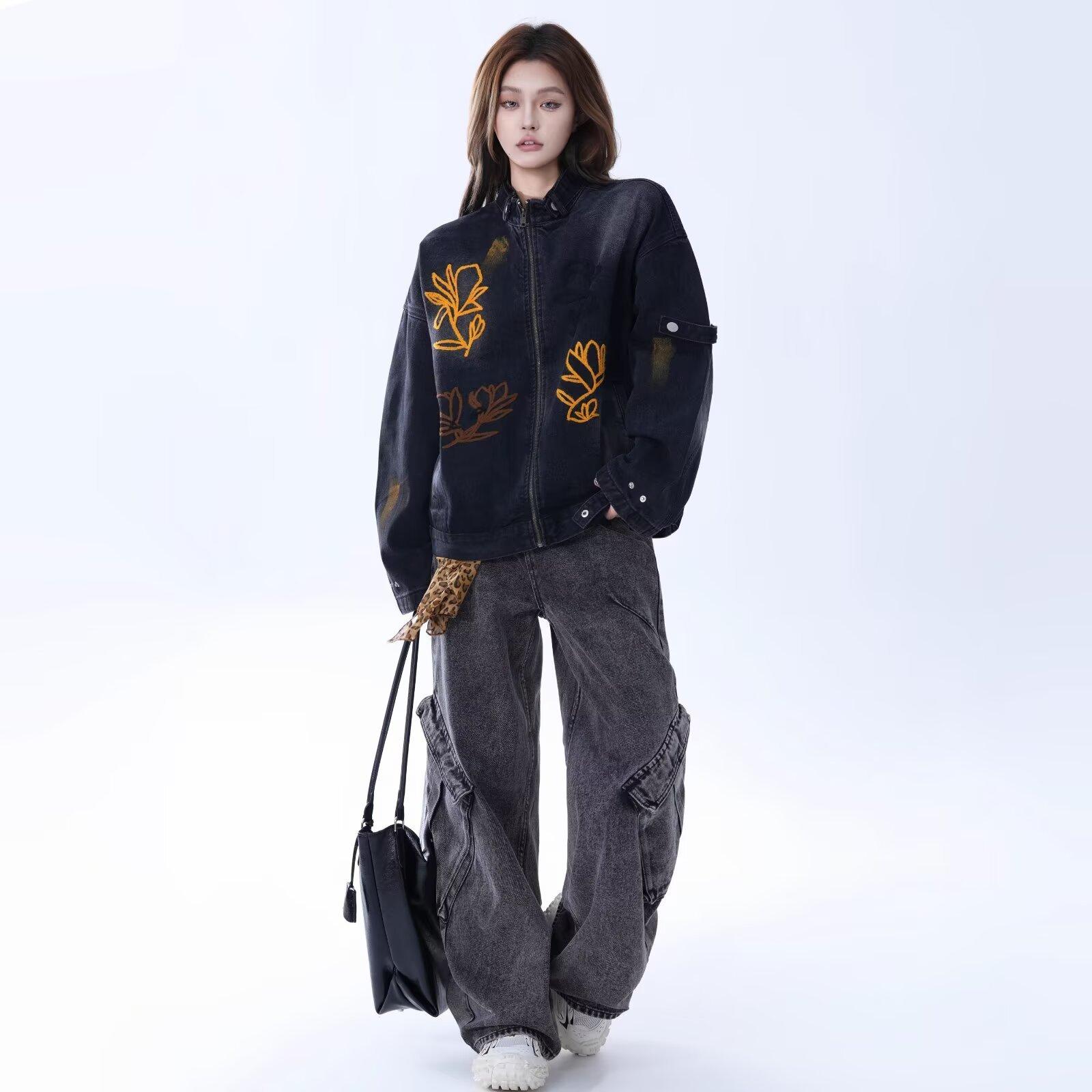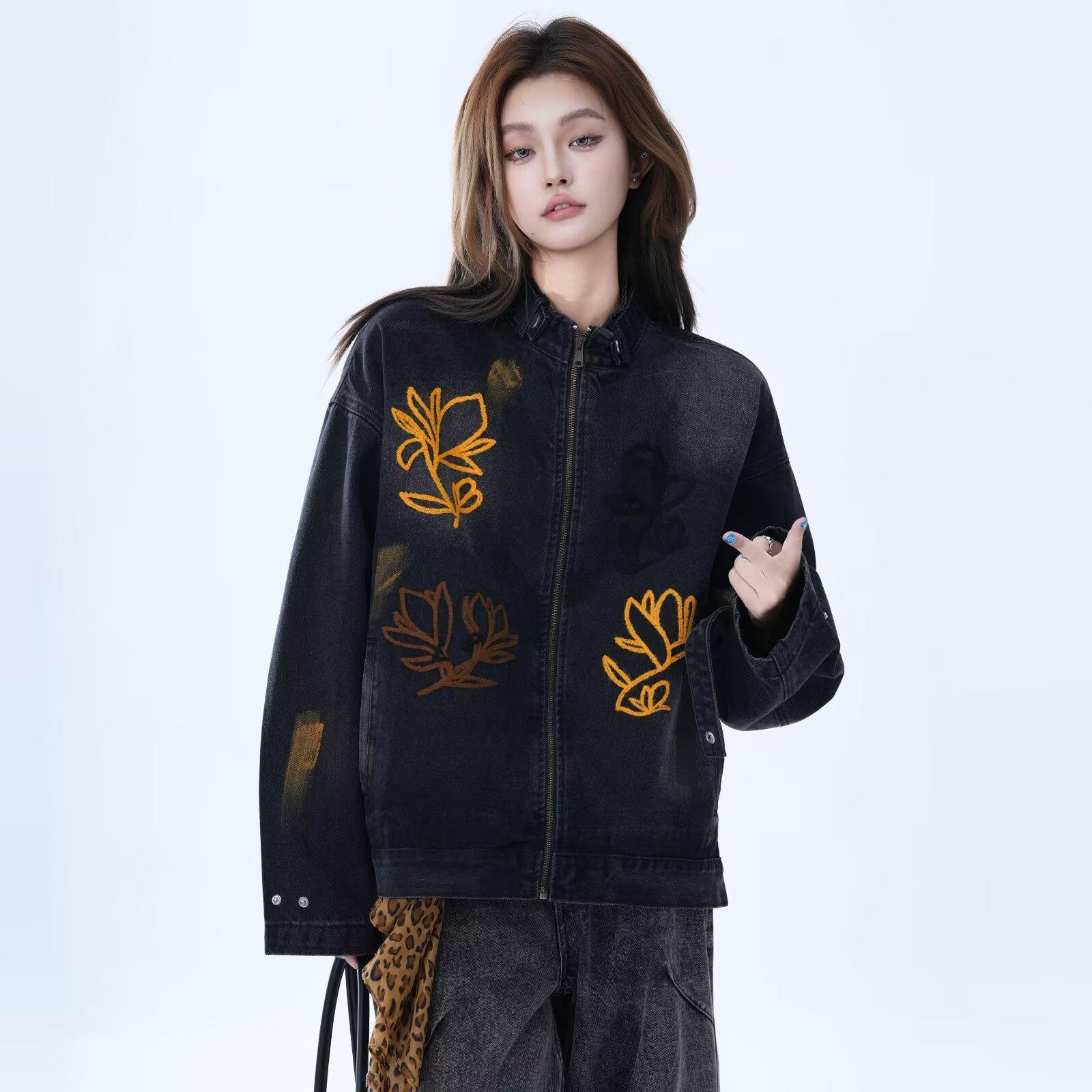 Estilo Primavera y Otoño 2025 Otoño Americano Retro Nuevo Diseño Nicho Chaqueta Corta para Mujer Chaqueta Bordada Petite