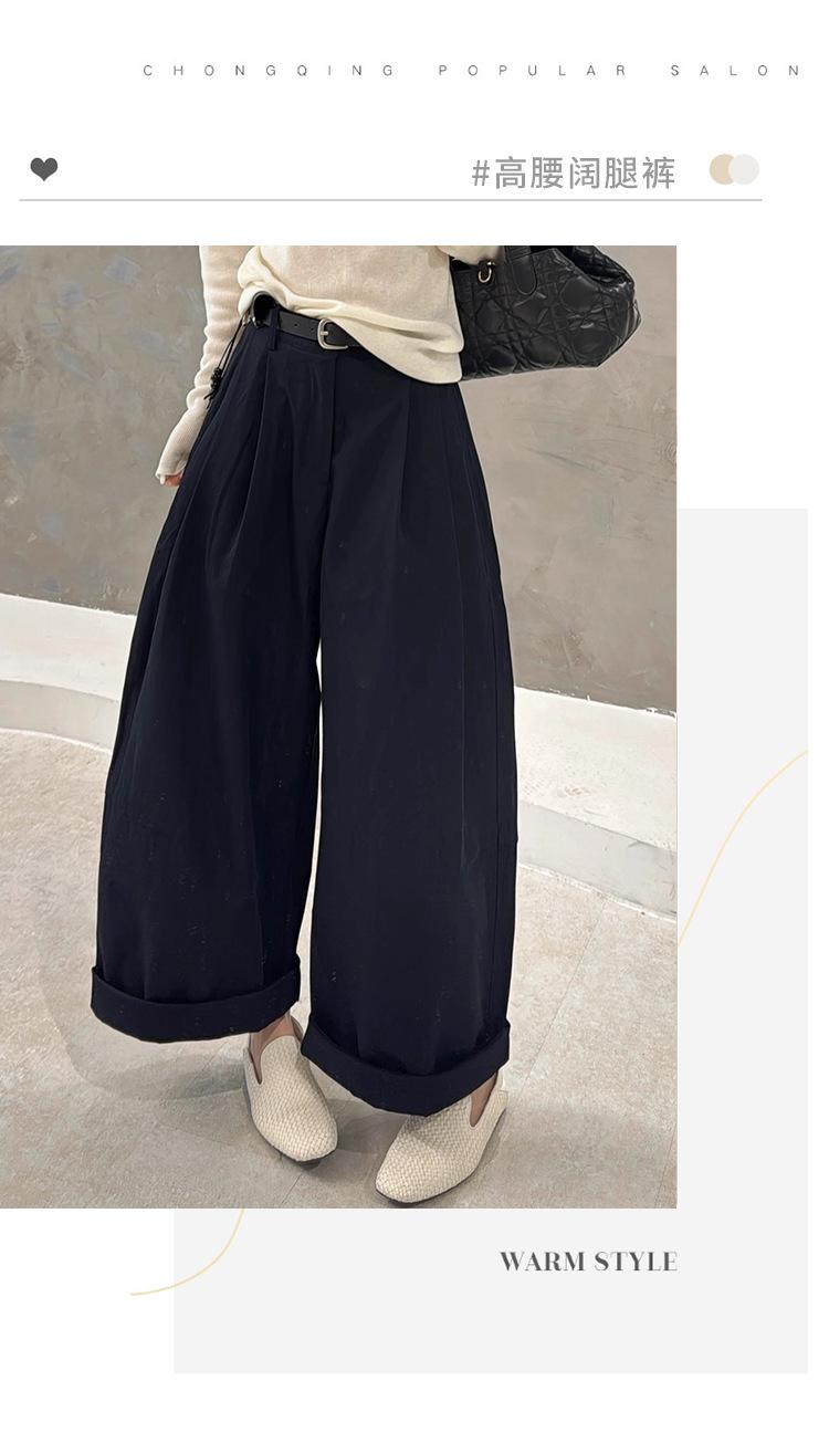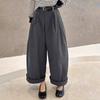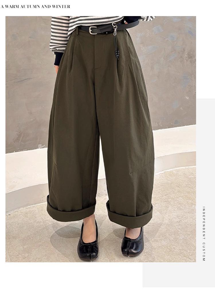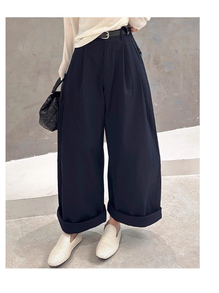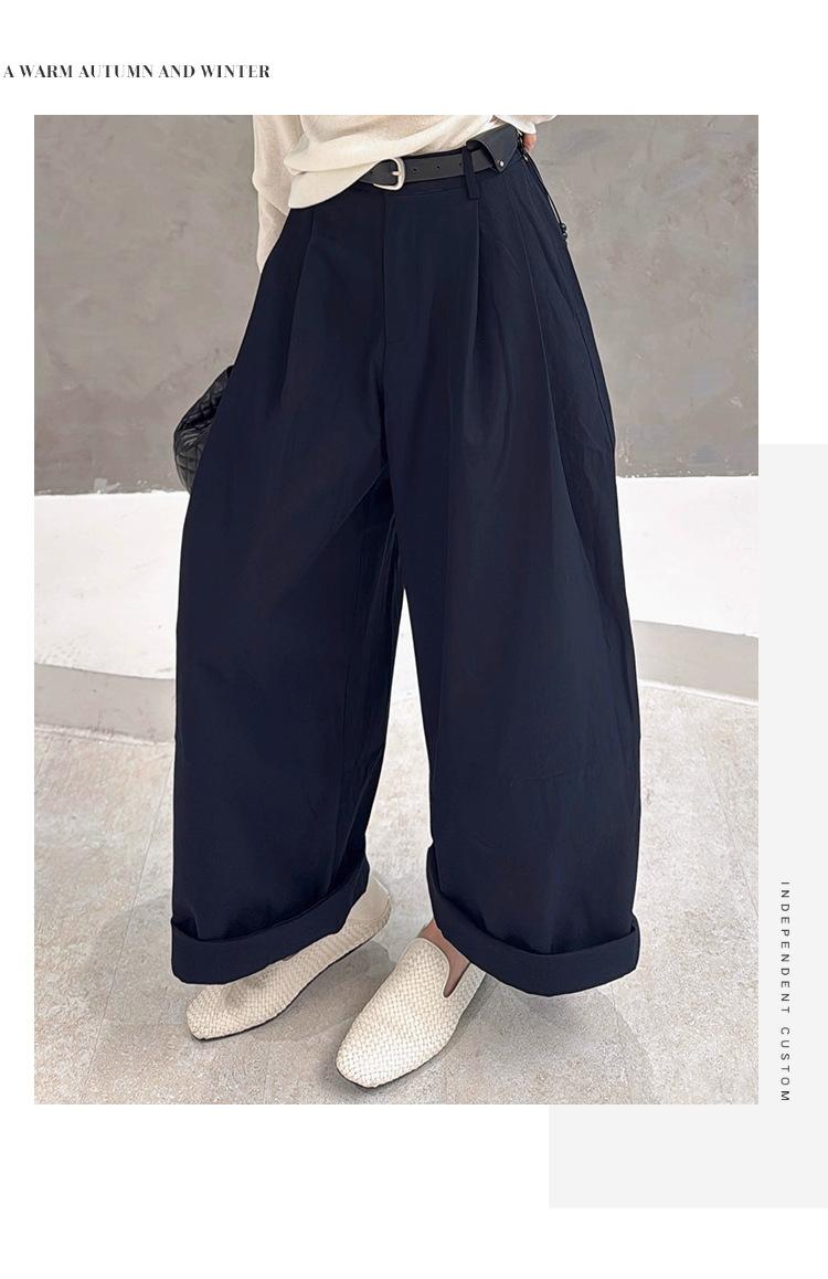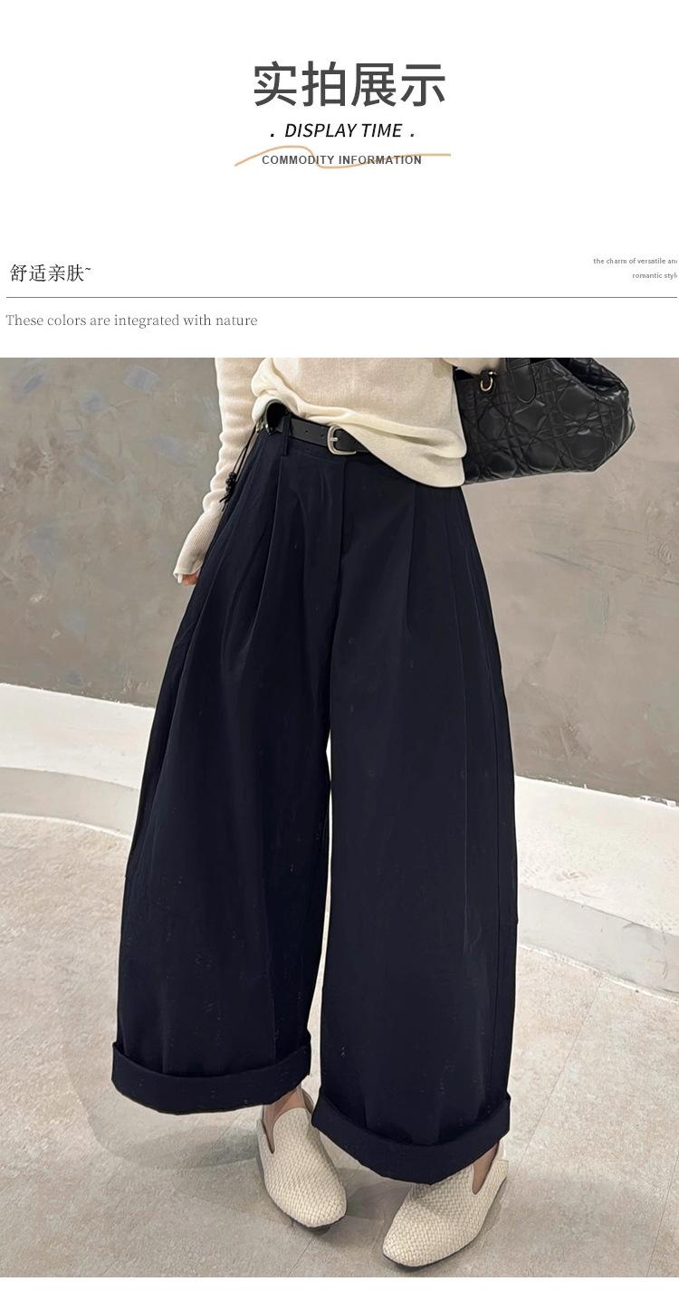 Otoño 2025 nuevo pantalón casual de nueve puntos de pierna ancha para mujer estilo coreano viento perezoso suelto pierna recta que cubre la cadera adelgazante pantalón de nueve puntos