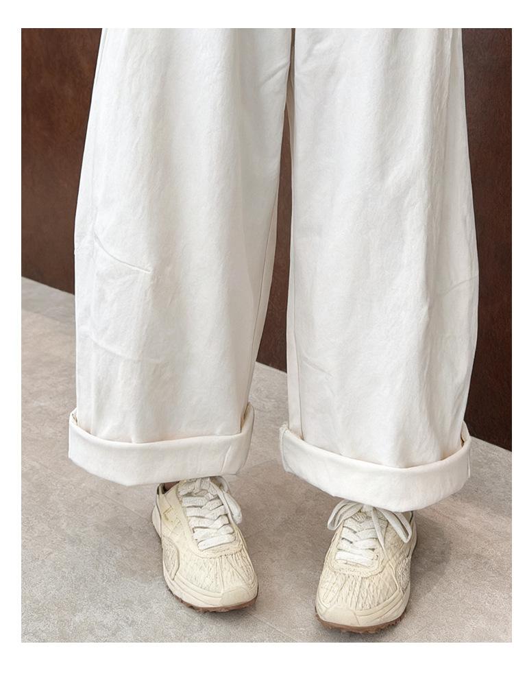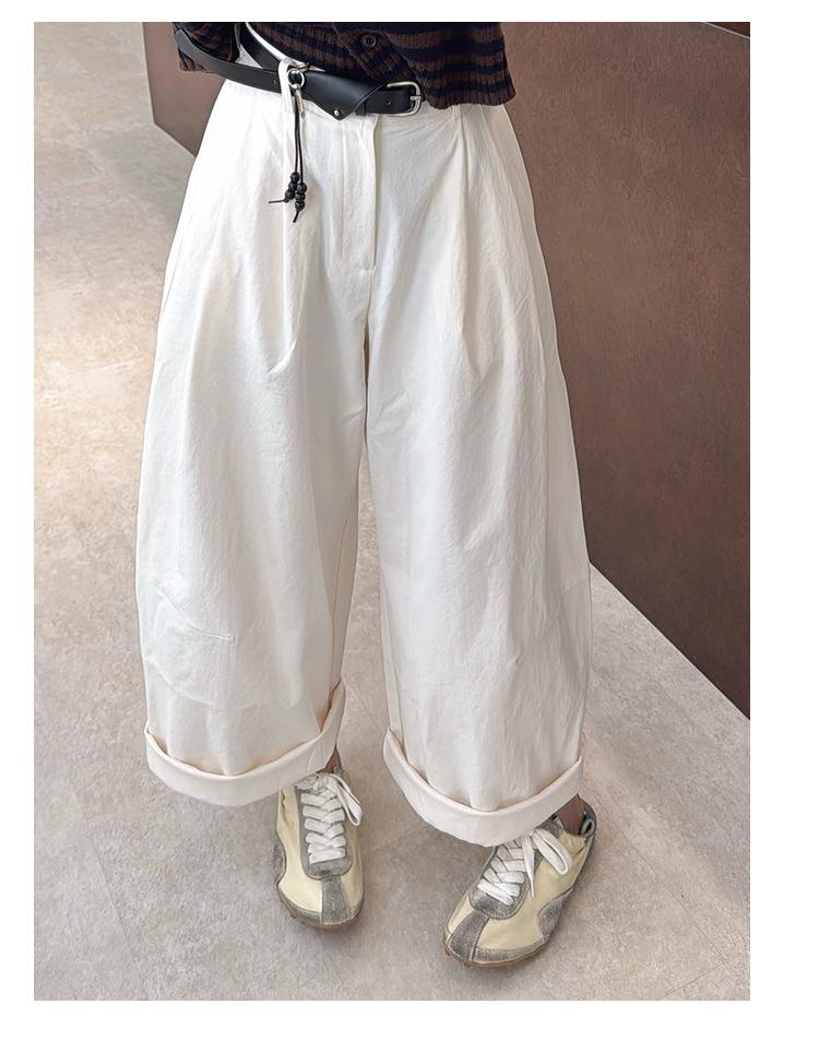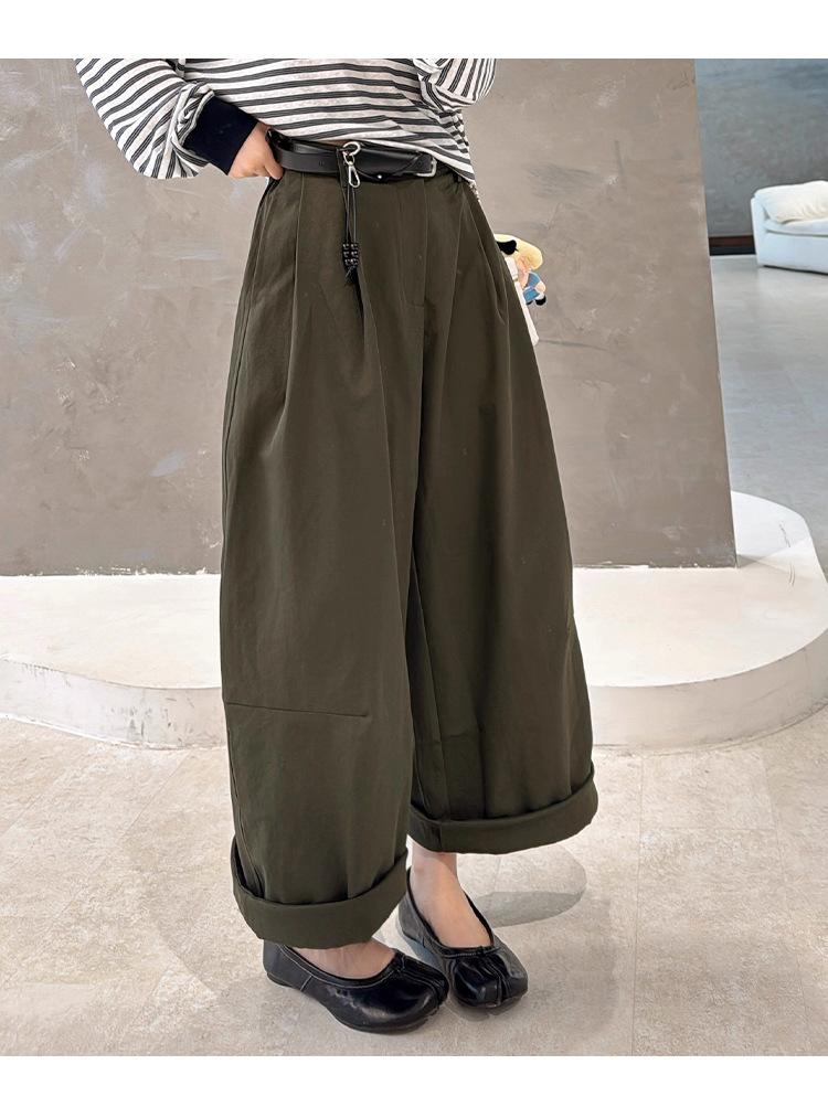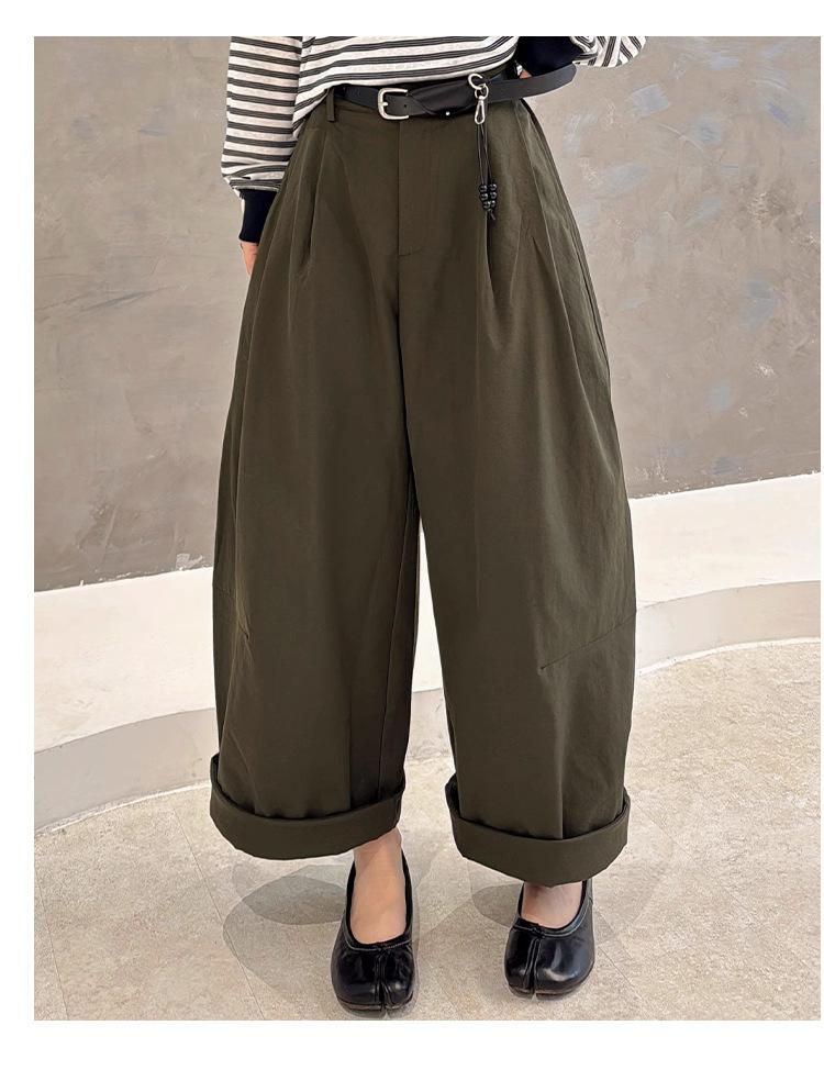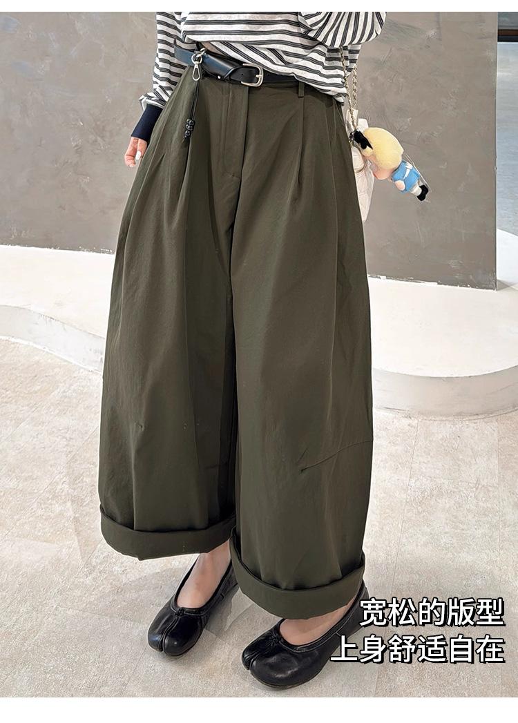 Otoño 2025 nuevo pantalón casual de nueve puntos de pierna ancha para mujer estilo coreano viento perezoso suelto pierna recta que cubre la cadera adelgazante pantalón de nueve puntos