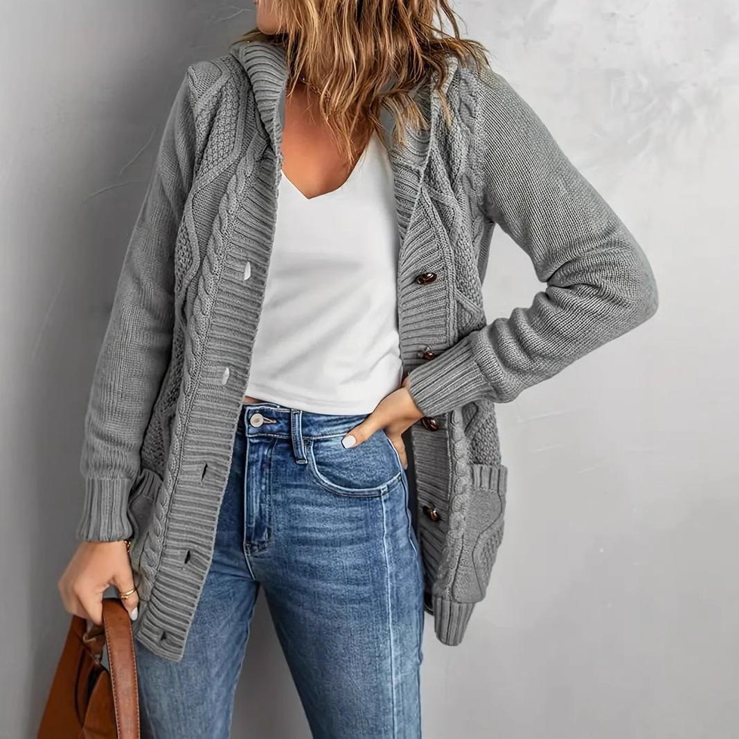 Amazon Fashion Manga Larga Europeo y Americano Transfronterizo Ropa Exterior para Mujer Casual Color Sólido Bolsillo Talla Grande Cárdigan de Punto para Mujer