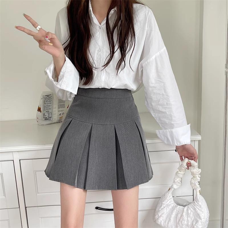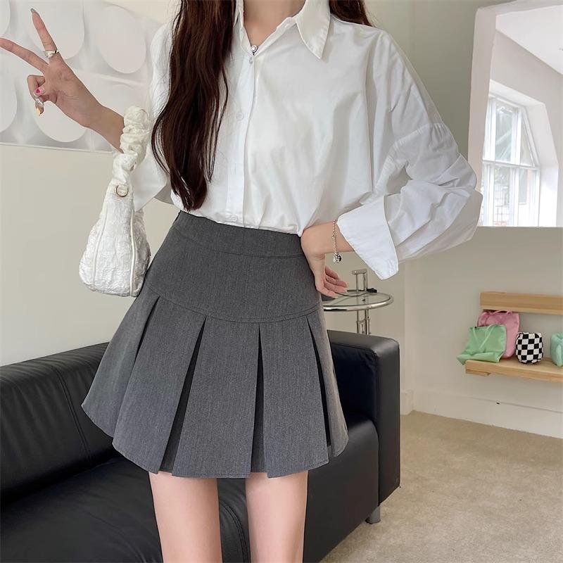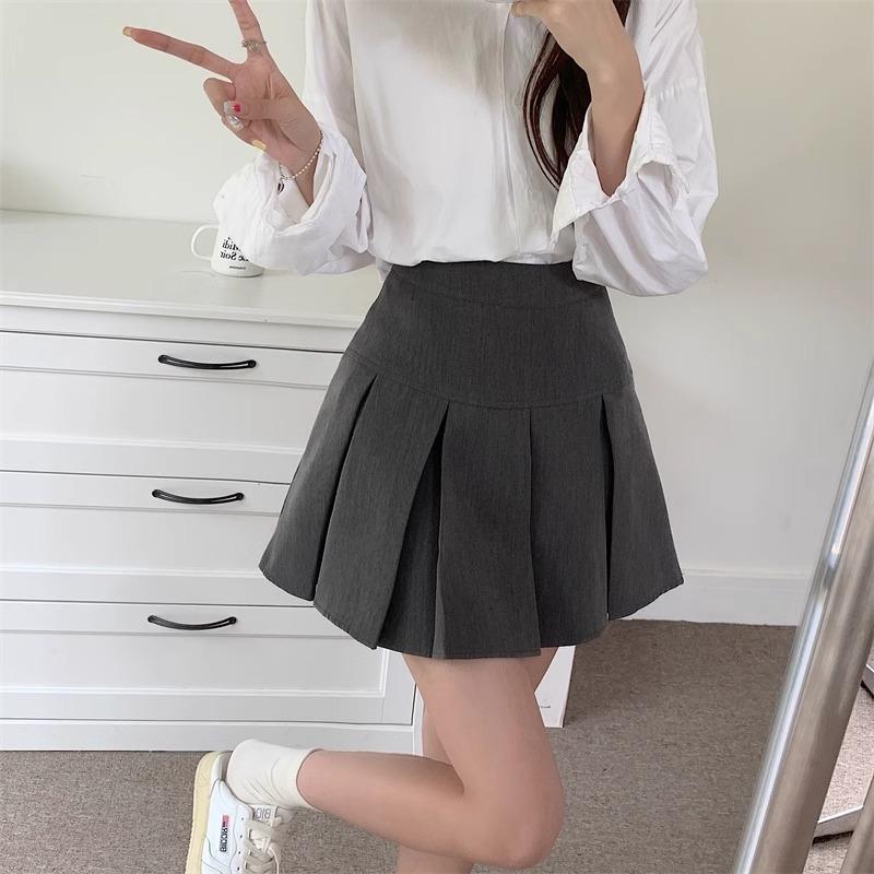 2025 Nueva Moda de Primavera Falda Midi para Mujer Falda Plisada Cintura Alta Adelgazante Falda Paraguas Esponjosa Moda Falda Corta Antiexposición