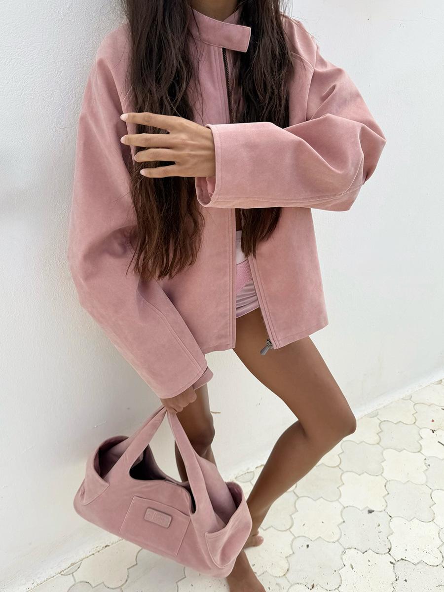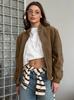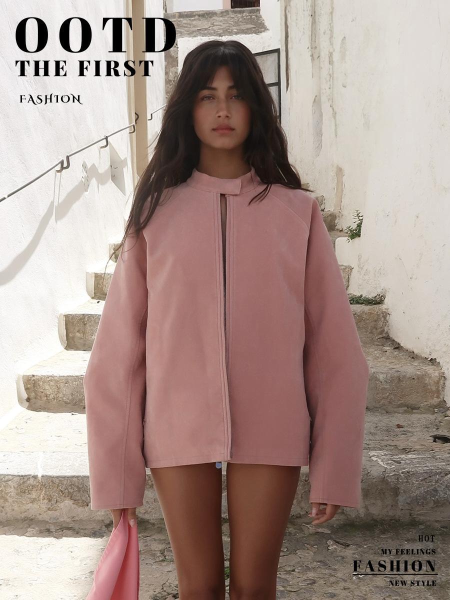 Chaqueta Abrigo de Gamuza Retro Transfronterizo Europeo y Americano 2025 Otoño/Invierno Nuevo Cuello Alto Minimalista Chaqueta Abrigo Mujer