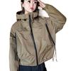 2025 Nueva Primavera Nicho Cortavientos con Capucha Chaqueta Holgada Versátil Impermeable Abrigo Corto Diseño para Mujer Tendencia