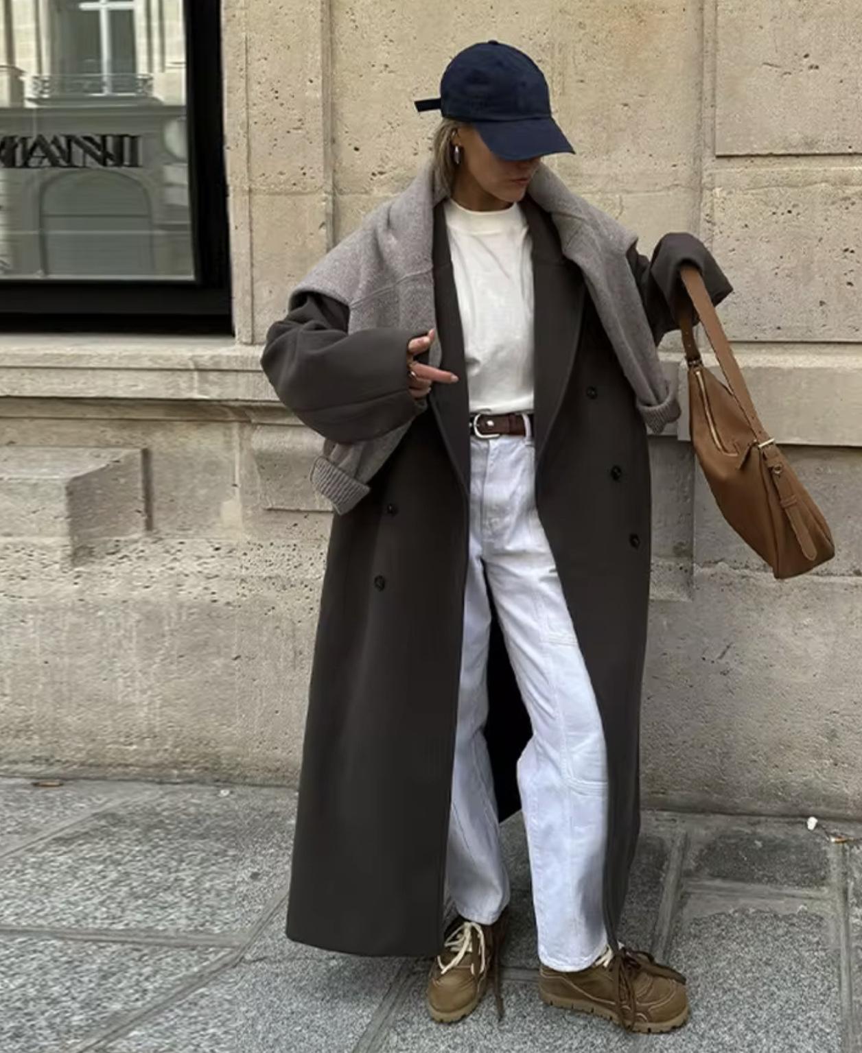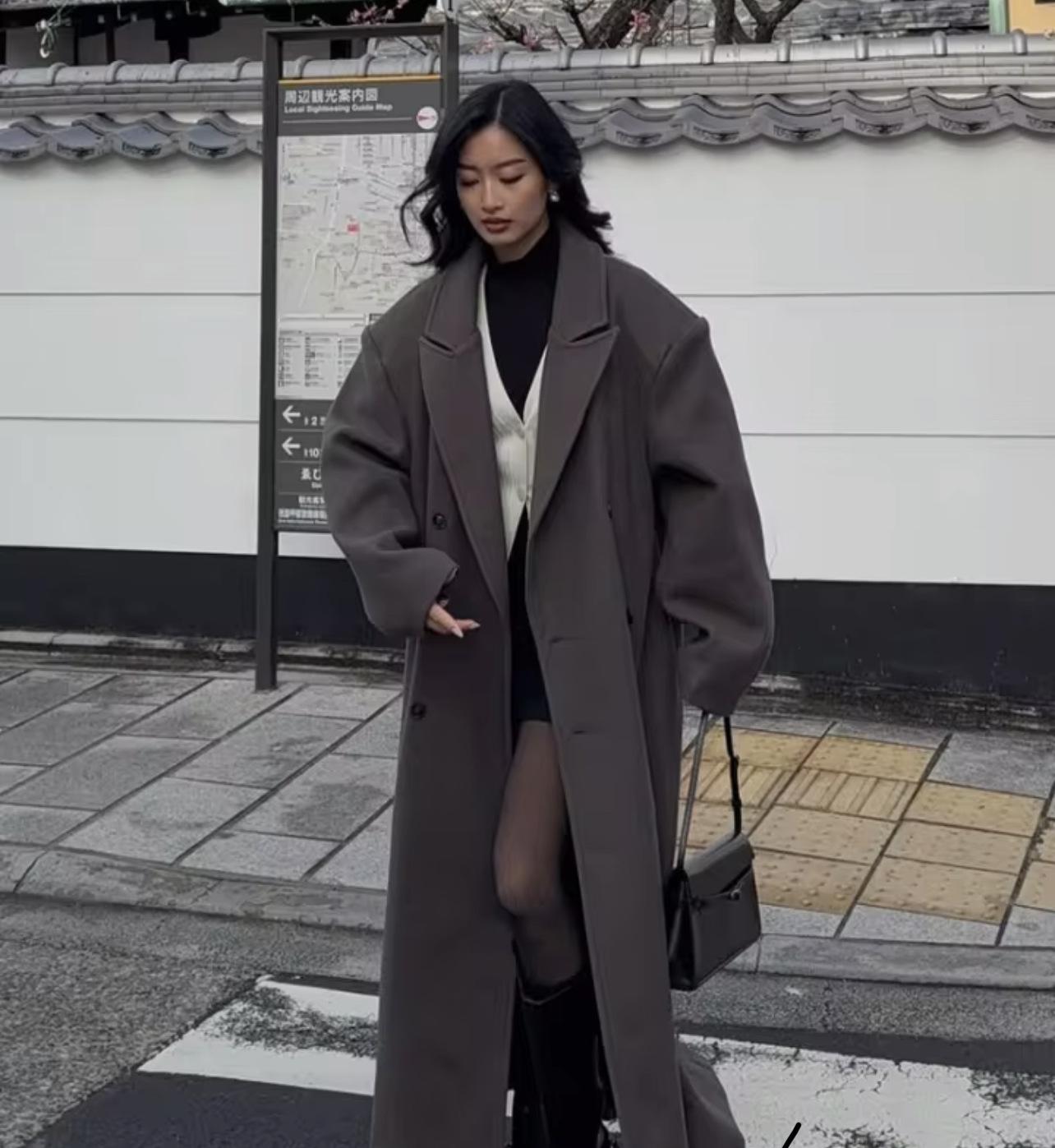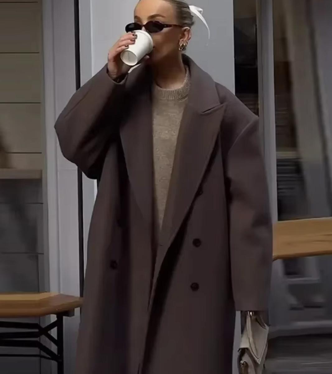 Moda femenina europea y americana transfronteriza AliExpress más vendido elegante casual cuello vuelto abrigo largo suelto de lana