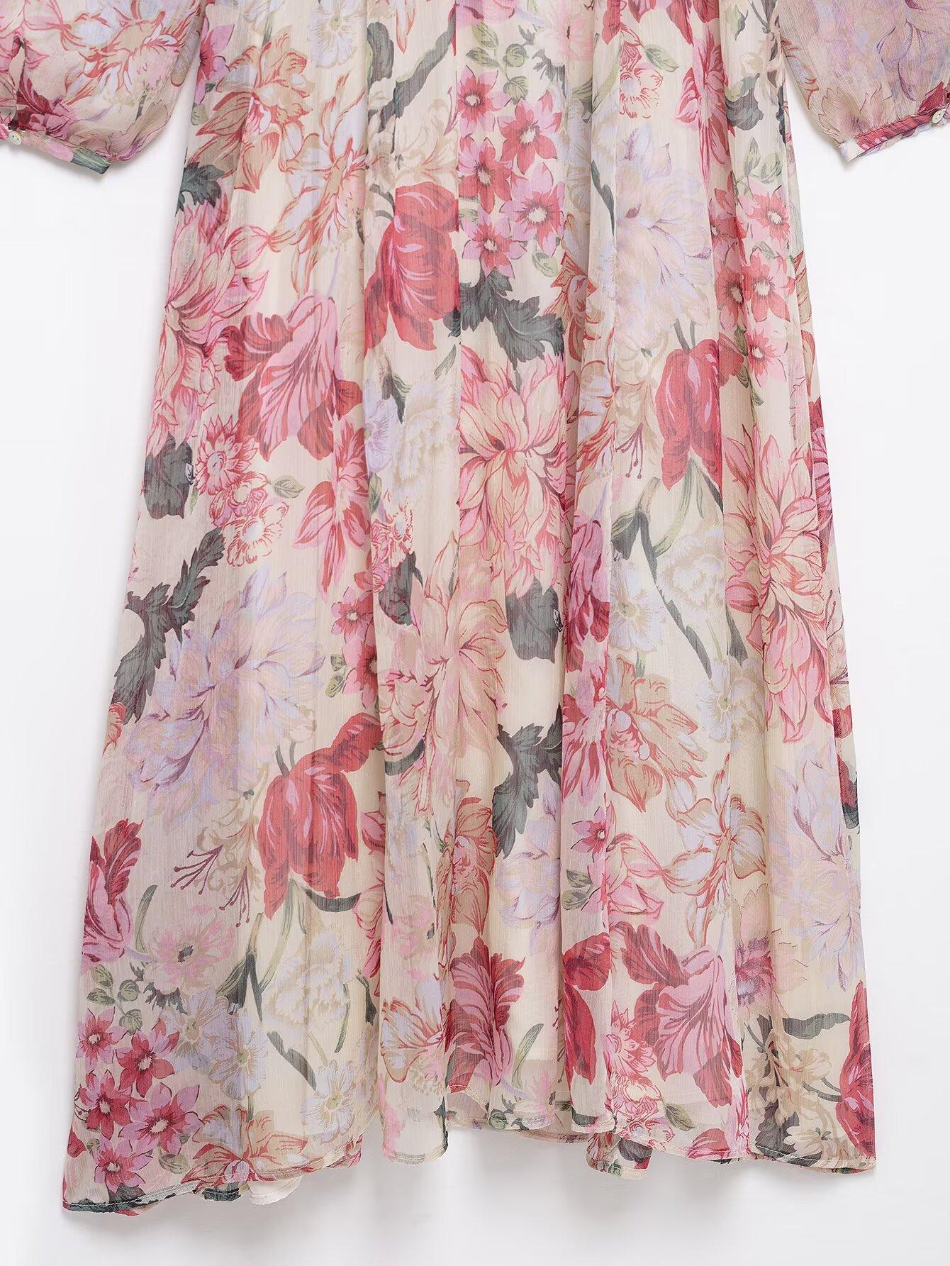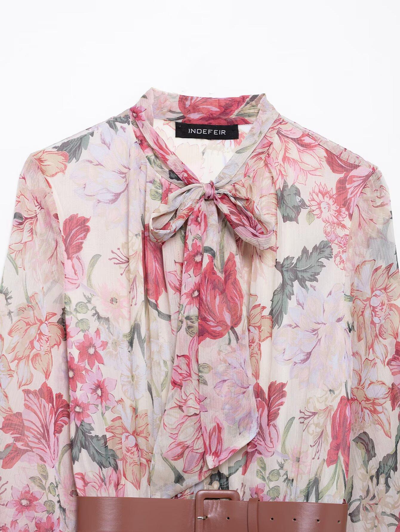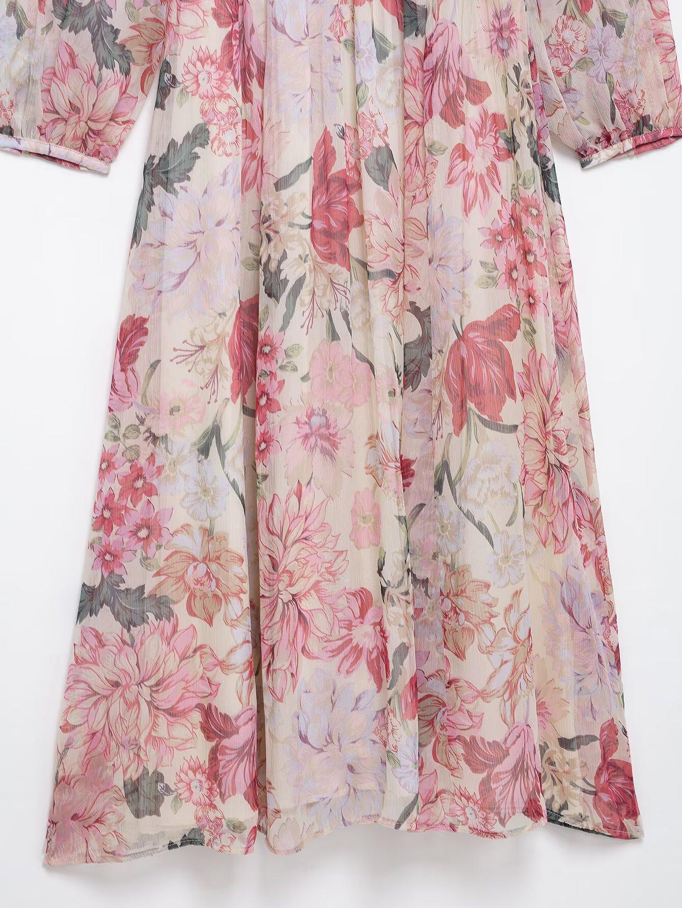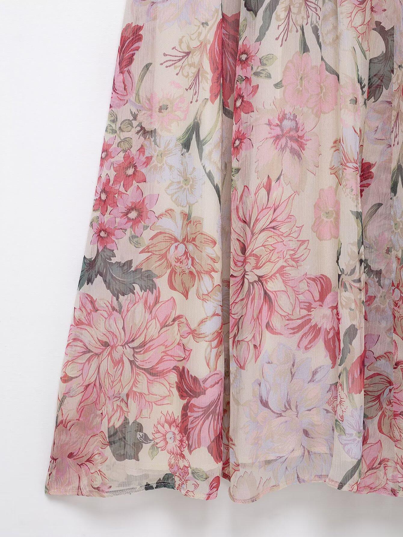 Amazon Mayoreo 2025 Primavera Nuevo Ropa de Mujer Transfronteriza Europea y Americana Cinturón Vestido Midi con Estampado Floral