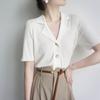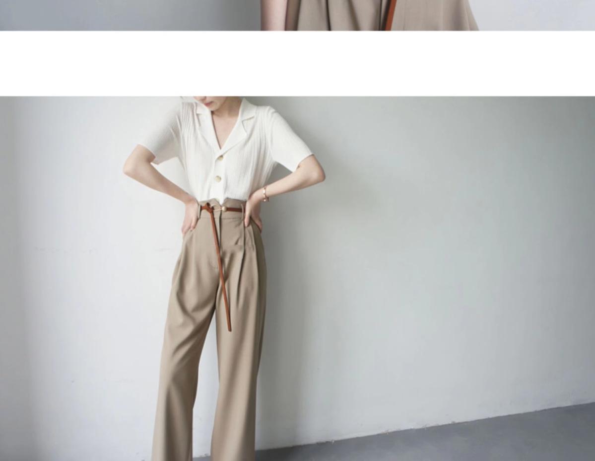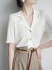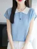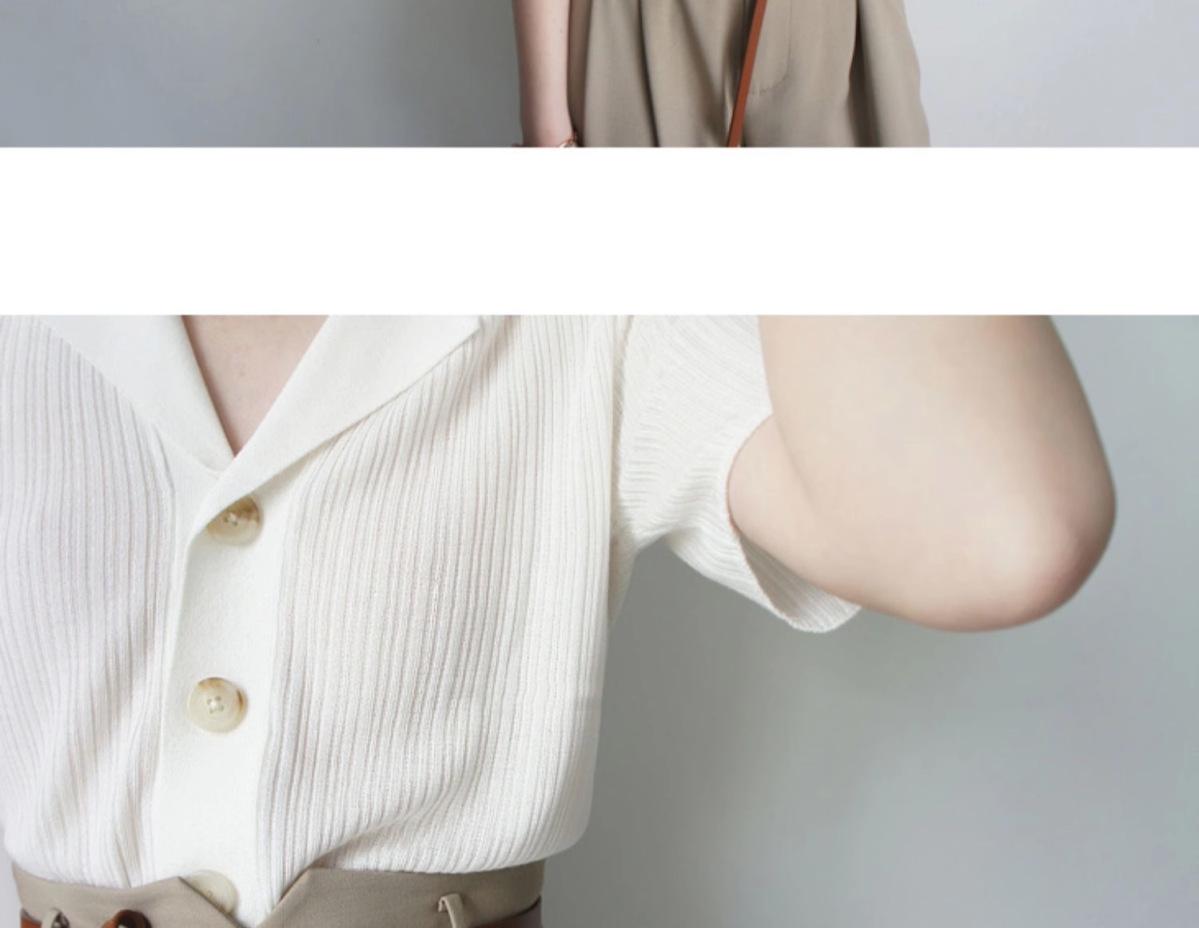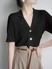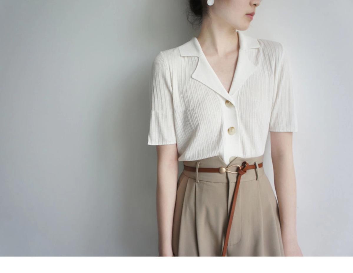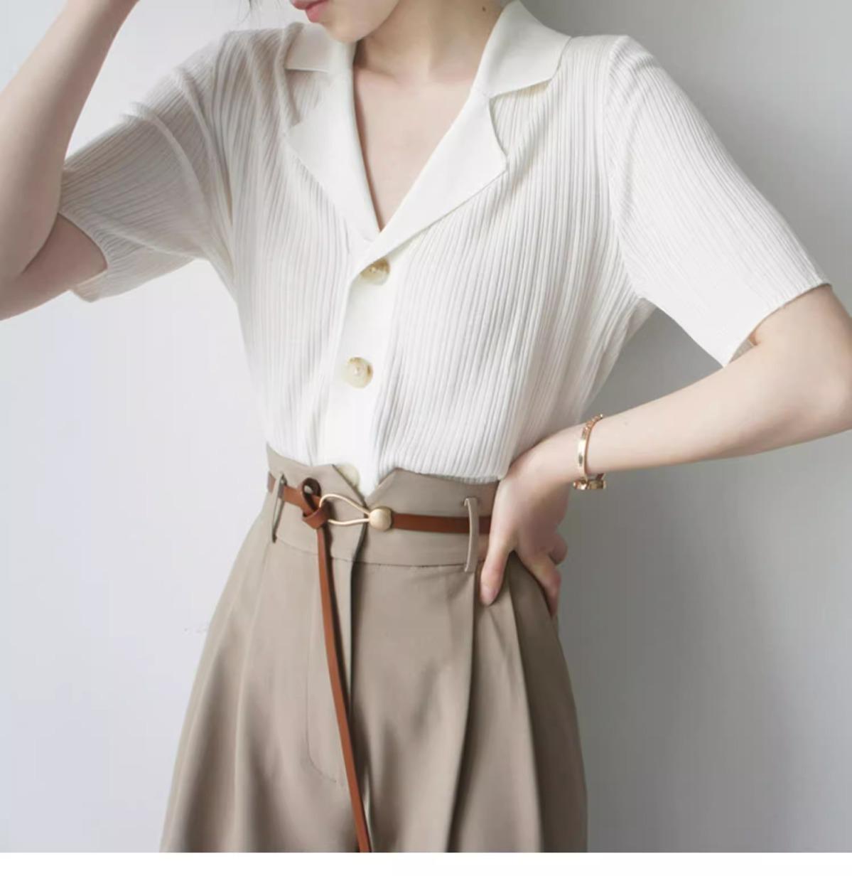 Polo gris de punto cárdigan de manga corta estilo fino solapa para mujer estilo pequeña fragancia camiseta para mujer camiseta de hombro recto top de verano