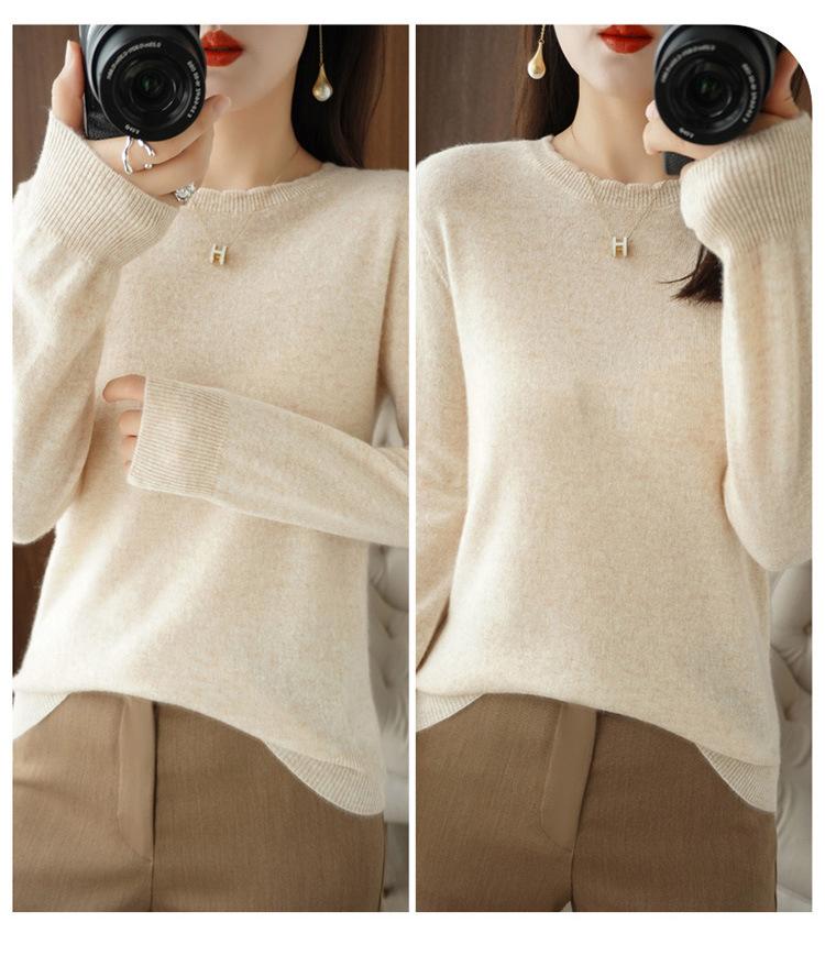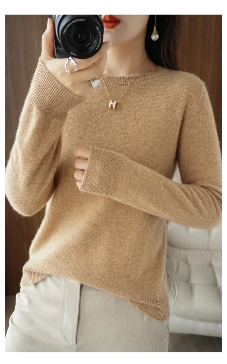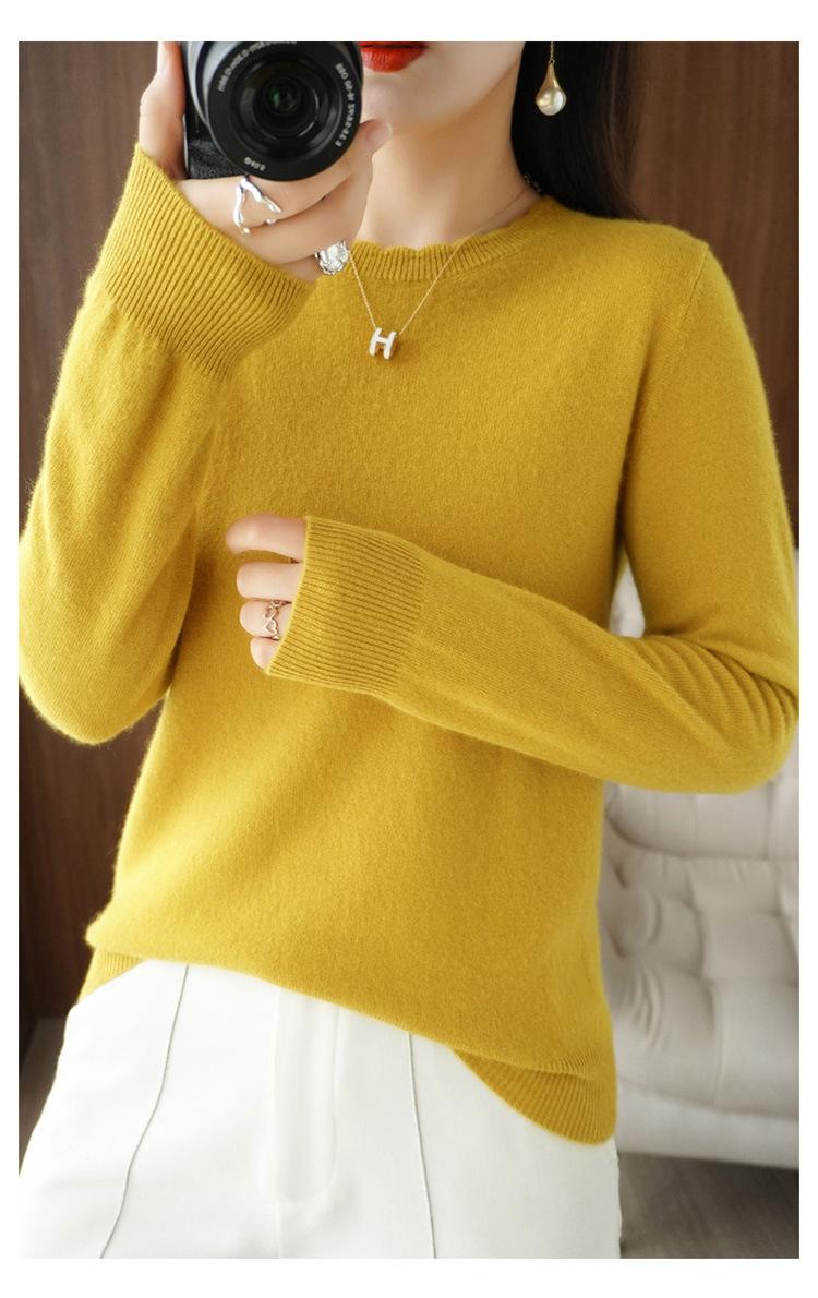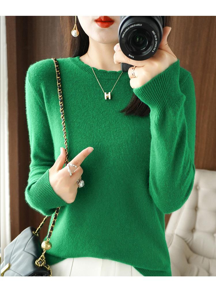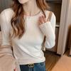 Camiseta básica suéter tejido top prenda exterior prenda interior manga larga mujer versátil holgada nueva otoño e invierno estilo cuello redondo adelgazante