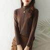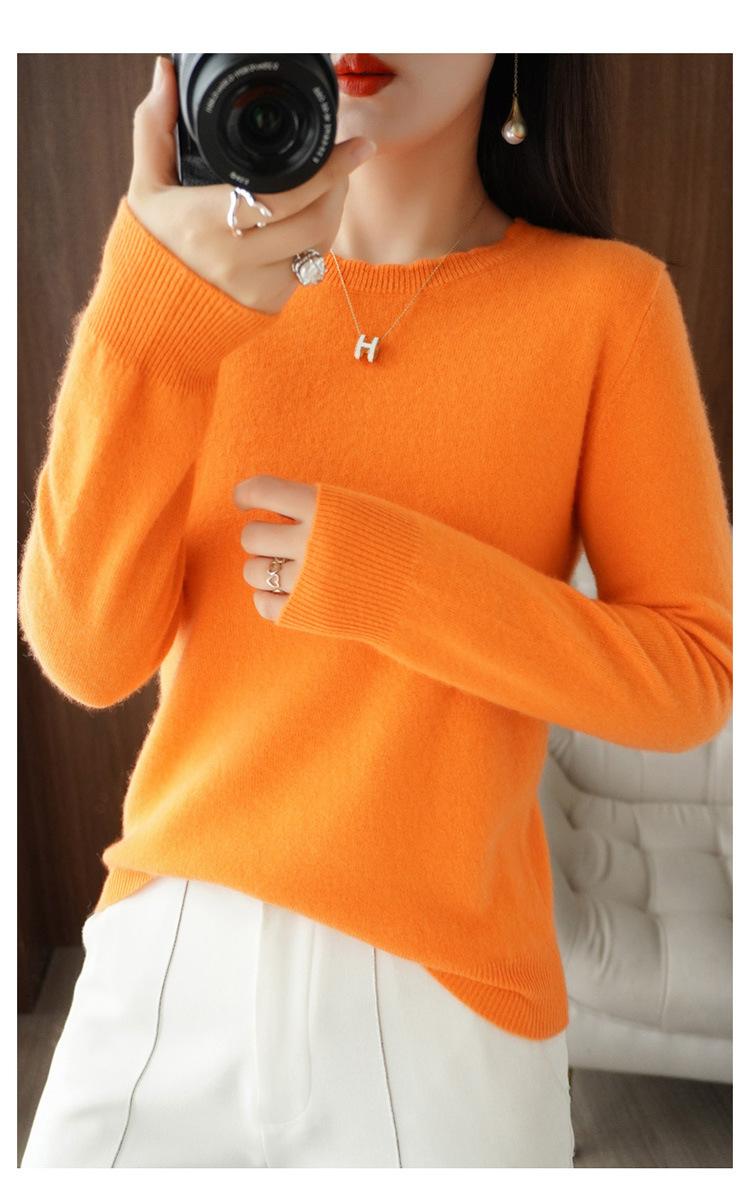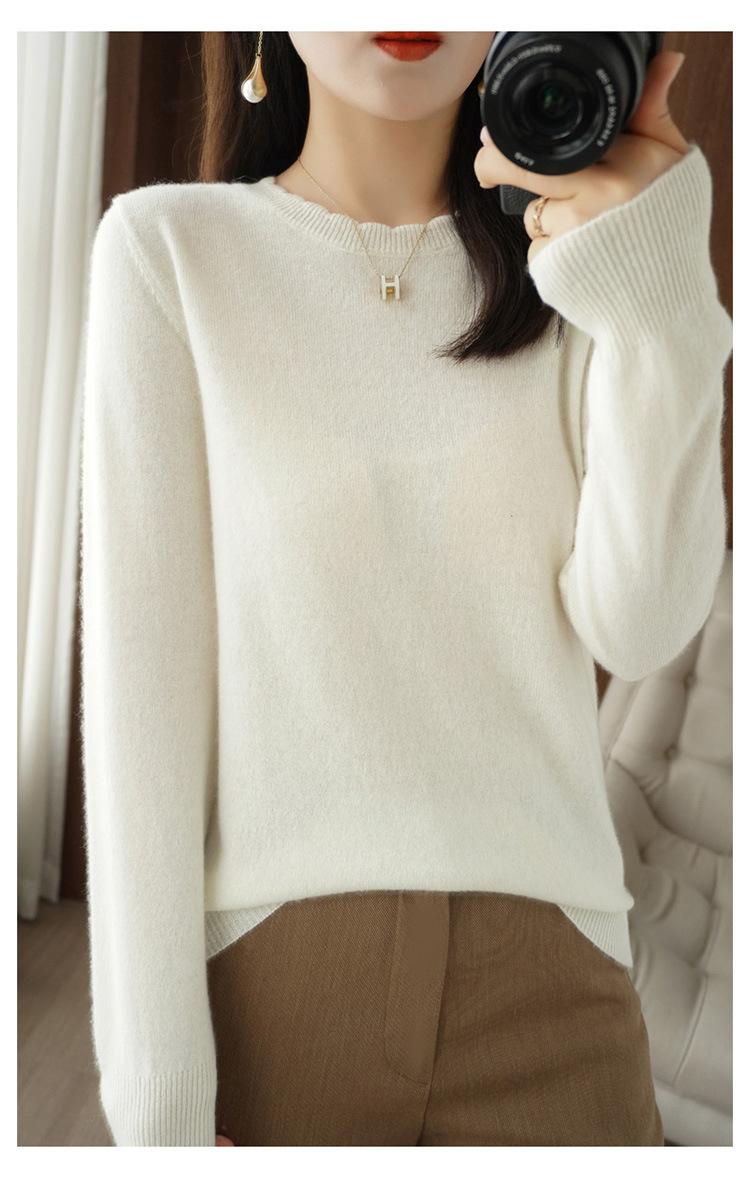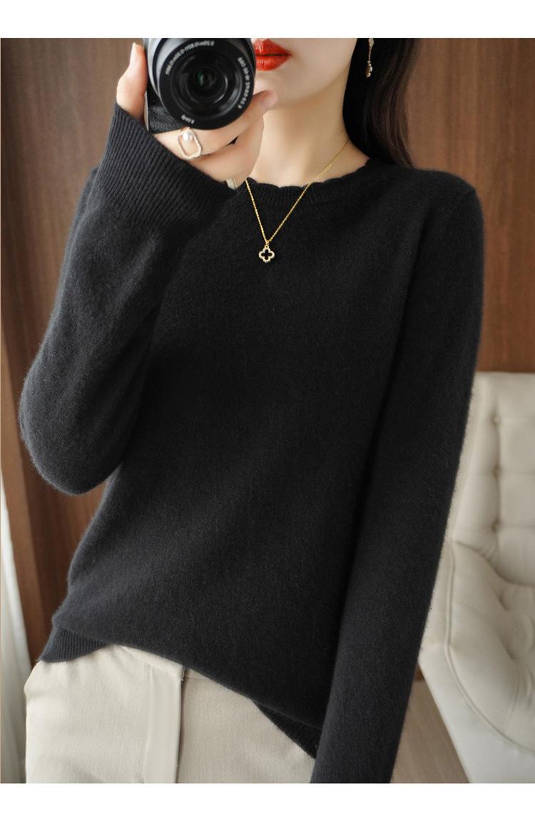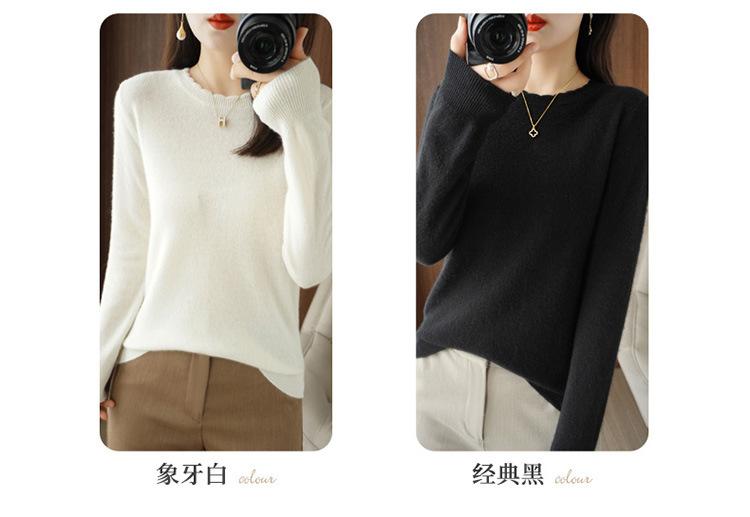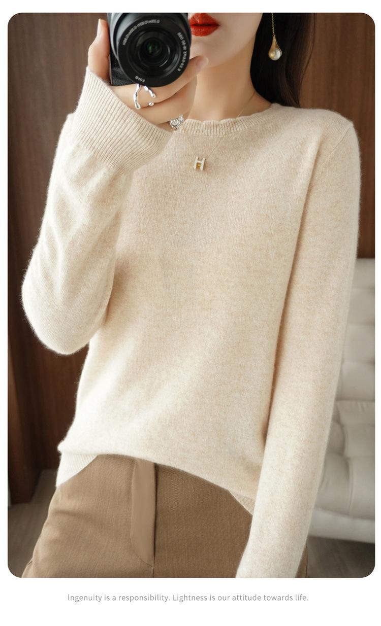 Camiseta básica suéter tejido top prenda exterior prenda interior manga larga mujer versátil holgada nueva otoño e invierno estilo cuello redondo adelgazante