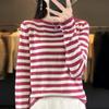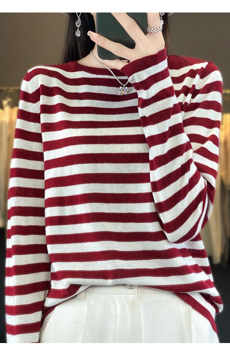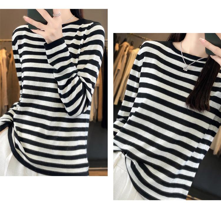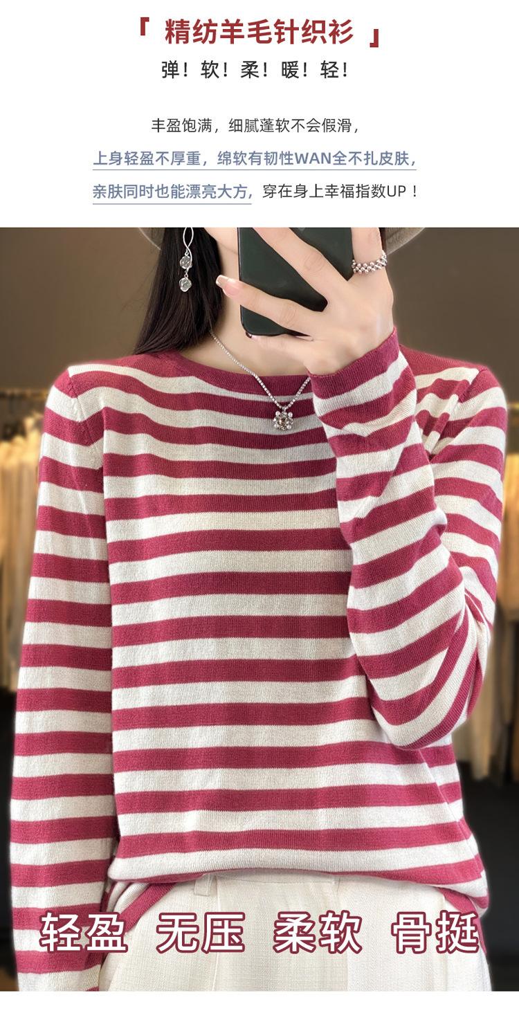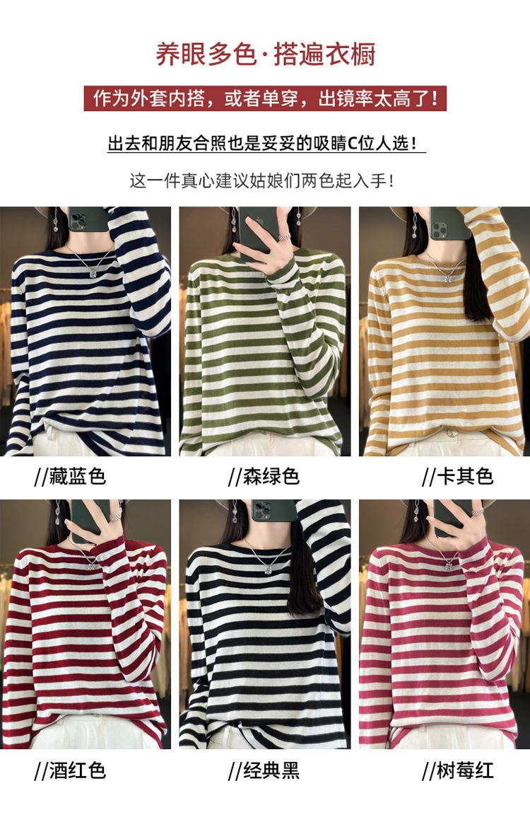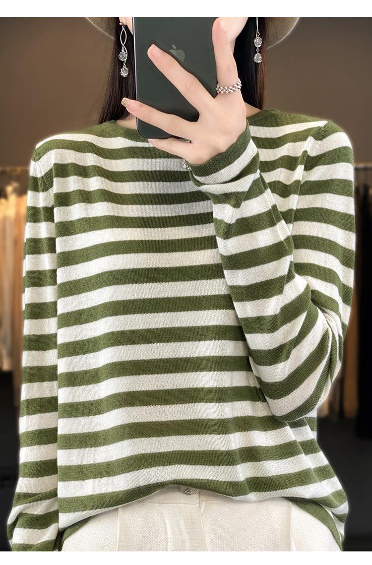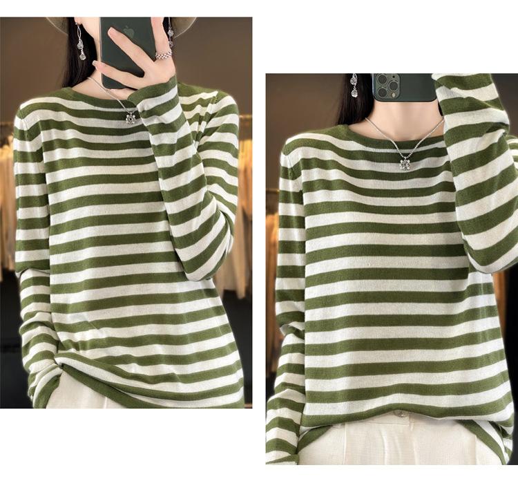 Suéter Tejido de Otoño e Invierno Cuello Redondo Suéter para Mujer Capa Base Transfronterizo Suelto Rayado Nuevo 2025 Lana Merino Bloque de Color