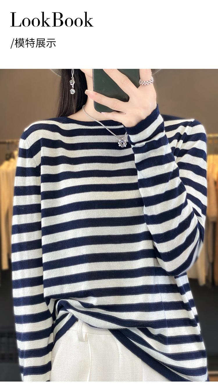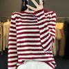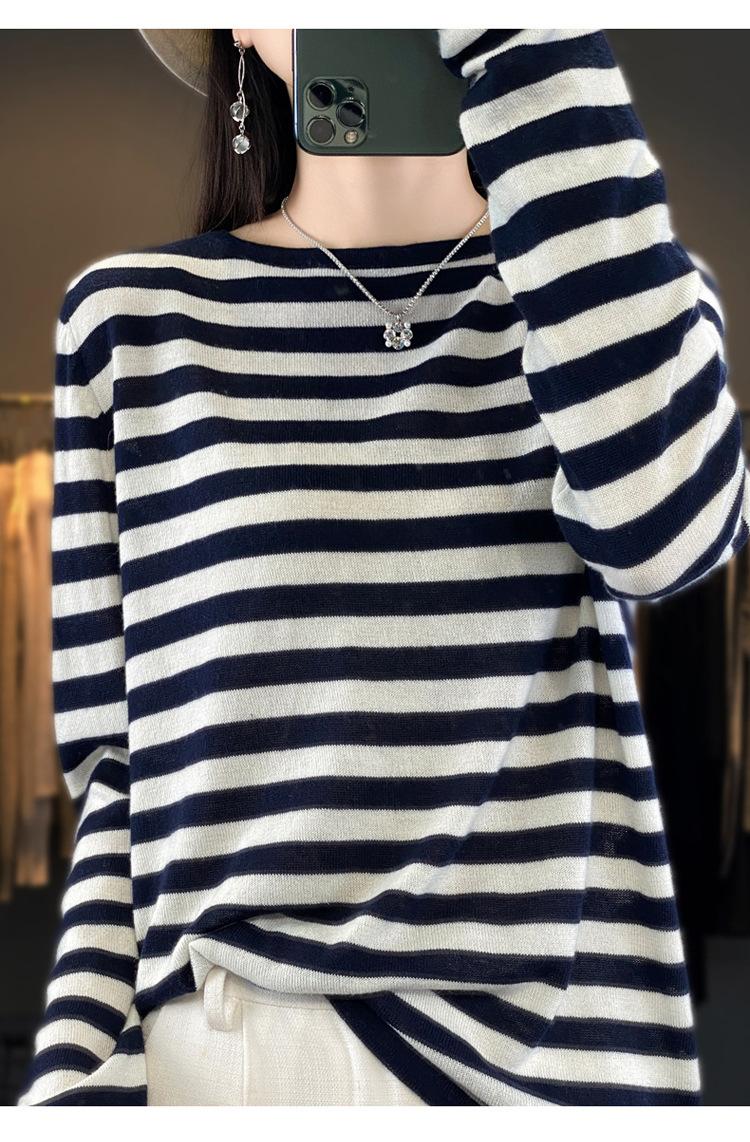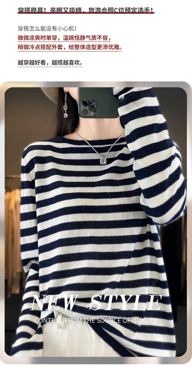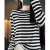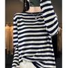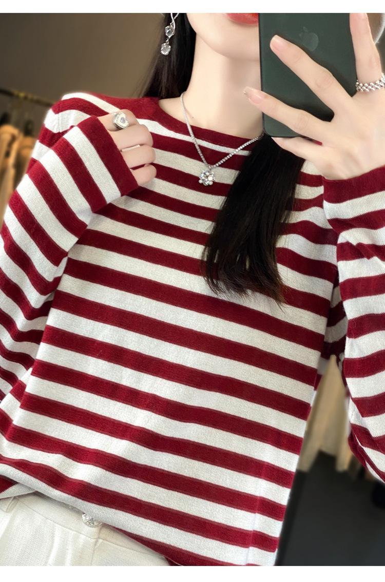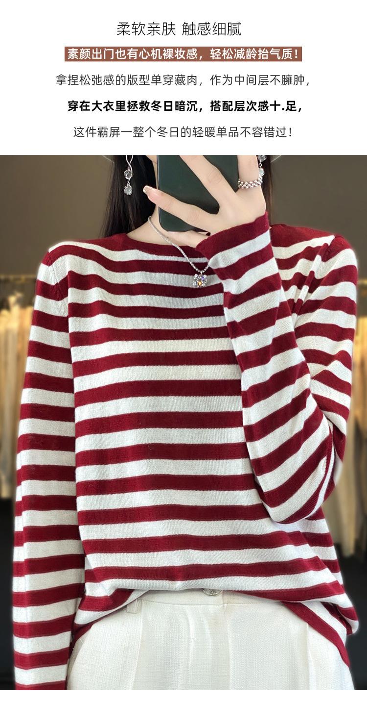Suéter Tejido de Otoño e Invierno Cuello Redondo Suéter para Mujer Capa Base Transfronterizo Suelto Rayado Nuevo 2025 Lana Merino Bloque de Color