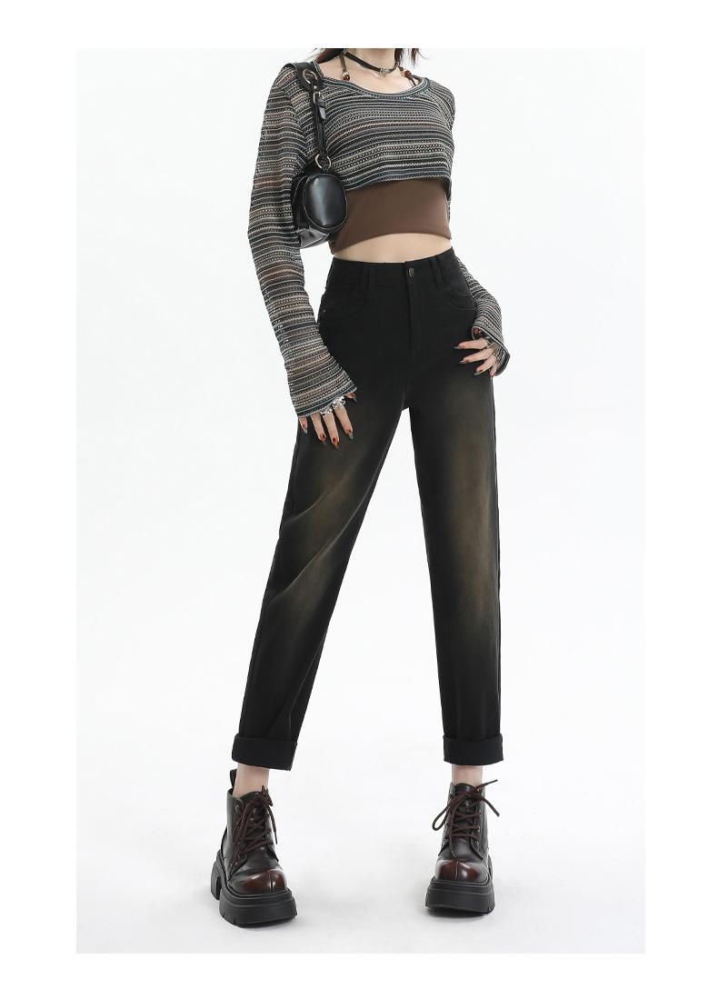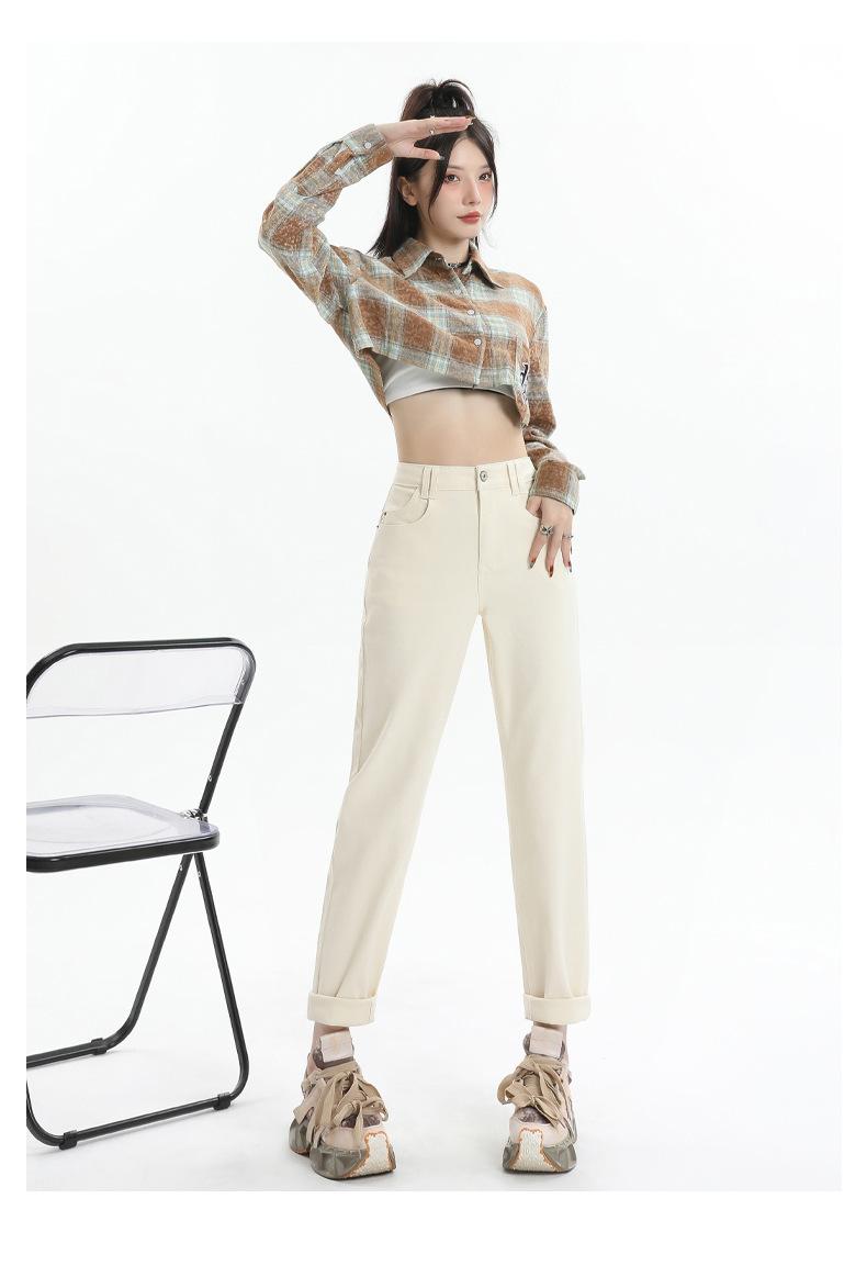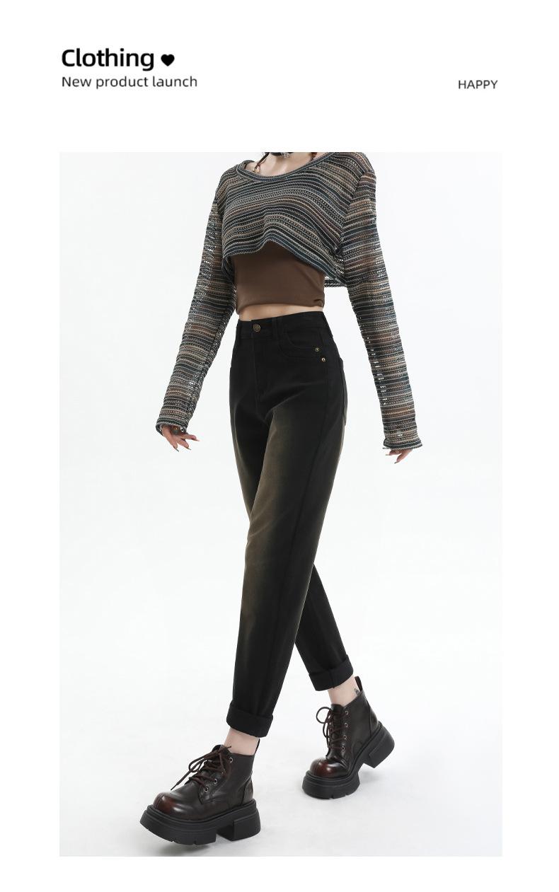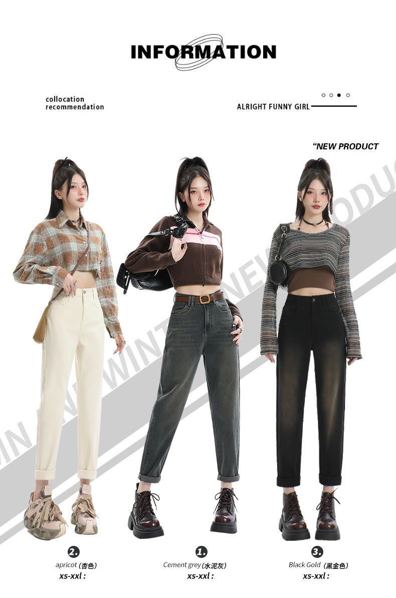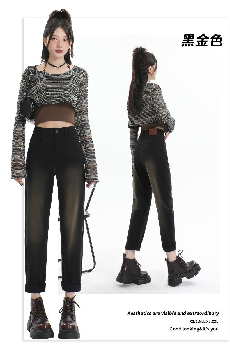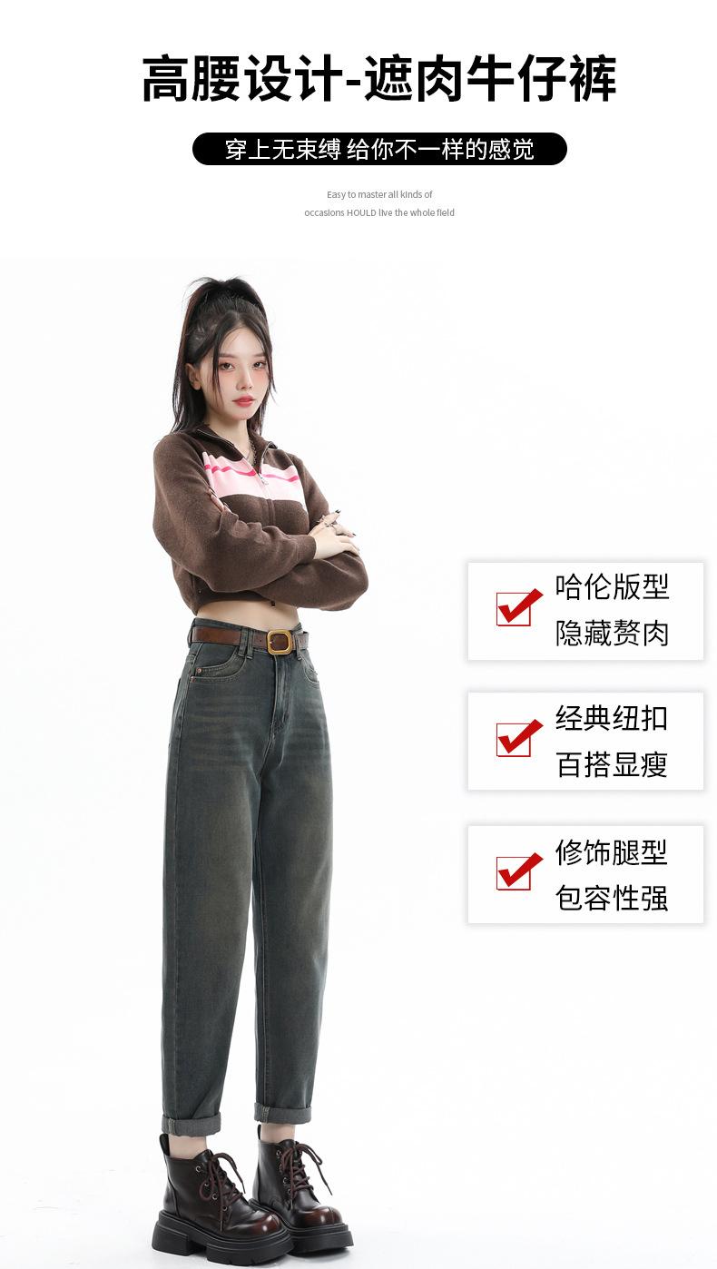 Jeans Elásticos de Otoño para Mujer Cintura Alta Cómodos Adelgazantes Combinables Boyfriend Harem