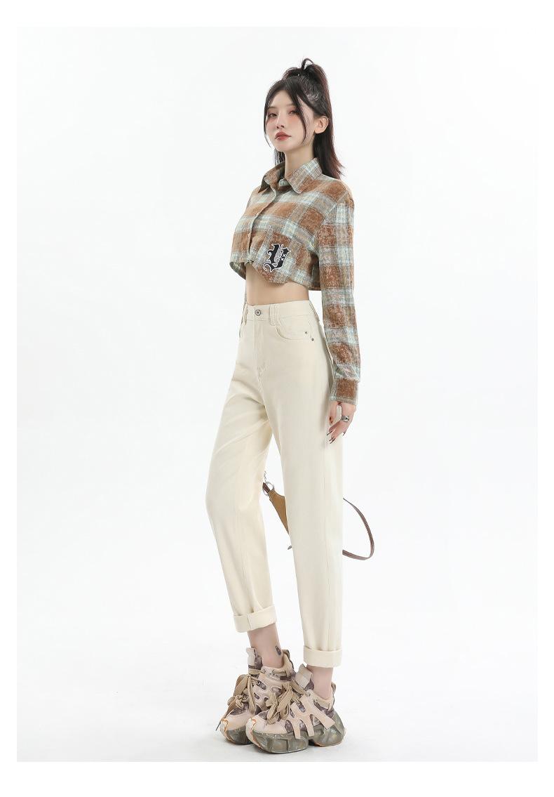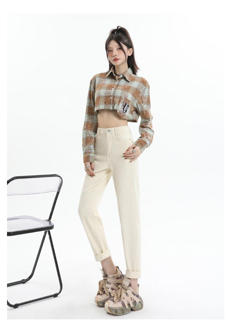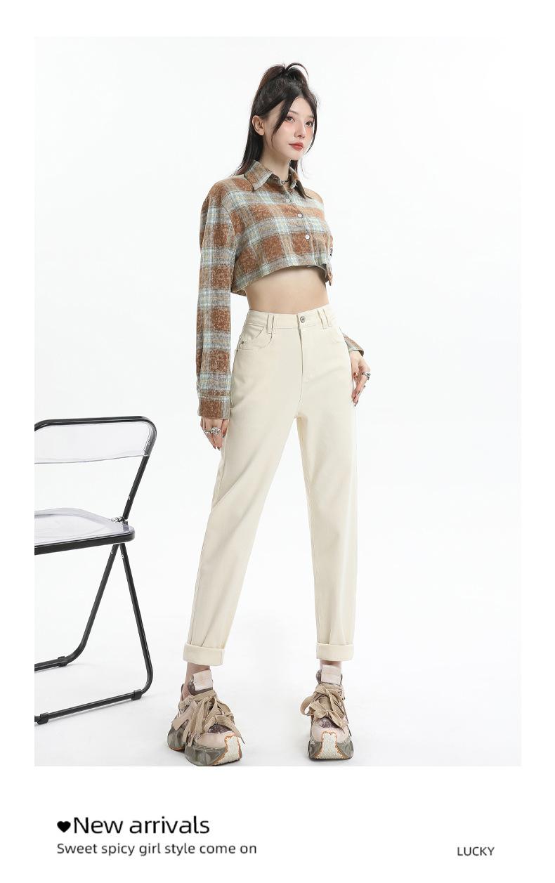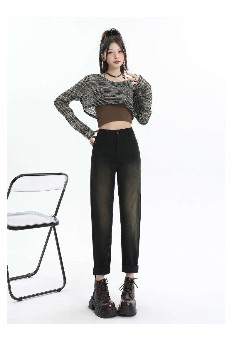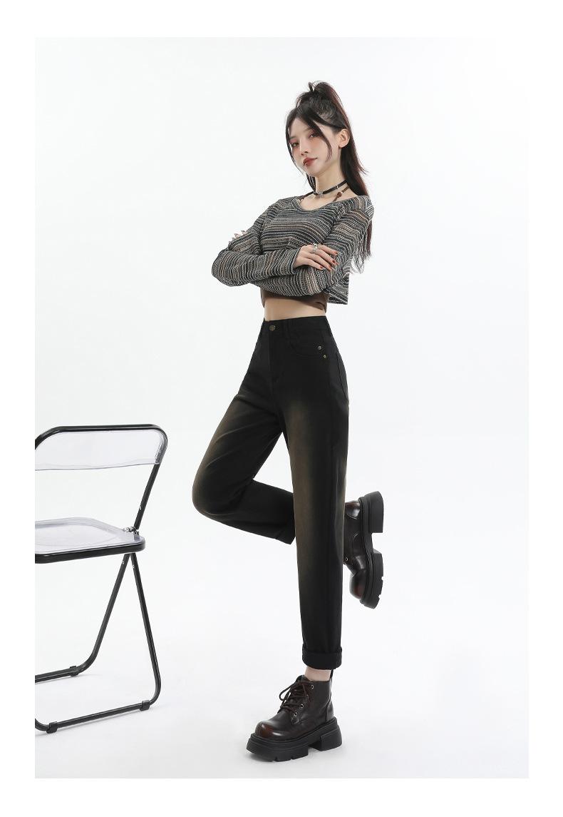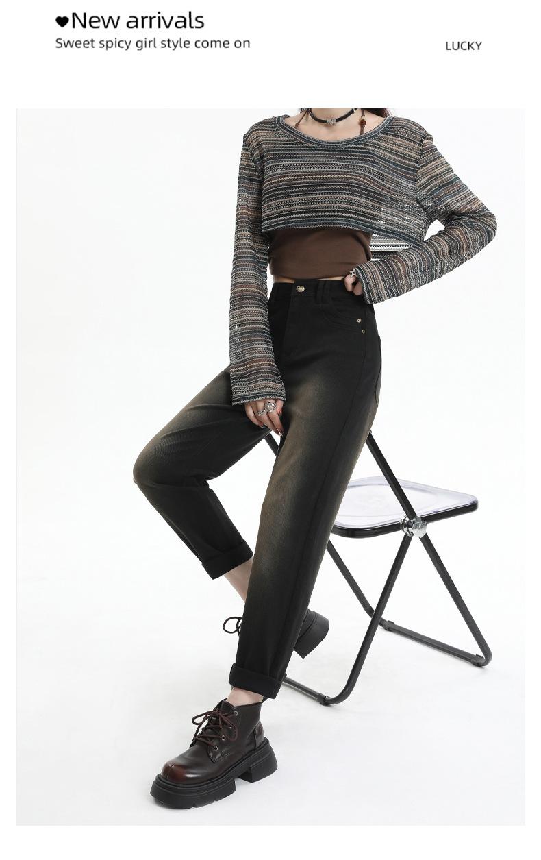 Jeans Elásticos de Otoño para Mujer Cintura Alta Cómodos Adelgazantes Combinables Boyfriend Harem