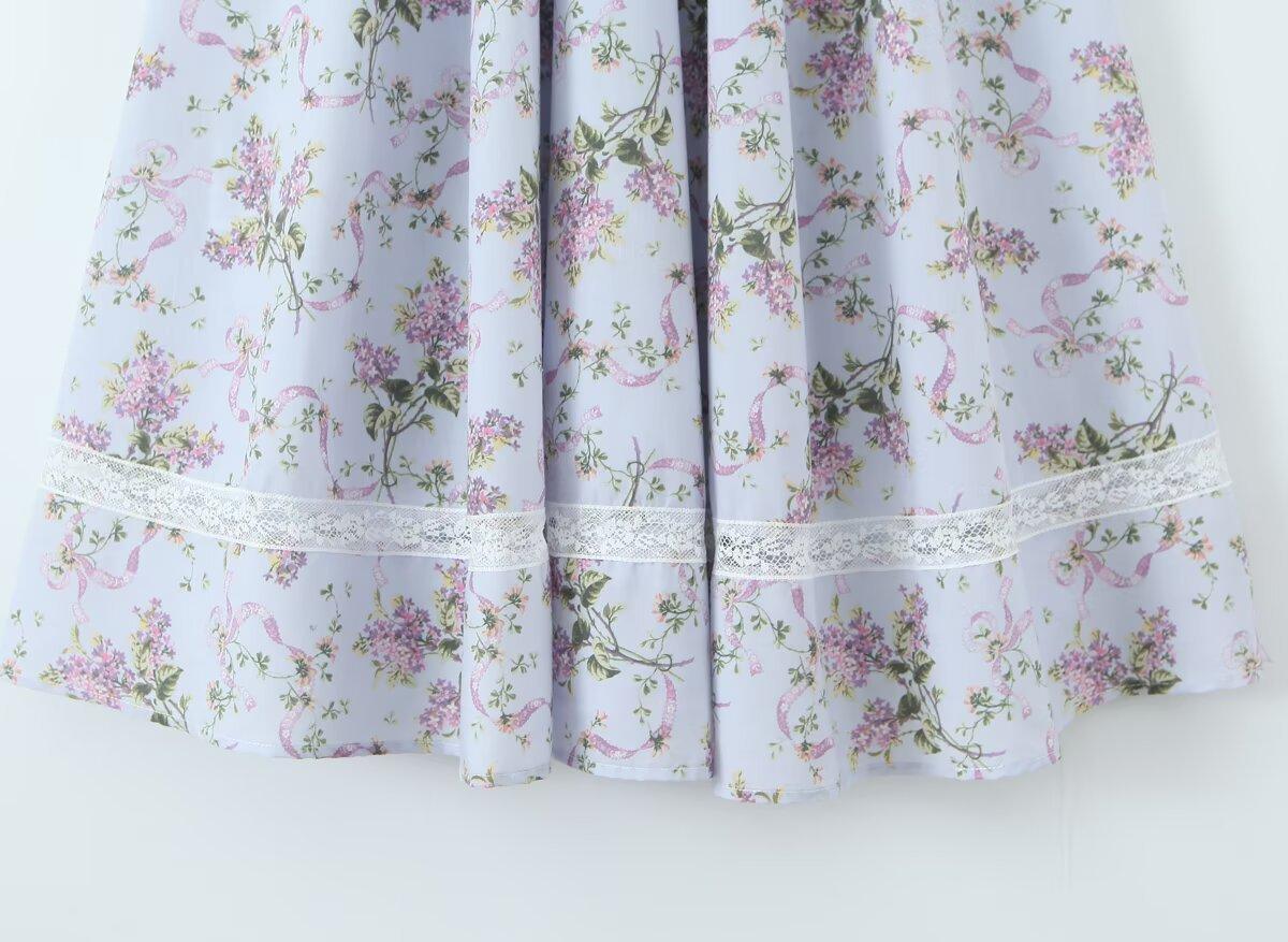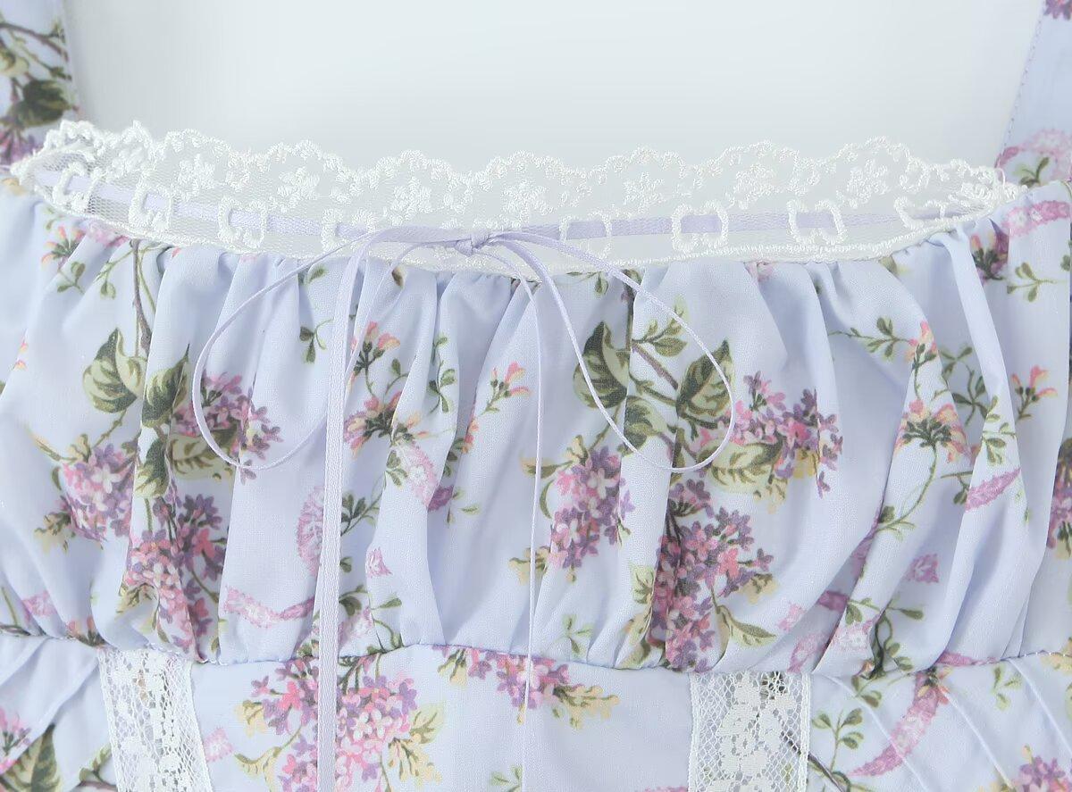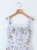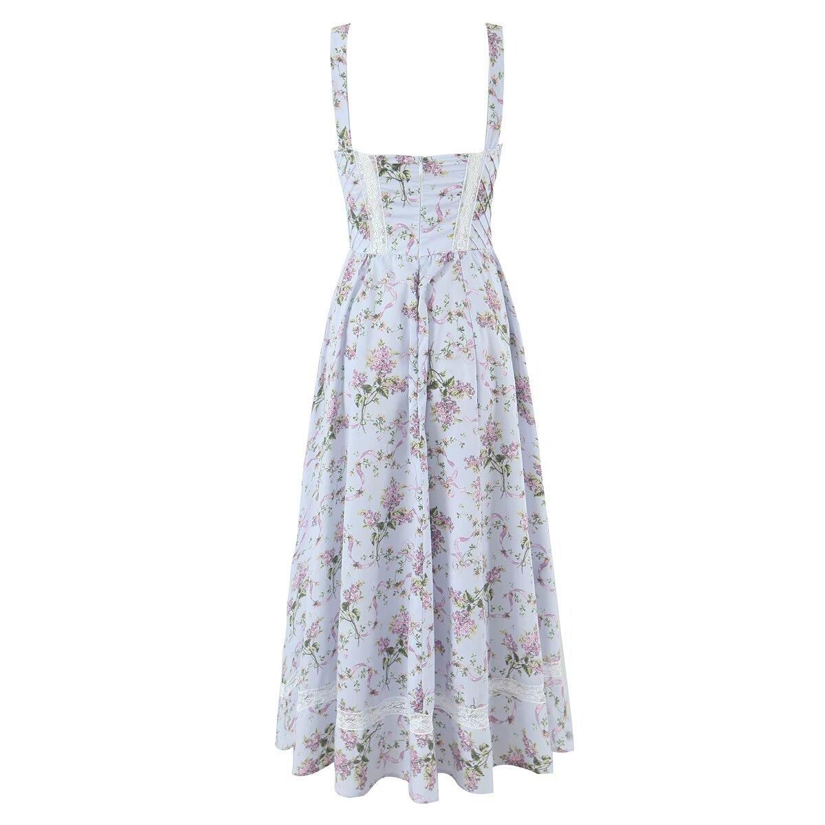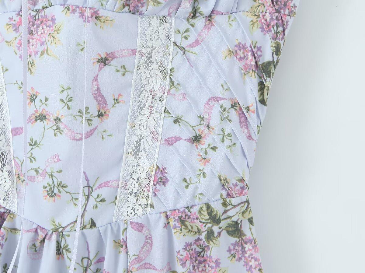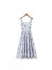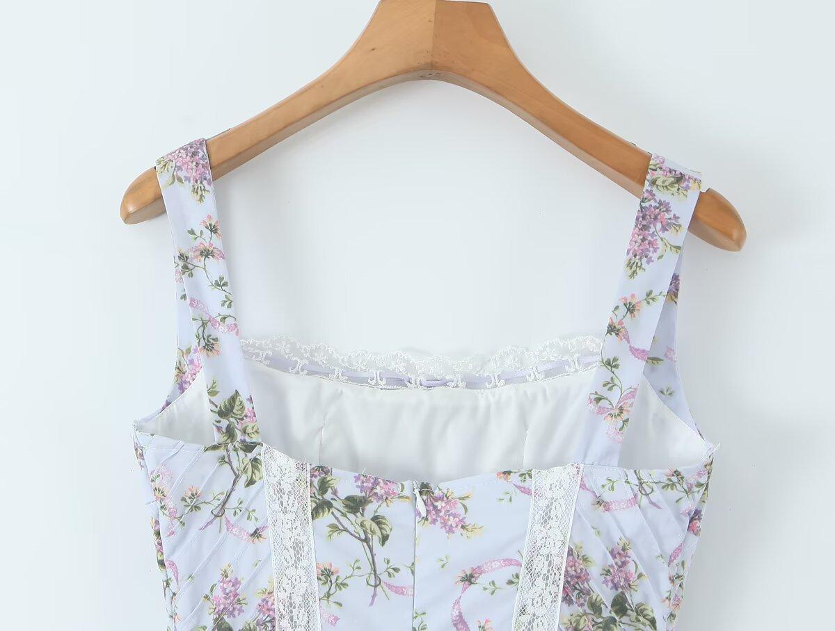 Venta al por mayor de comercio exterior transfronterizo 2025 Verano Nuevo Estilo Europeo y Americano Vestido de tirantes estampado para mujer con encaje empalmado en la cintura