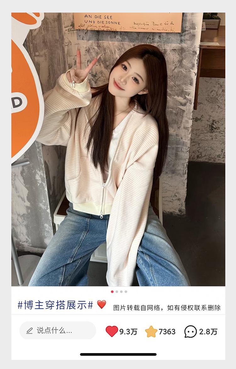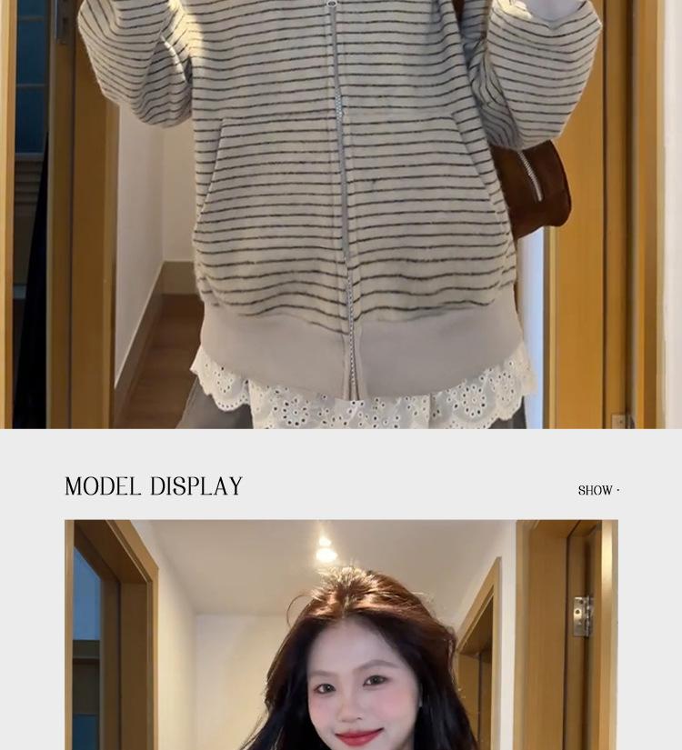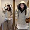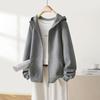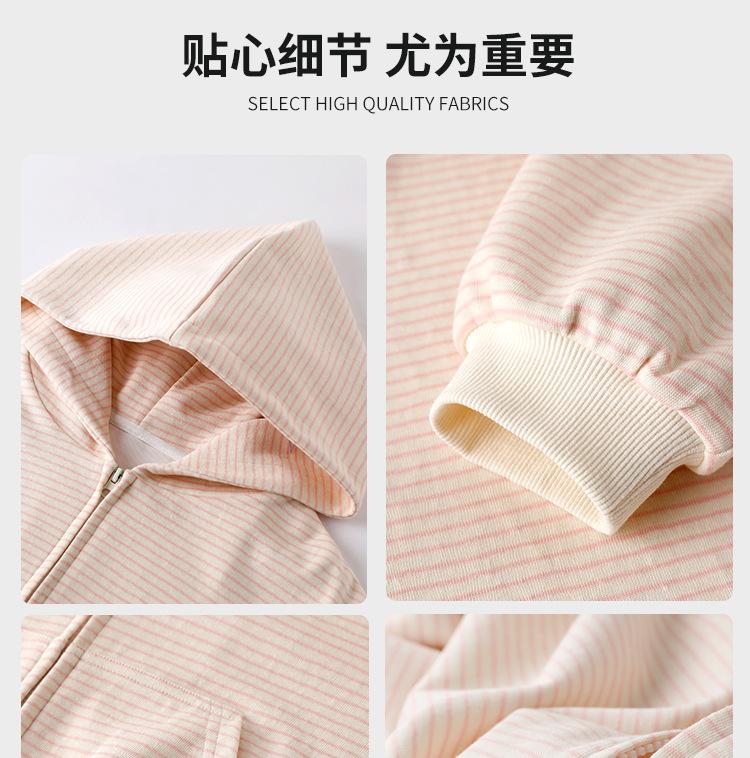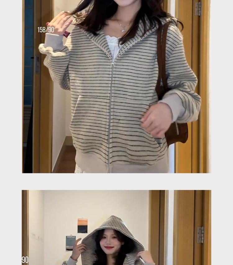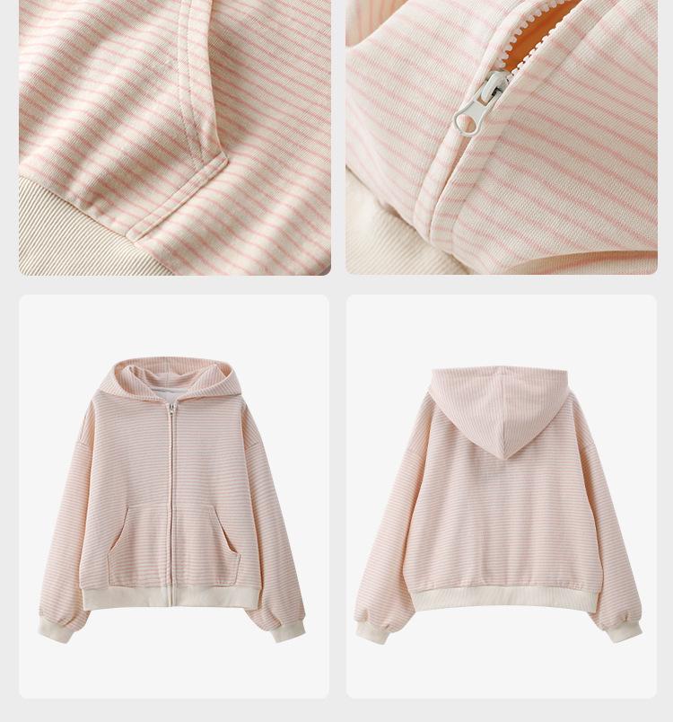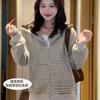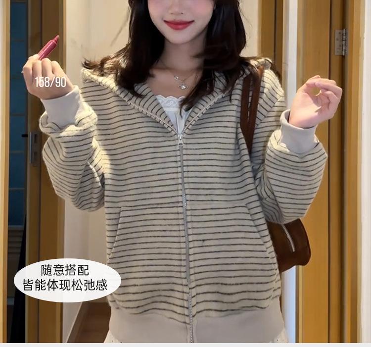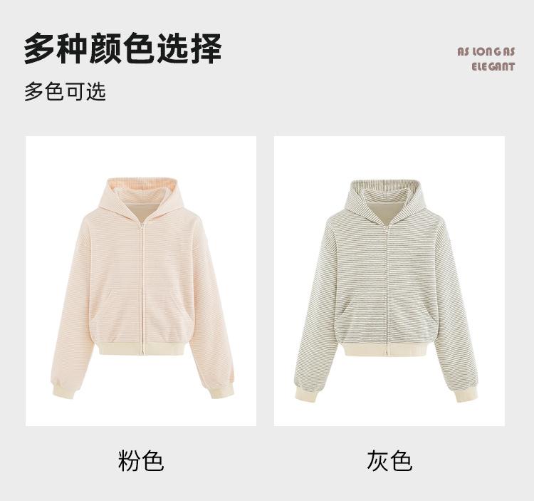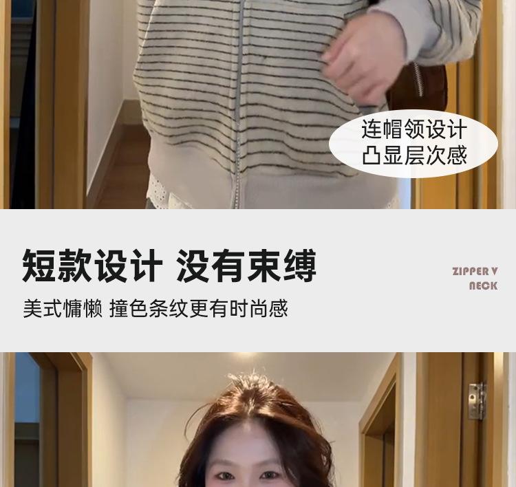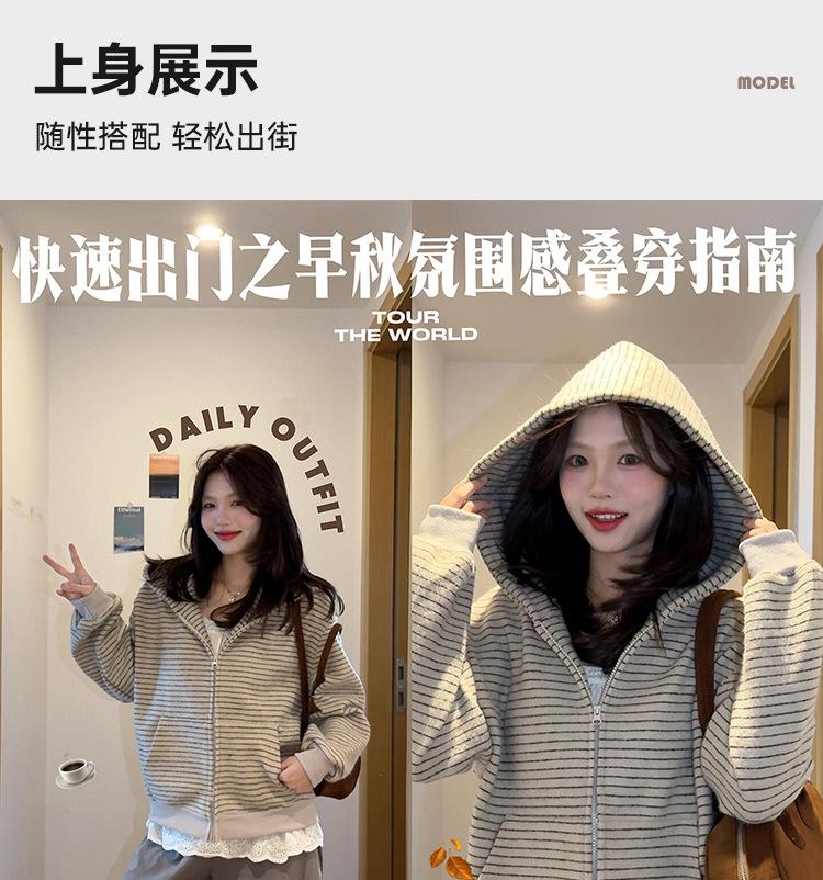 Chaqueta Sudadera con Capucha Rayada Gris para Mujer 2025 Nuevo Principios de Otoño Casual Delgada Americana Lazy Chic Top