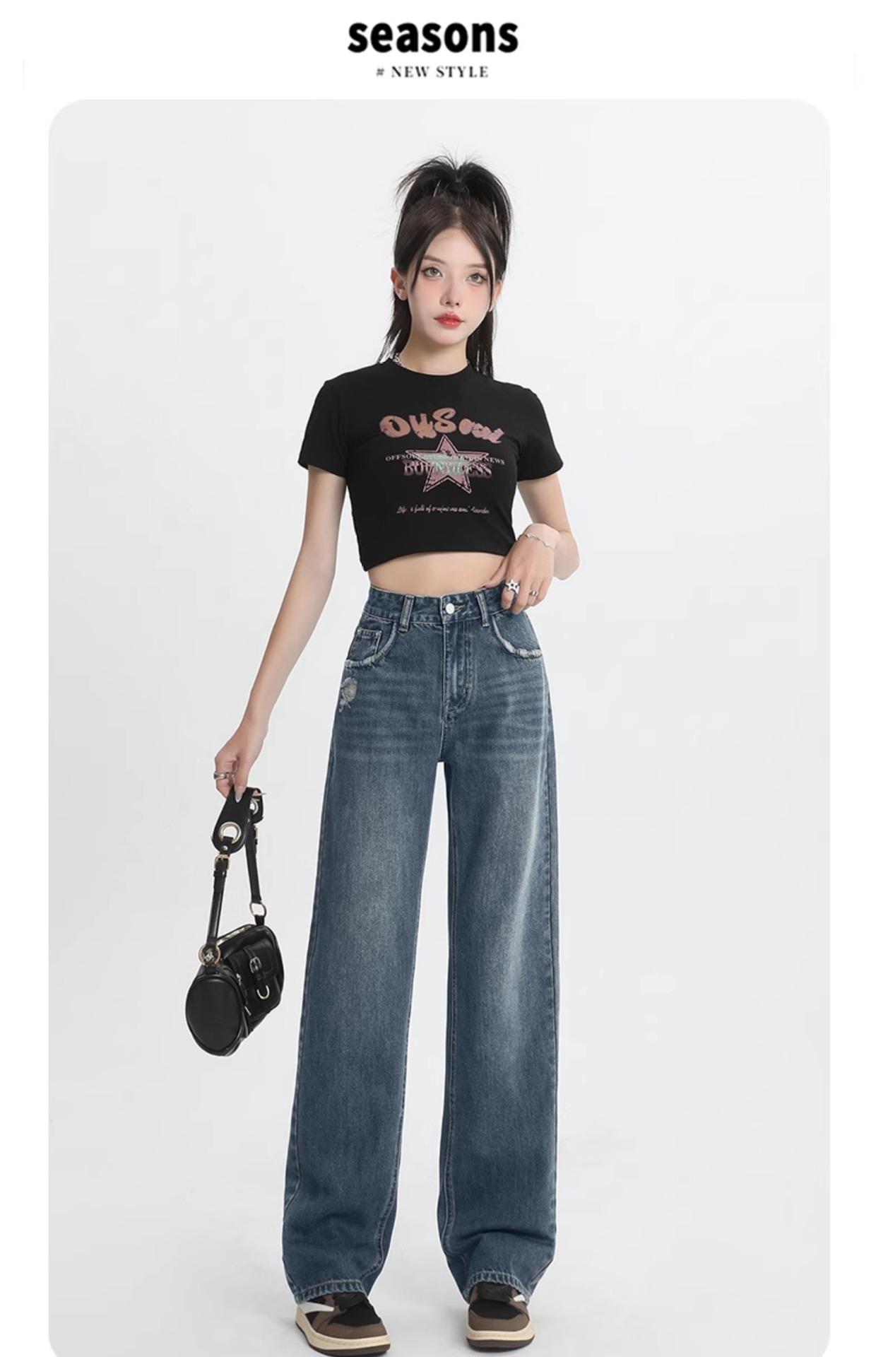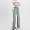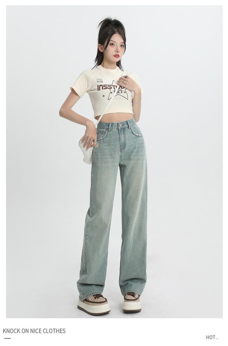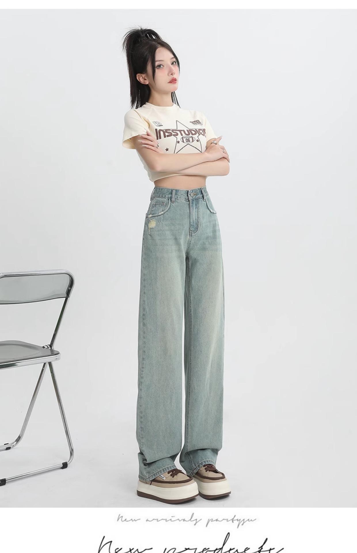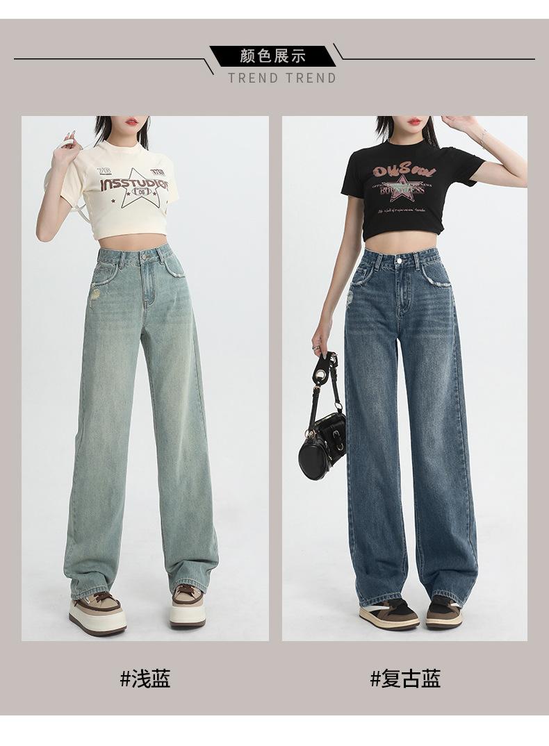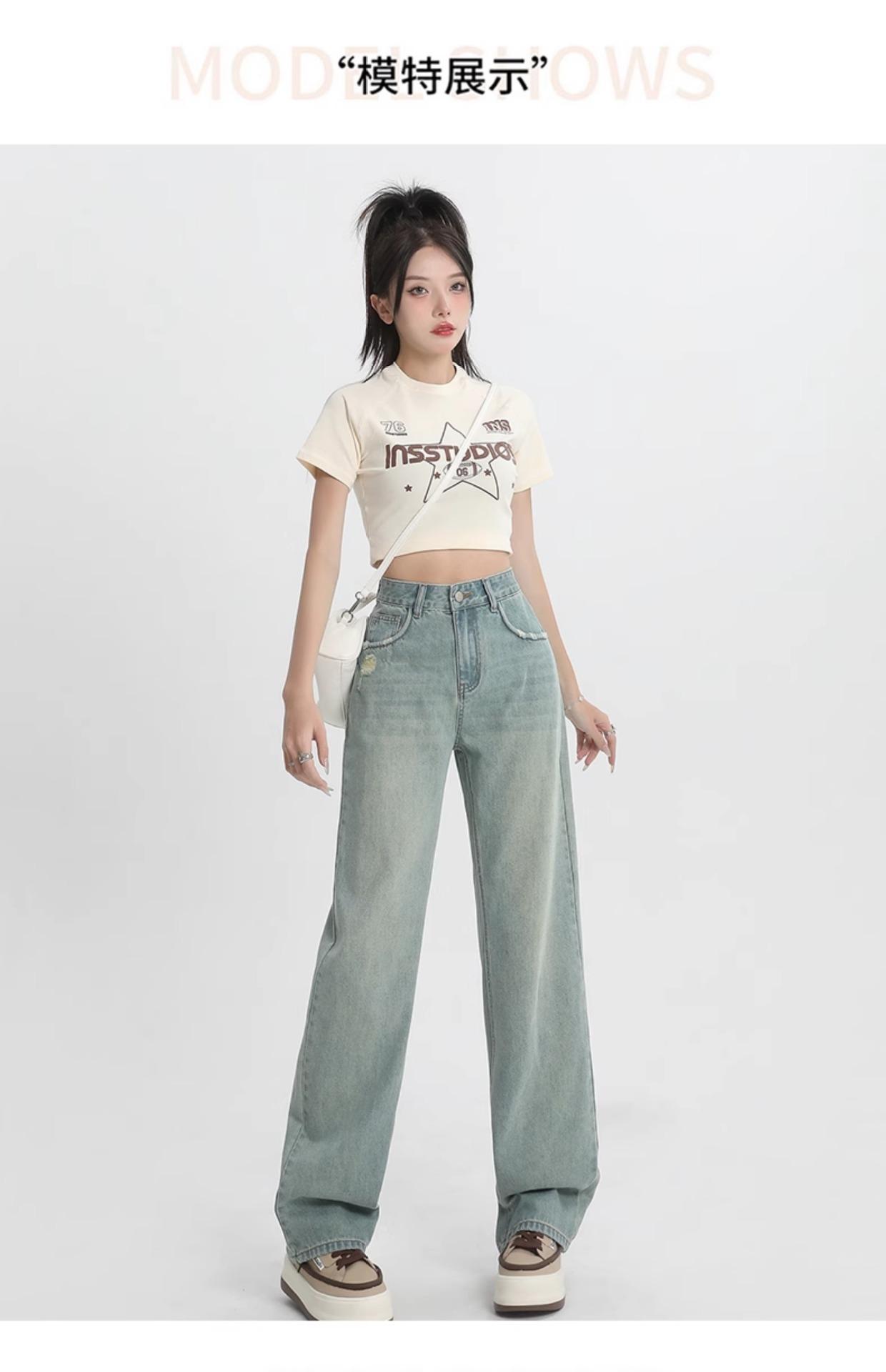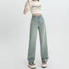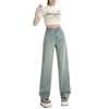 Jeans rectos holgados de cintura alta para mujer Primavera y Verano Nuevo Azul claro Ajustado Pantalones de pierna ancha para personas pequeñas Ropa de primavera 2025