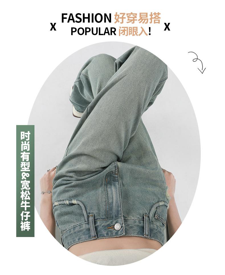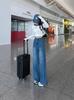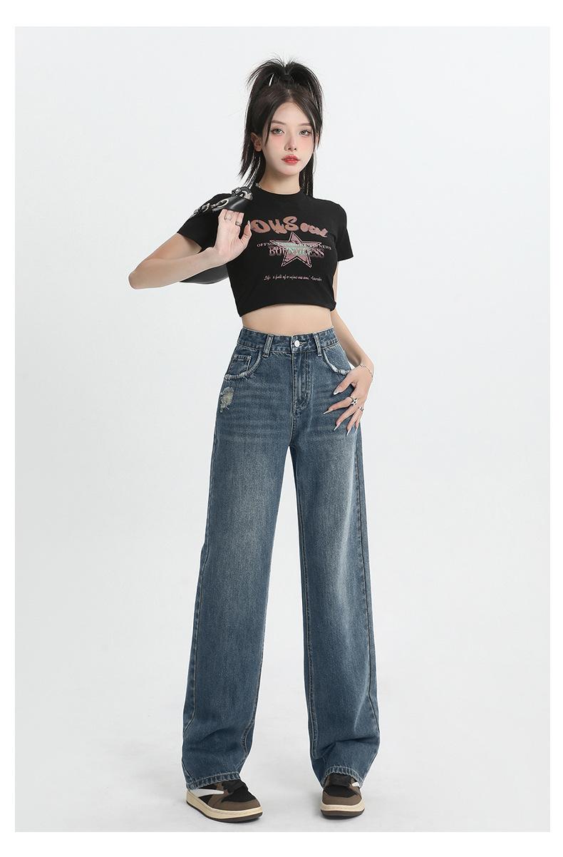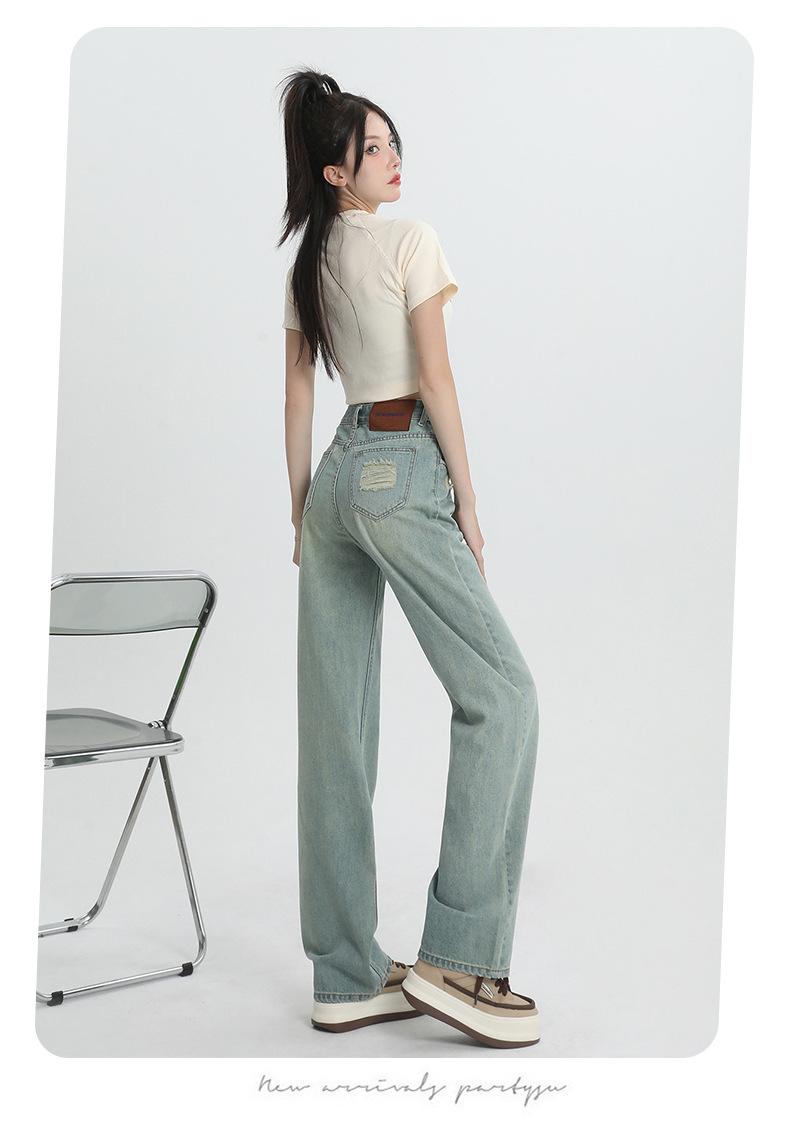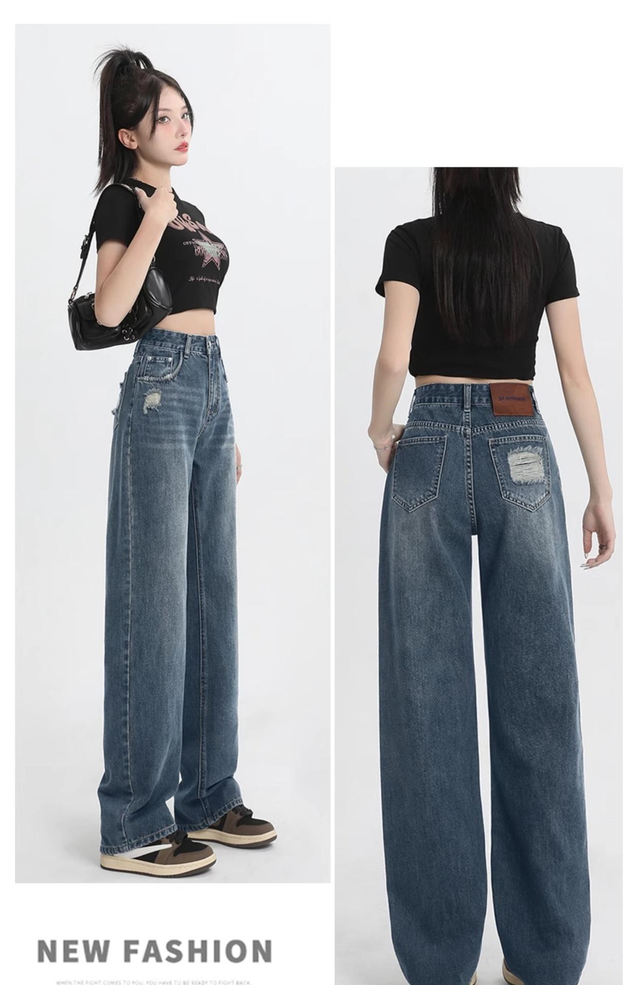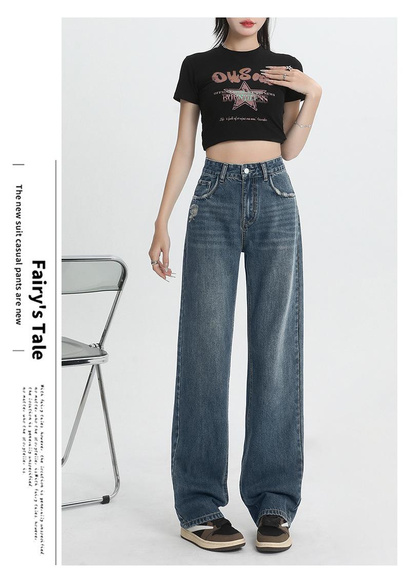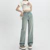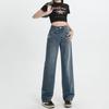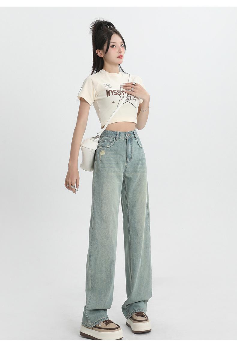 Jeans rectos holgados de cintura alta para mujer Primavera y Verano Nuevo Azul claro Ajustado Pantalones de pierna ancha para personas pequeñas Ropa de primavera 2025
