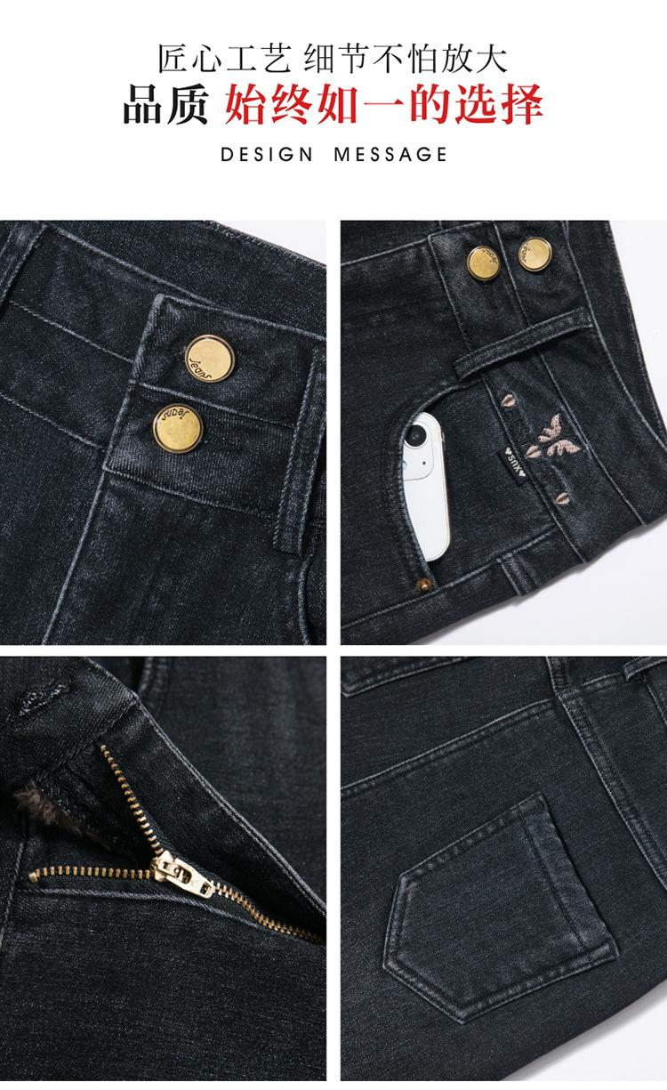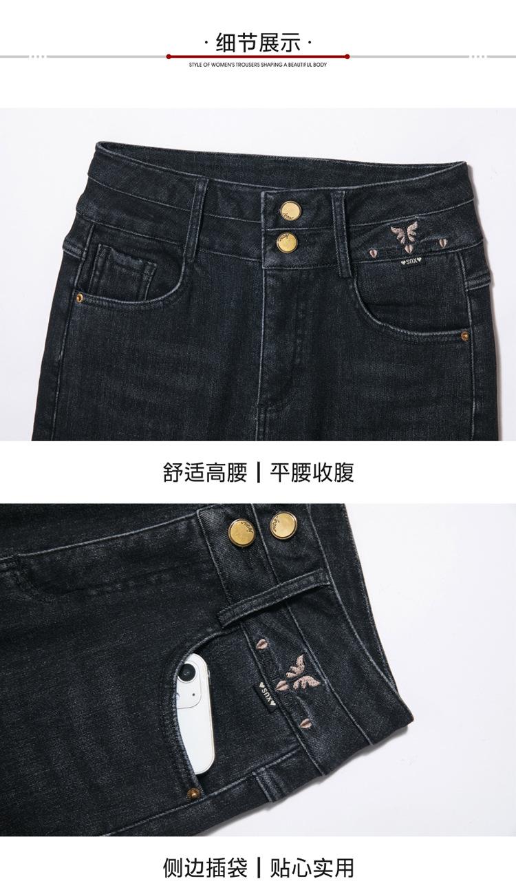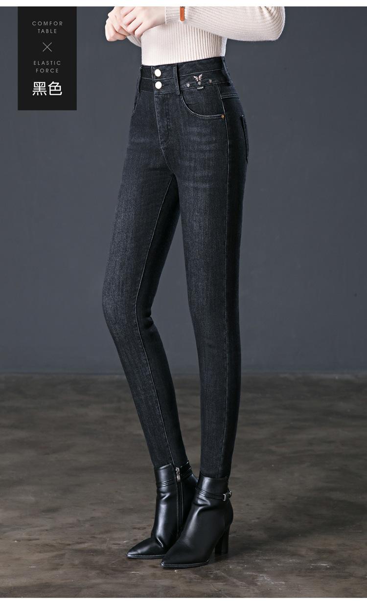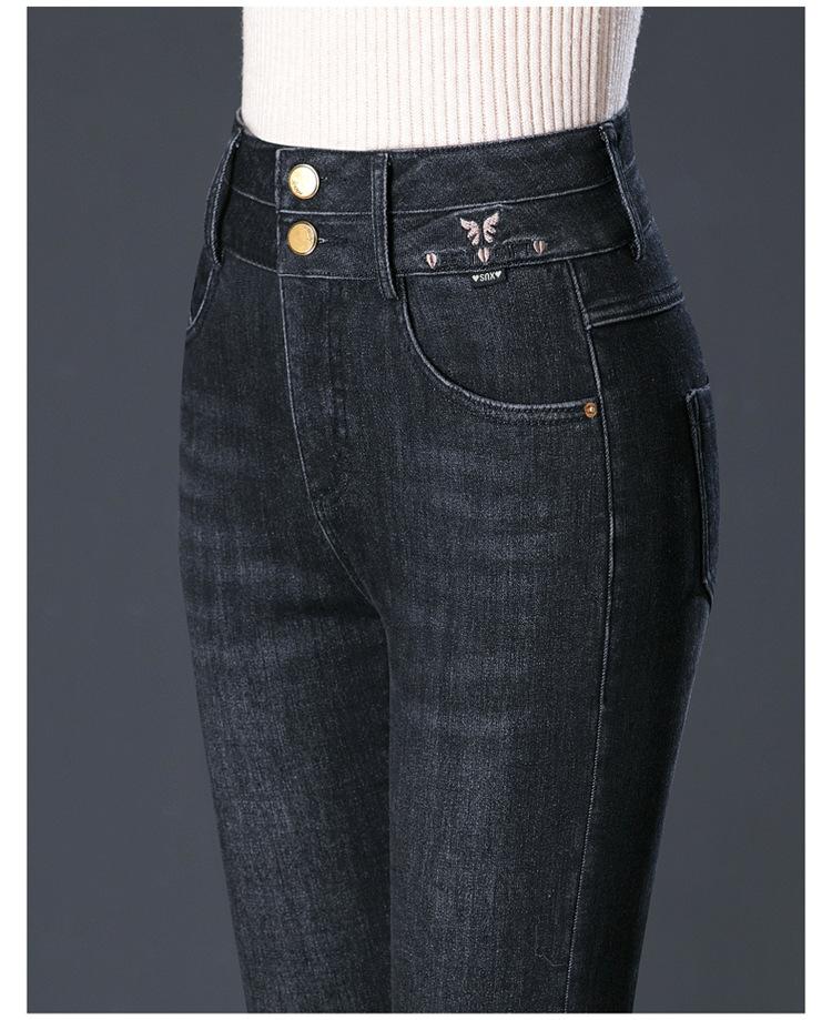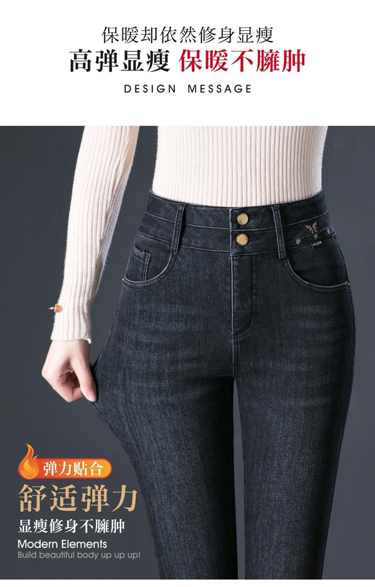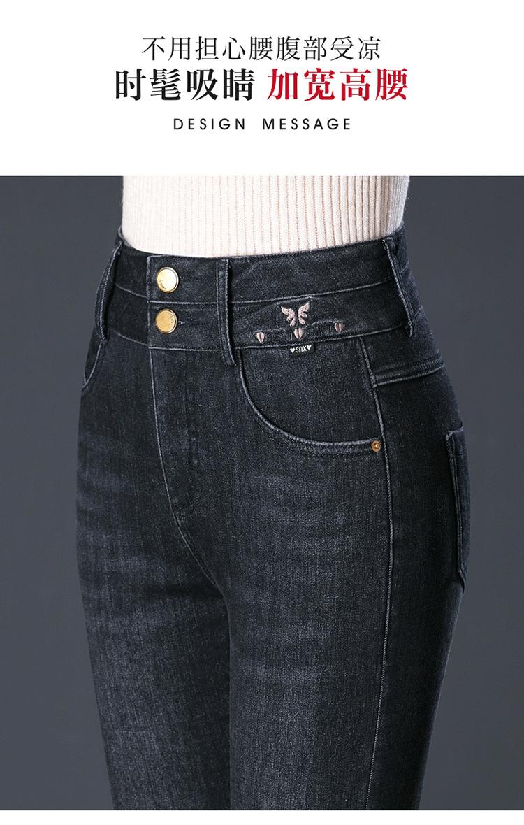 9213 invierno felpa pantalones de mezclilla para mamá de mediana edad y anciana para mujer talla grande pierna pequeña pantalones lápiz elásticos pierna recta temperamento bordado