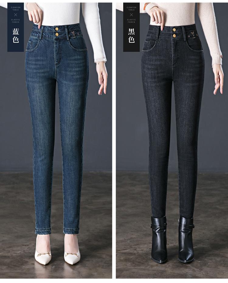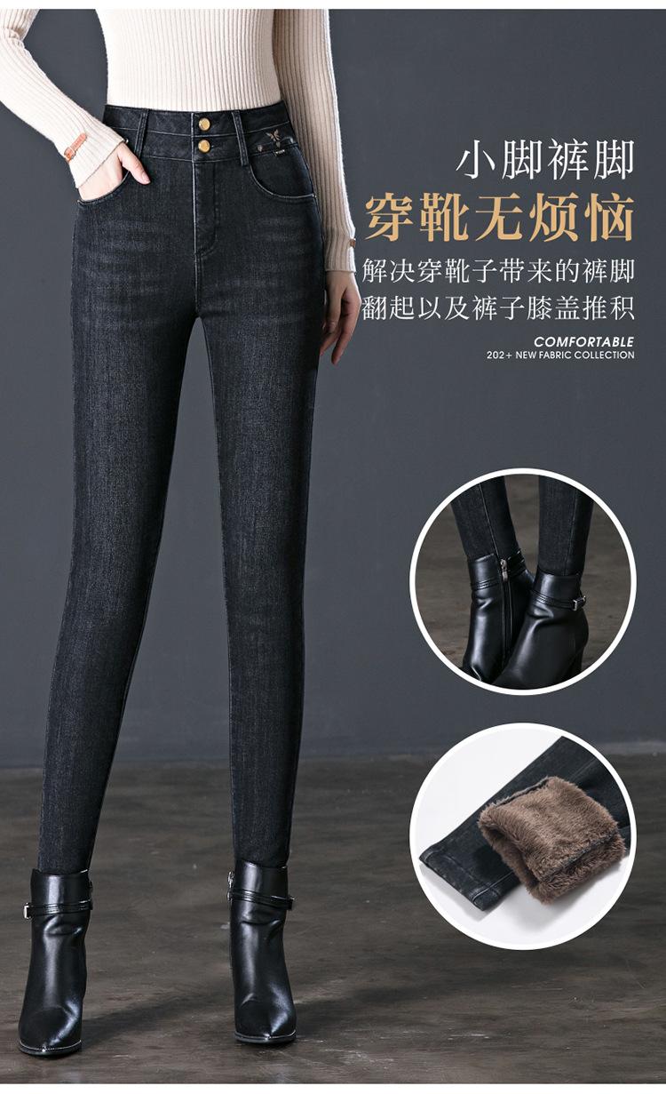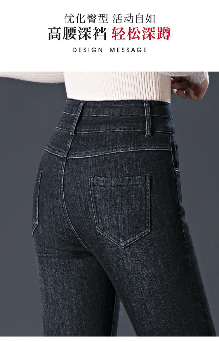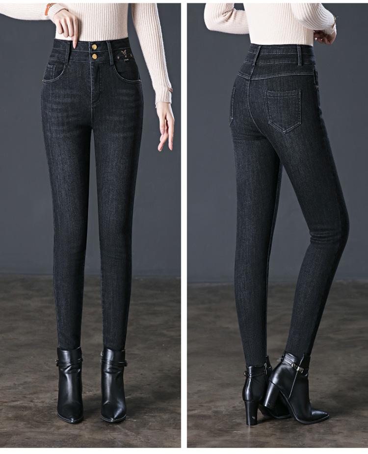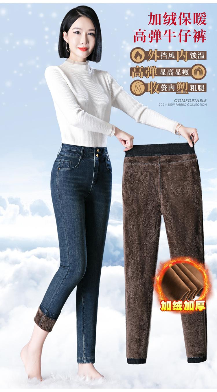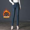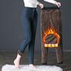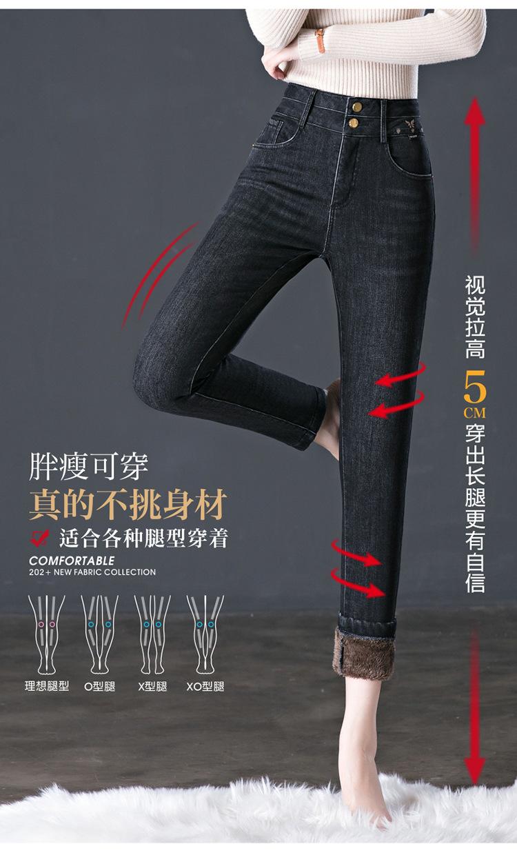 9213 invierno felpa pantalones de mezclilla para mamá de mediana edad y anciana para mujer talla grande pierna pequeña pantalones lápiz elásticos pierna recta temperamento bordado