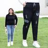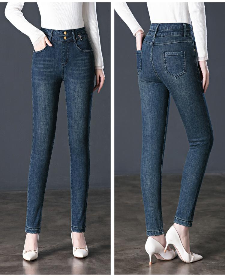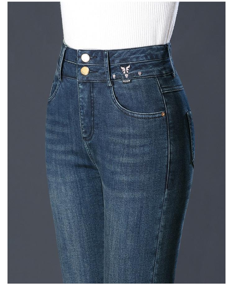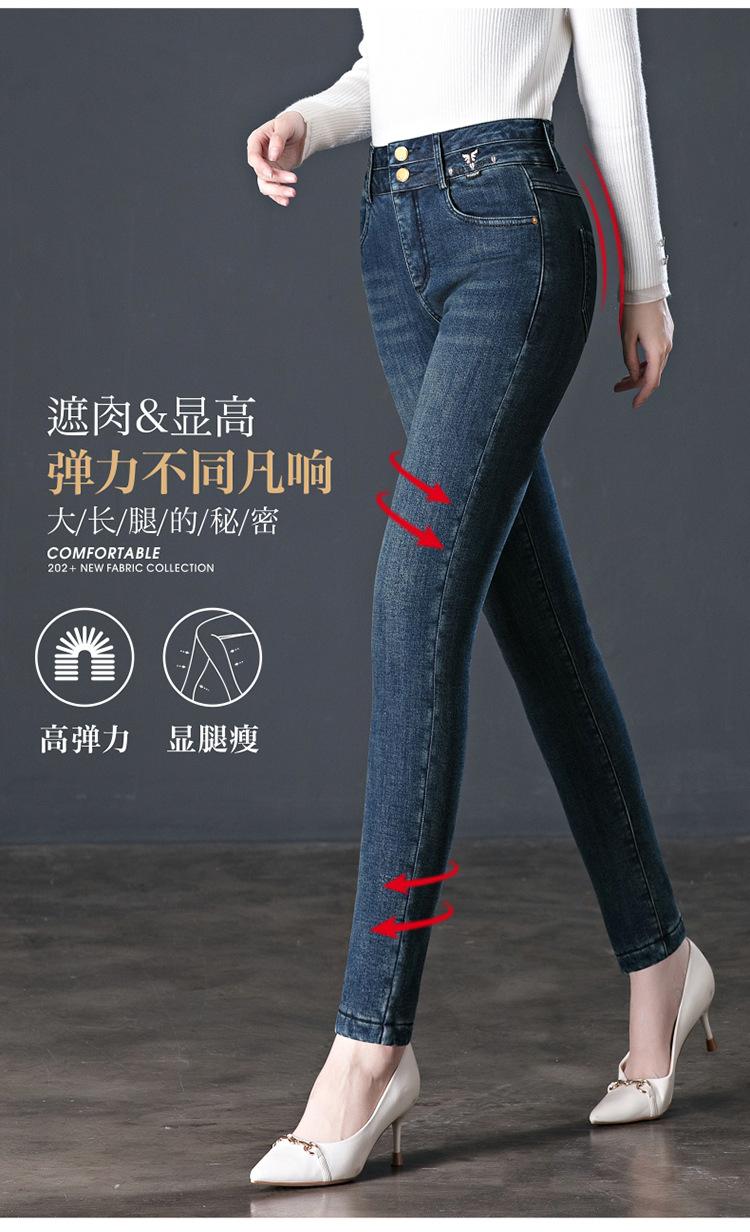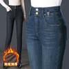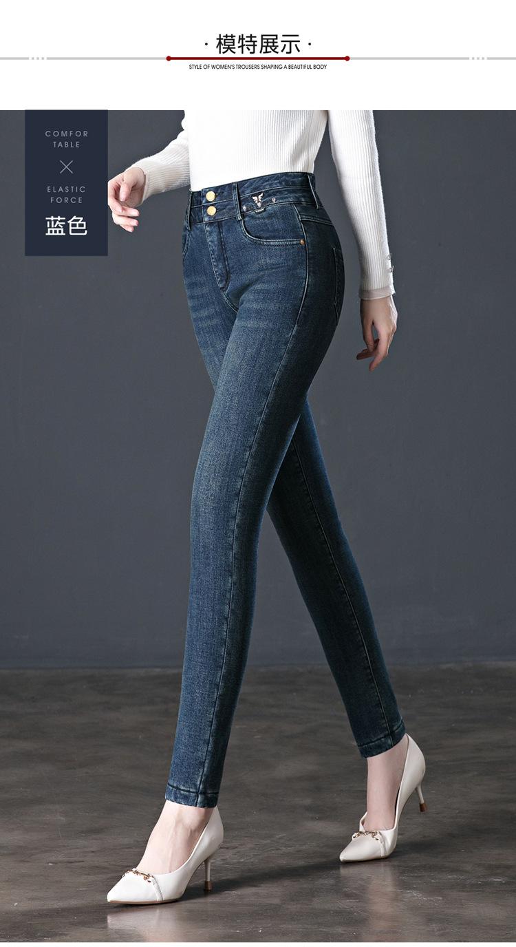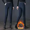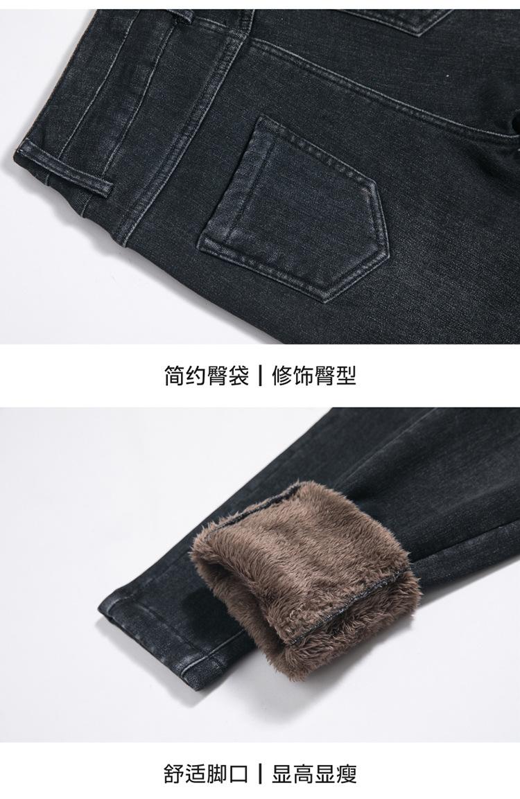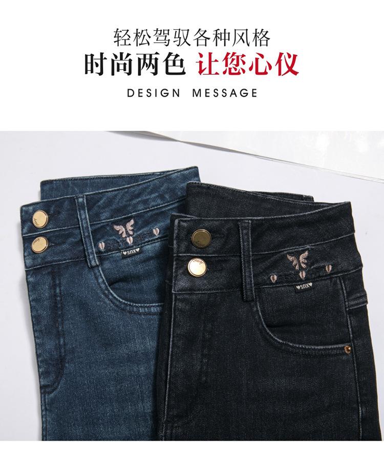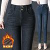 9213 invierno felpa pantalones de mezclilla para mamá de mediana edad y anciana para mujer talla grande pierna pequeña pantalones lápiz elásticos pierna recta temperamento bordado