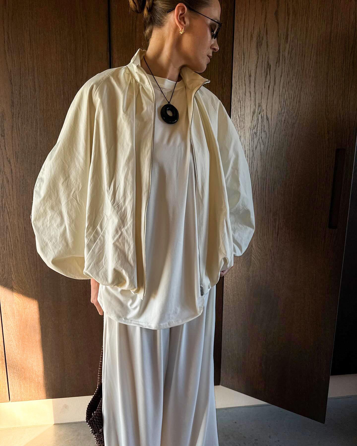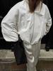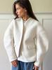 Nuevo Otoño/Invierno Sencillo Versátil Blanco Cuello Mao Cierre de Cremallera Gabardina para Mujer Sentido del Diseño Temperamento Moda 2025 Transfronterizo