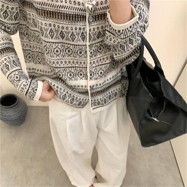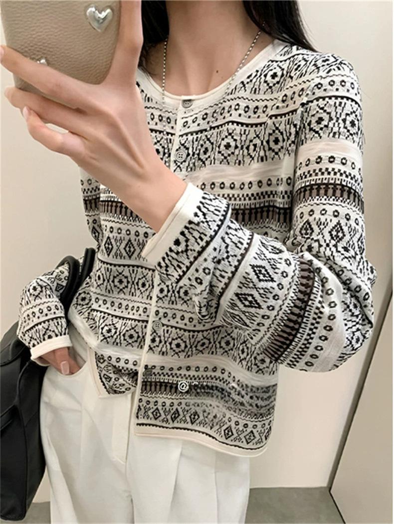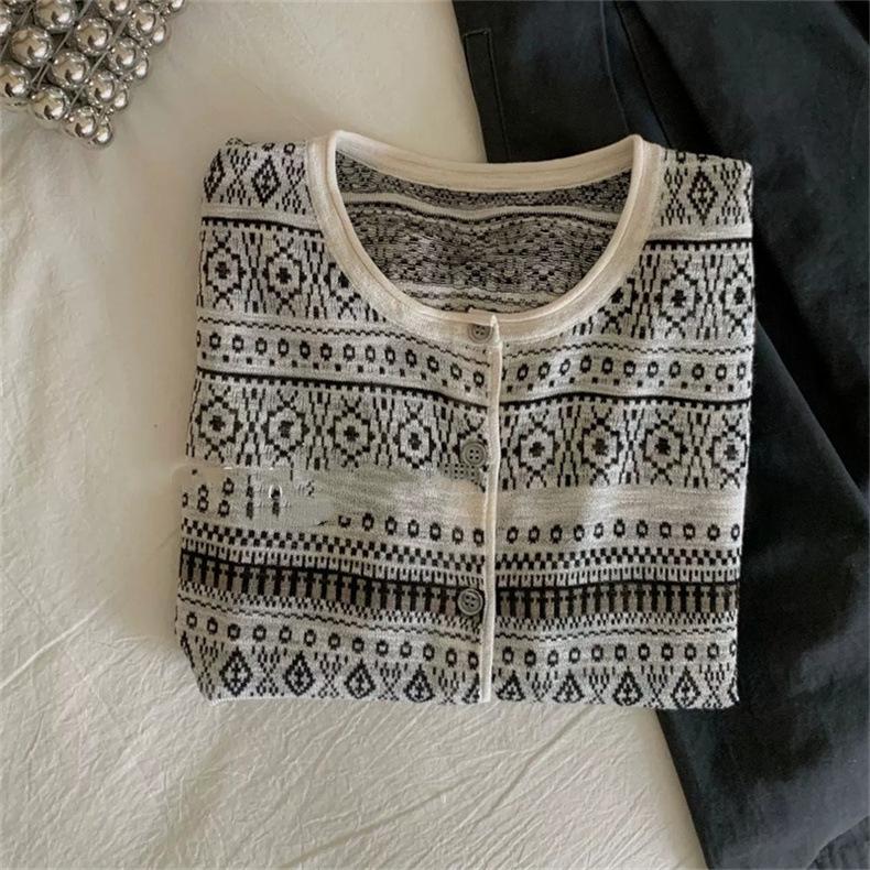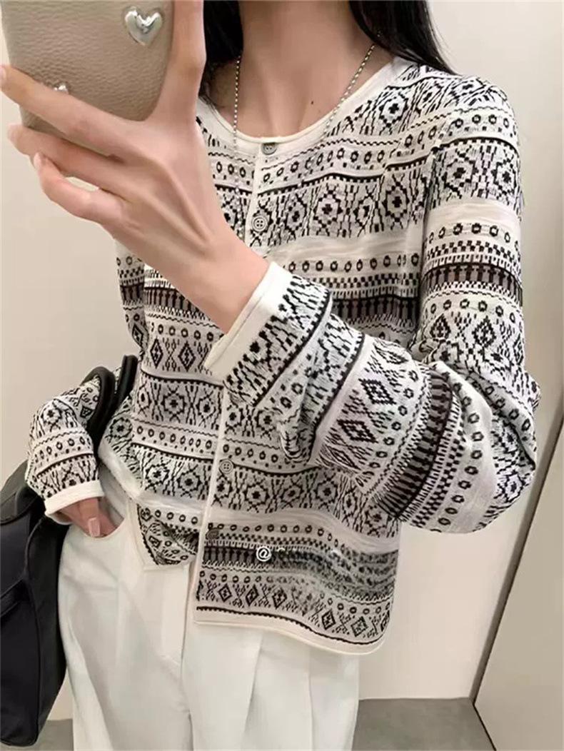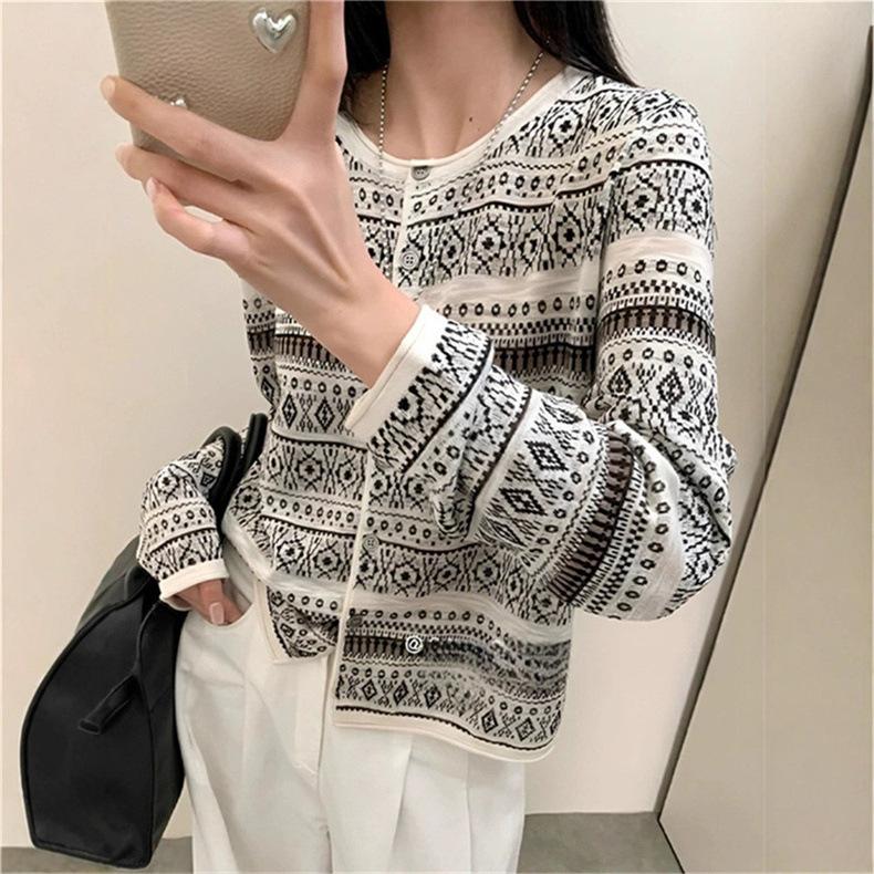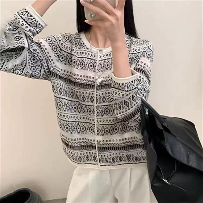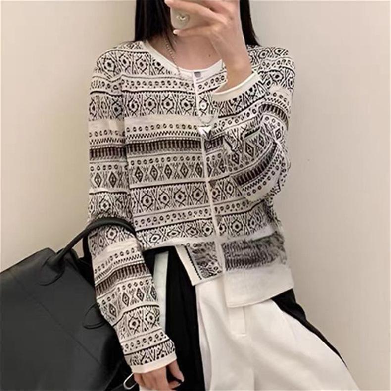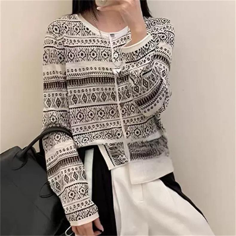 Cárdigan de punto jacquard versátil de manga larga de nueva moda transfronteriza para mujer, primavera y otoño, estilo europeo, moda moderna, prenda exterior de punto